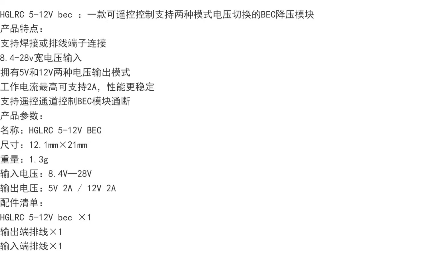 • HGLRC 5-12V BEC
