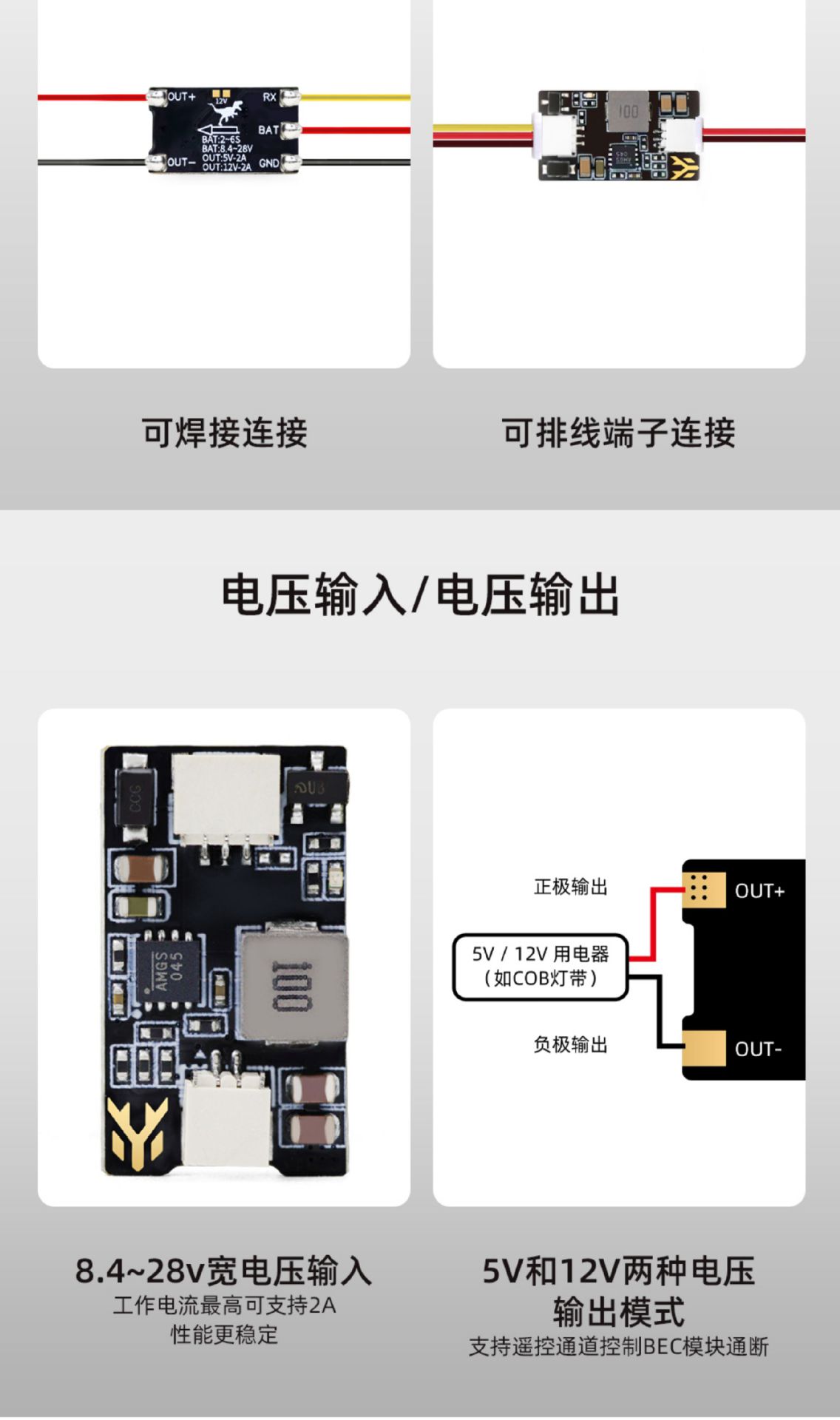 Huagulong HGLRC 5-12V BEC 벅 모듈 듀얼 전압 스위칭 원격 컨트롤러 제어 모델 UAV스토어 가기