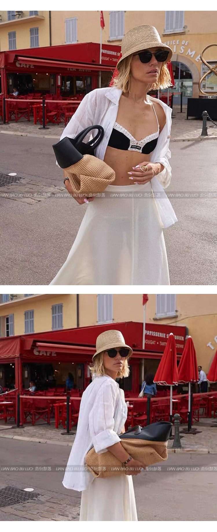 여름 가방 2026 신상 비치백 패셔너블한 휴가 스타일 배색 퍼플리스 가방 대용량 휴대용 토트백
