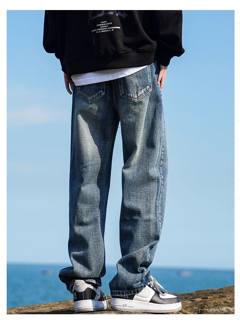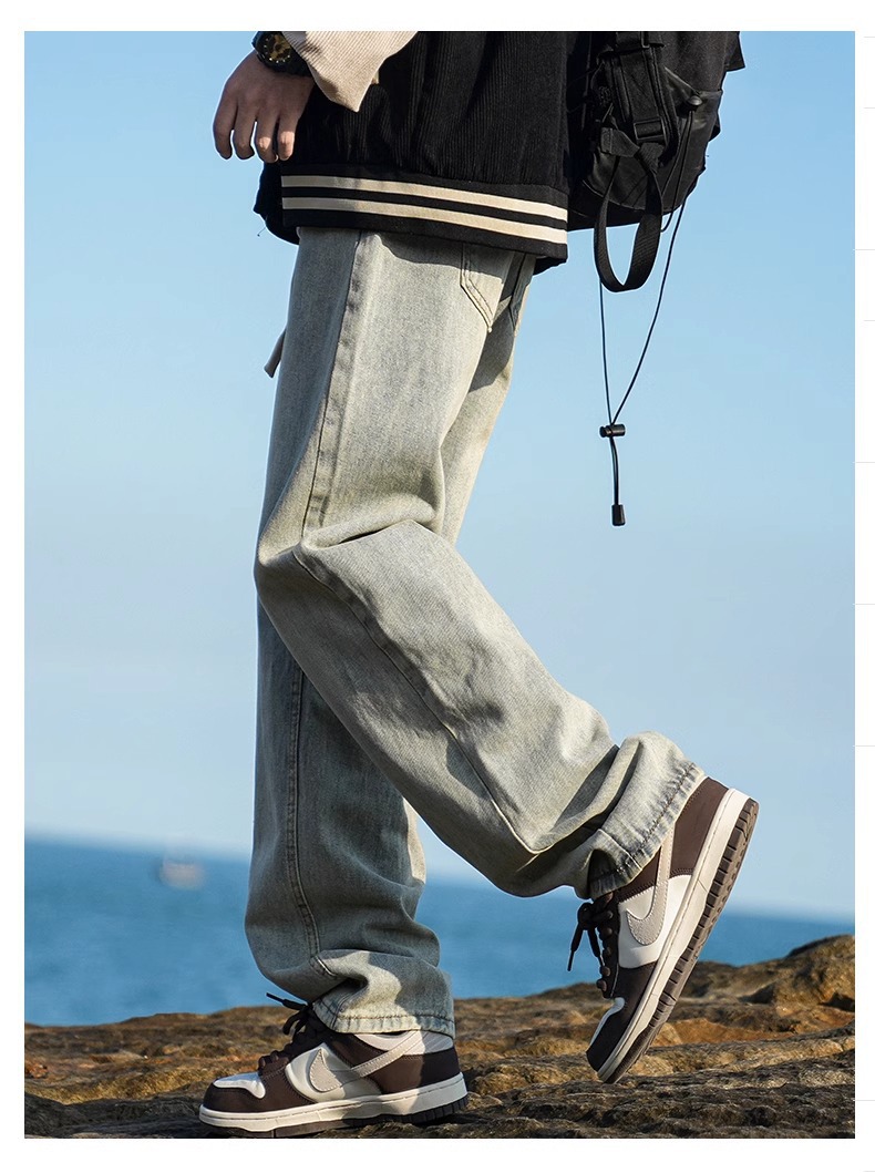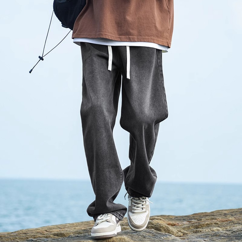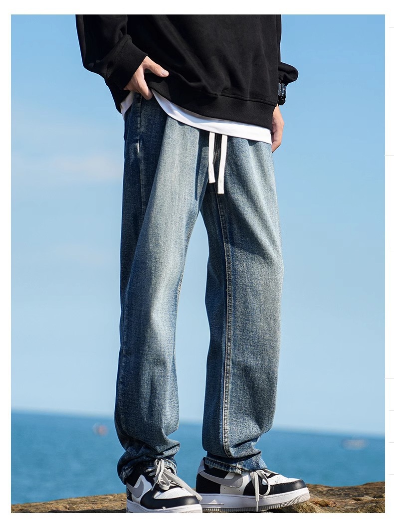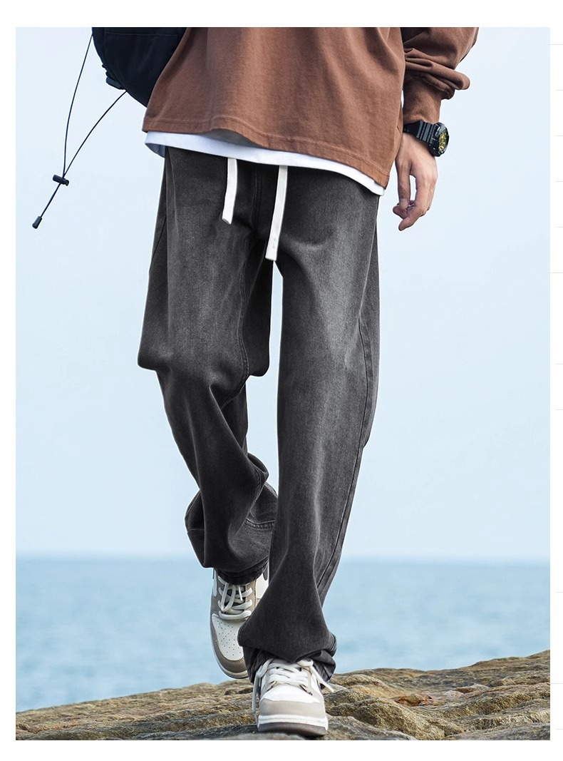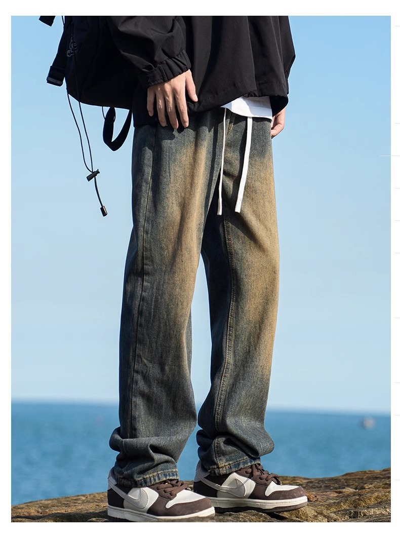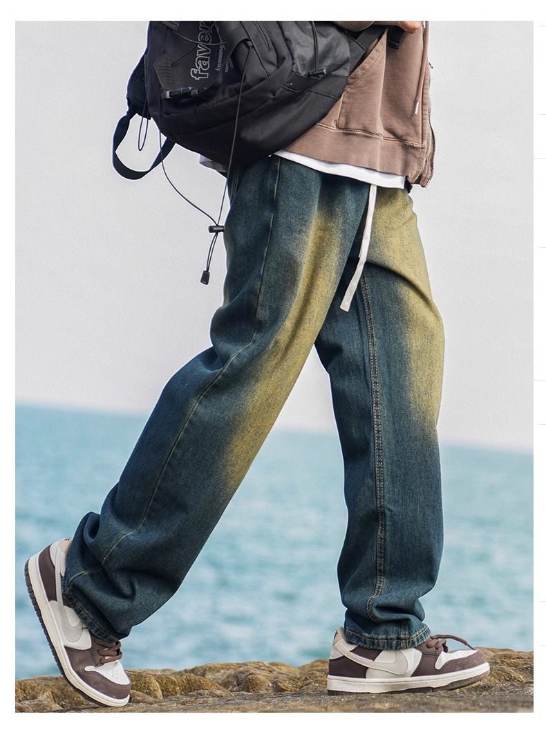 NASA Retro Jeans 남성 봄과 가을 2024 미국 스타일 와이드 레그 캐주얼 바지 Elasticated Waist Drawstring 느슨한 직선 다리 바지