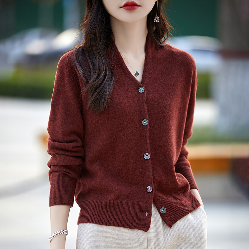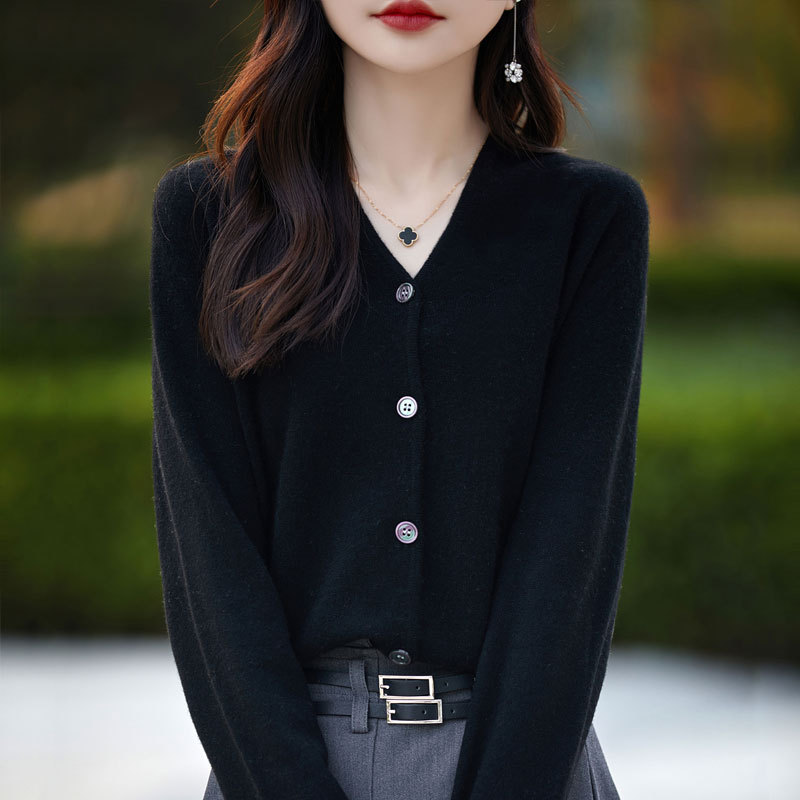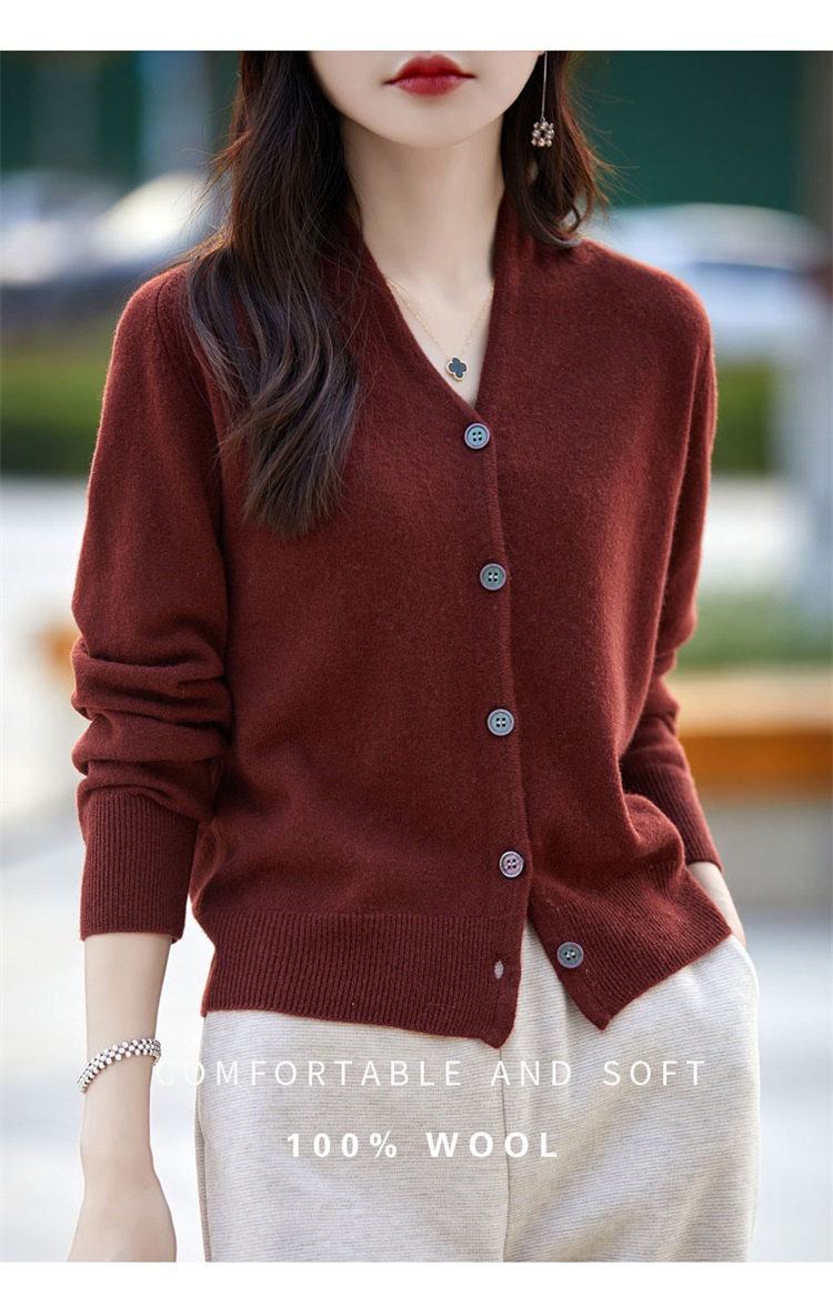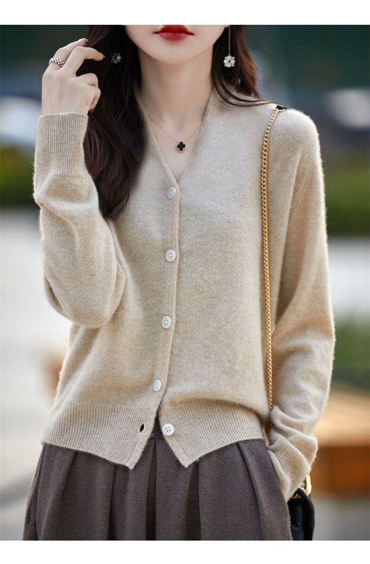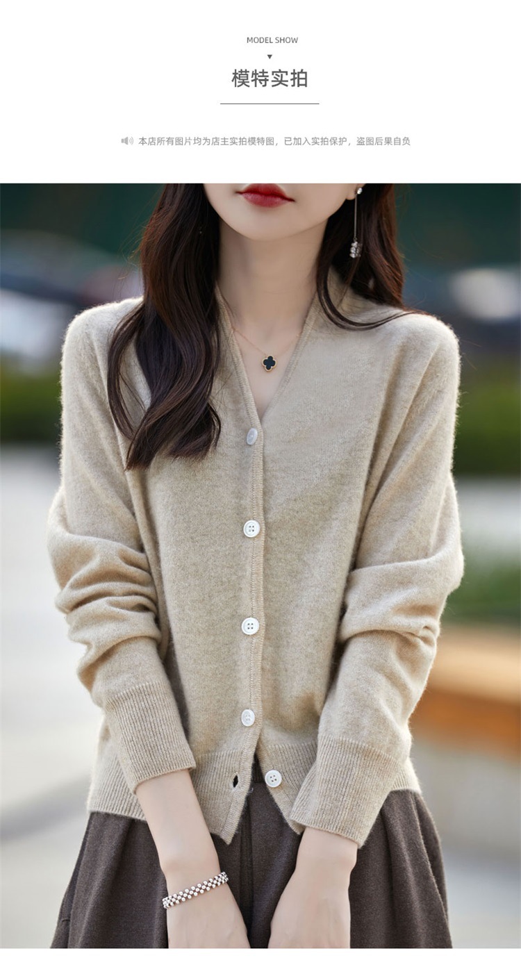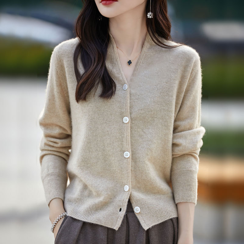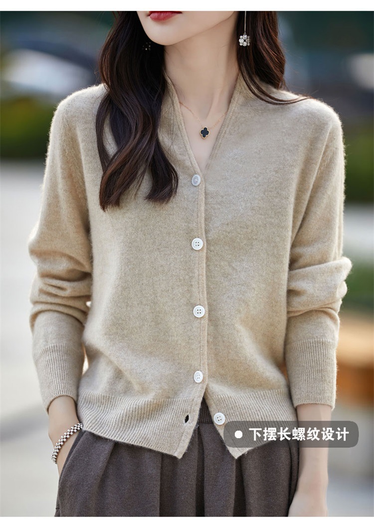 2025 가을 겨울 신상 순모 브이넥 니트 가디건 긴팔 여성용 단색 루즈핏 다용도 상의스토어 가기