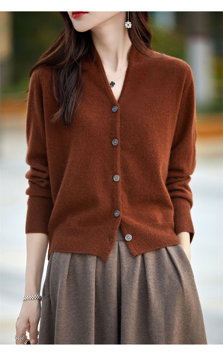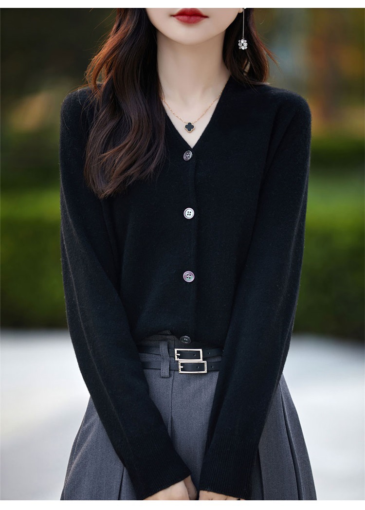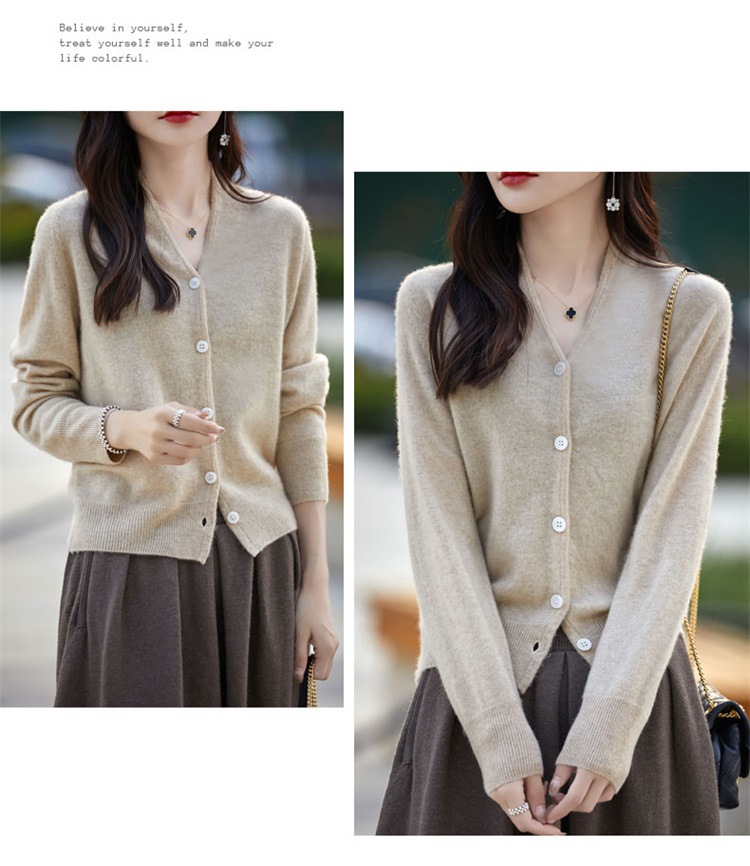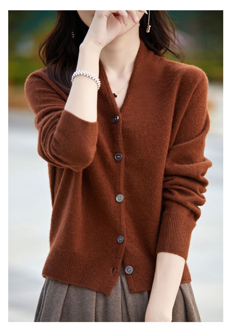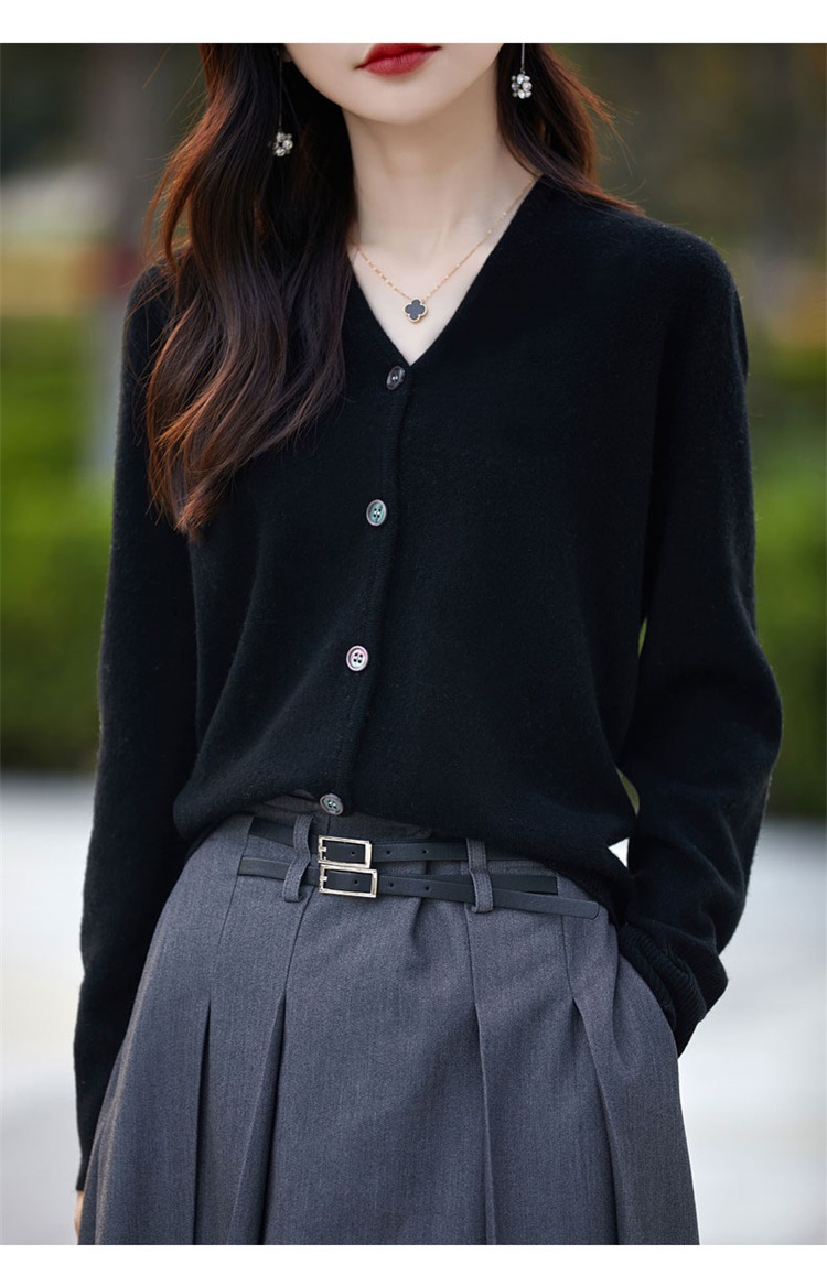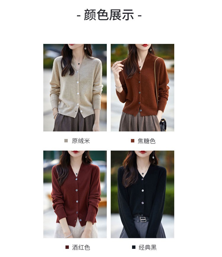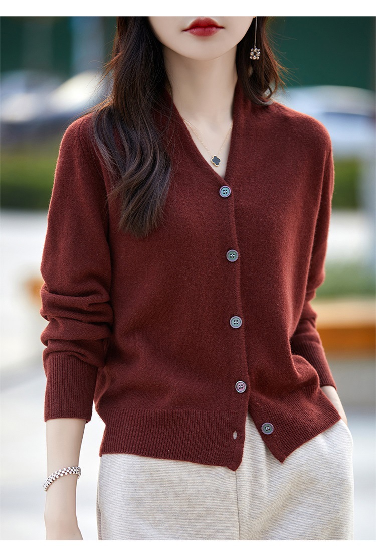 2025 가을 겨울 신상 순모 브이넥 니트 가디건 긴팔 여성용 단색 루즈핏 다용도 상의스토어 가기