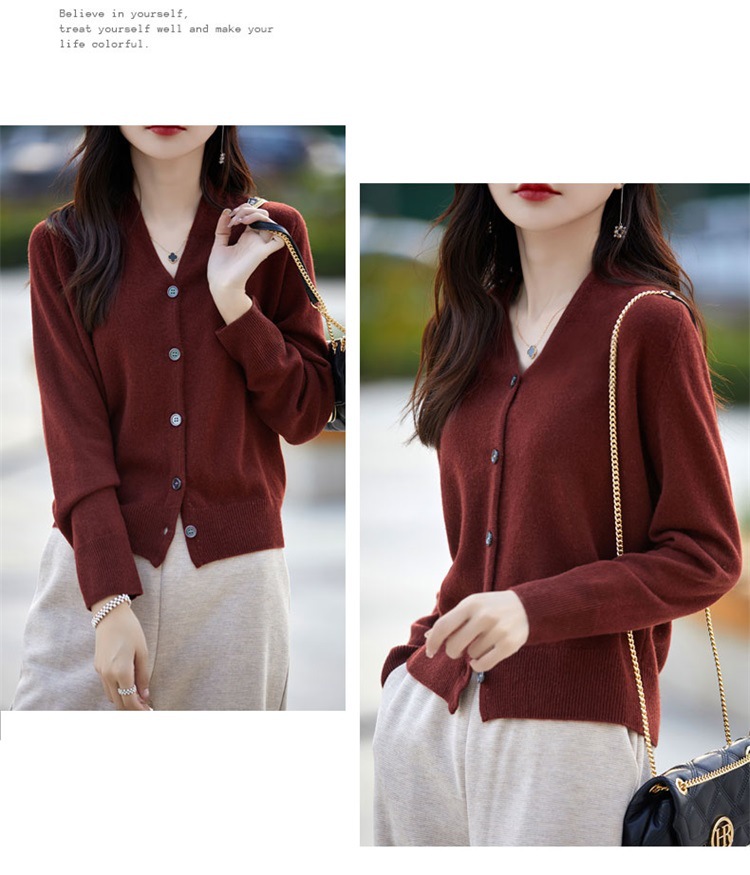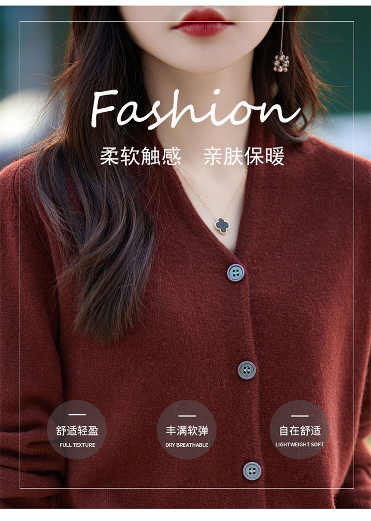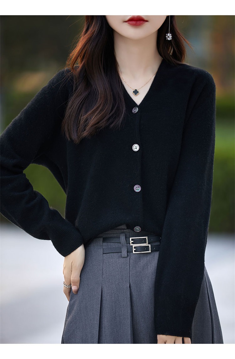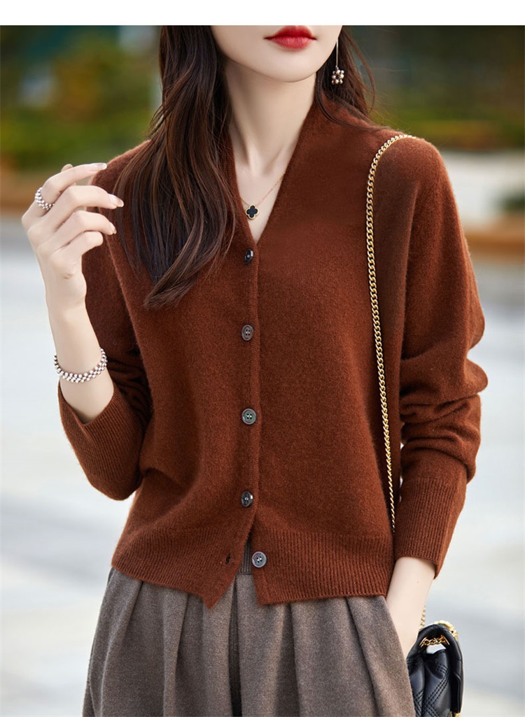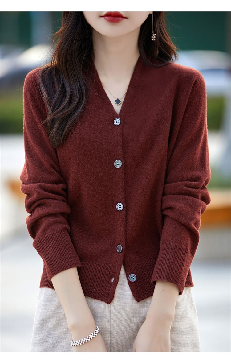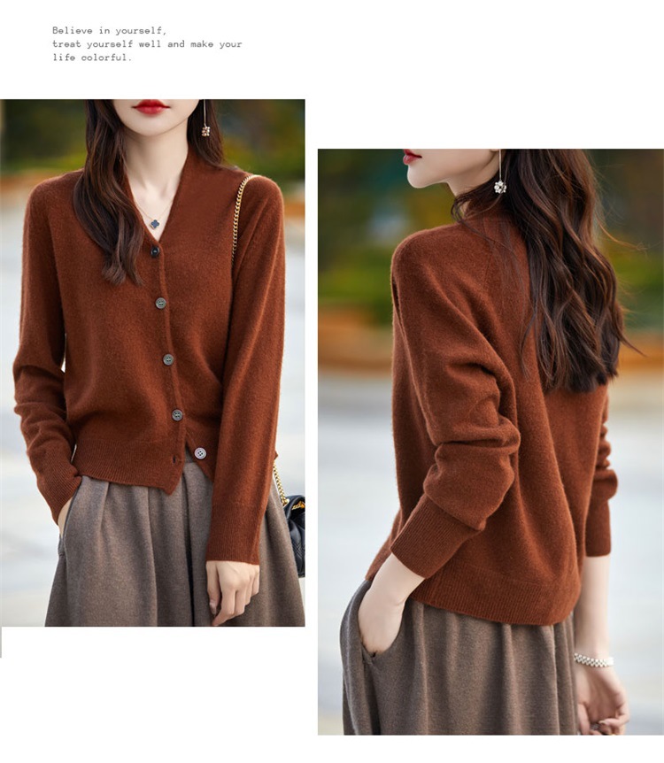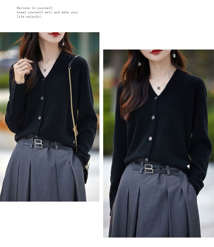2025 가을 겨울 신상 순모 브이넥 니트 가디건 긴팔 여성용 단색 루즈핏 다용도 상의스토어 가기