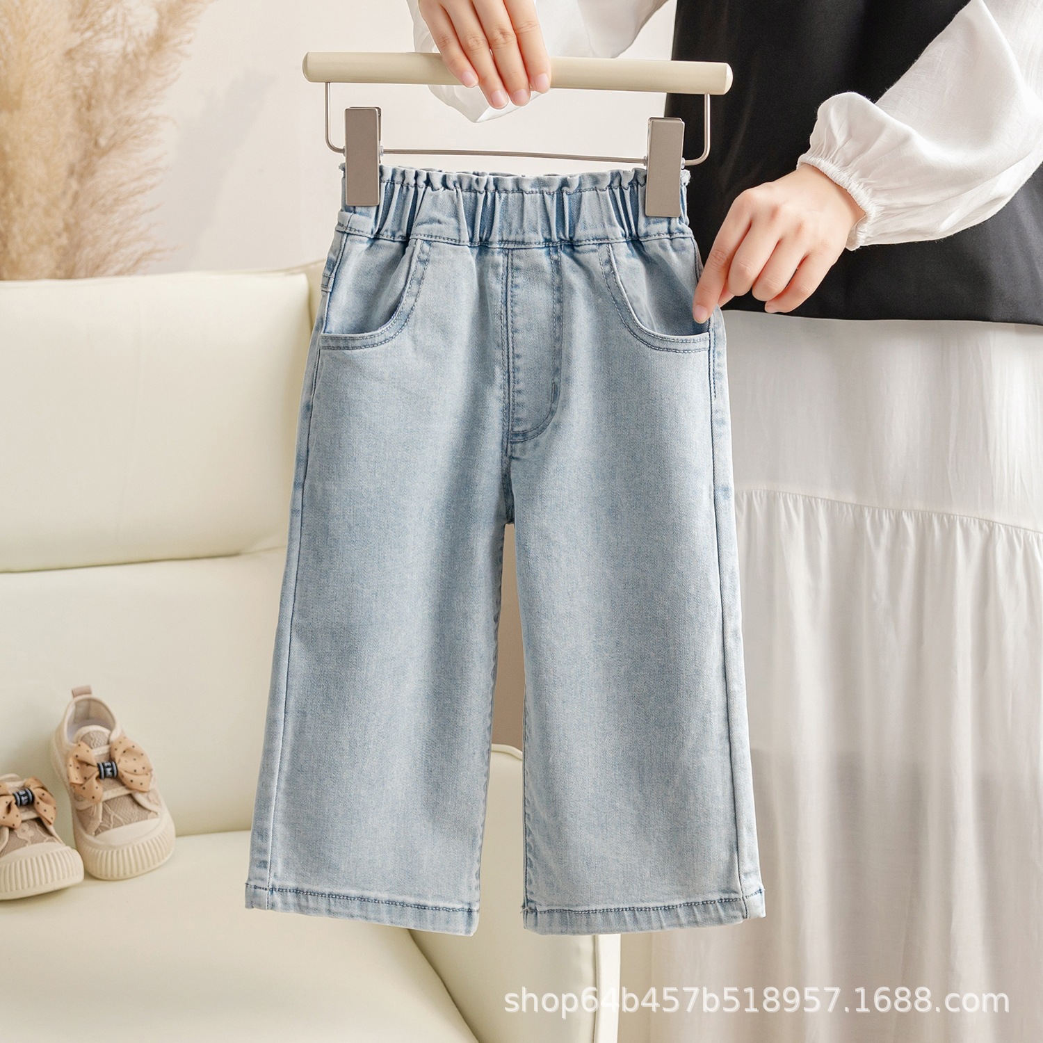 여아 2026 봄 신상 자수 스트레이트 팬츠 아기 한국 스타일 캐주얼 긴바지 아동 가을 아우터 청바지