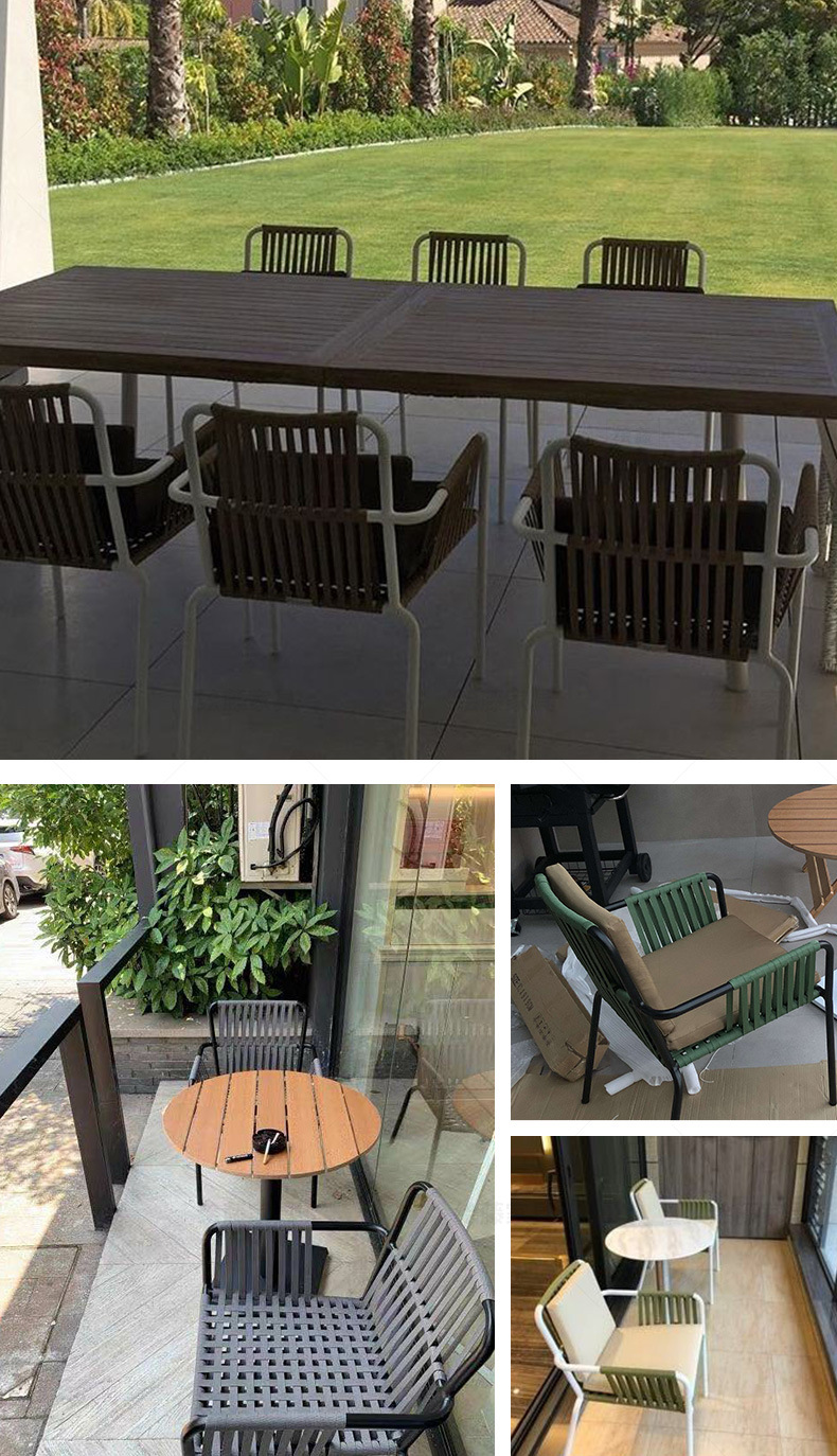 식탁과 의자, 빌라 야외 마당 정원 테라스 테이블과 의자 세트, 발코니 레스토랑 샘플룸 가구, 야외 방수 가구스토어 가기