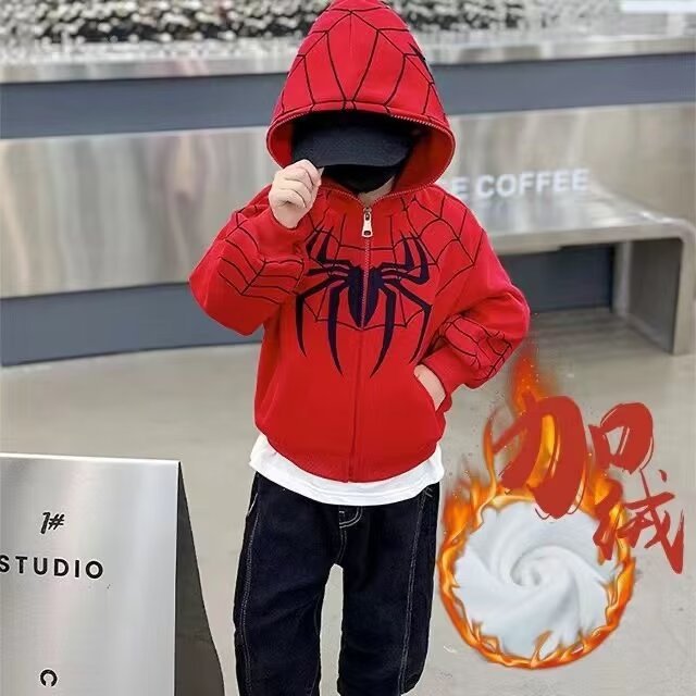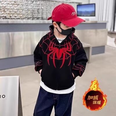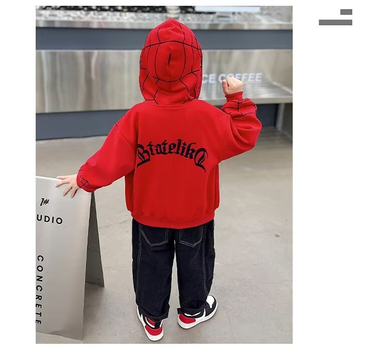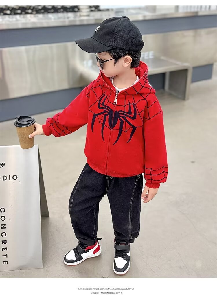 소년 스파이더 맨 어린이 긴 소매 운동복 아동복 소년 코트 2023 새로운 작은 소년 정사이즈 후드 옷스토어 가기