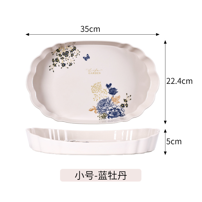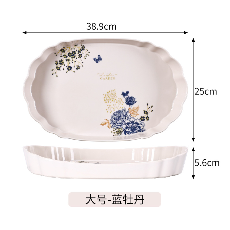 • 대형 톨 파이핑 플레이트 - 블루 피오니