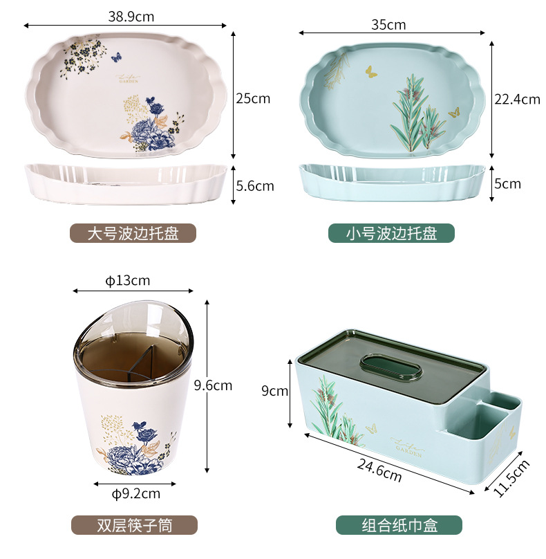 • 대형 웨이브 엣지 트레이 - 블루 피오니