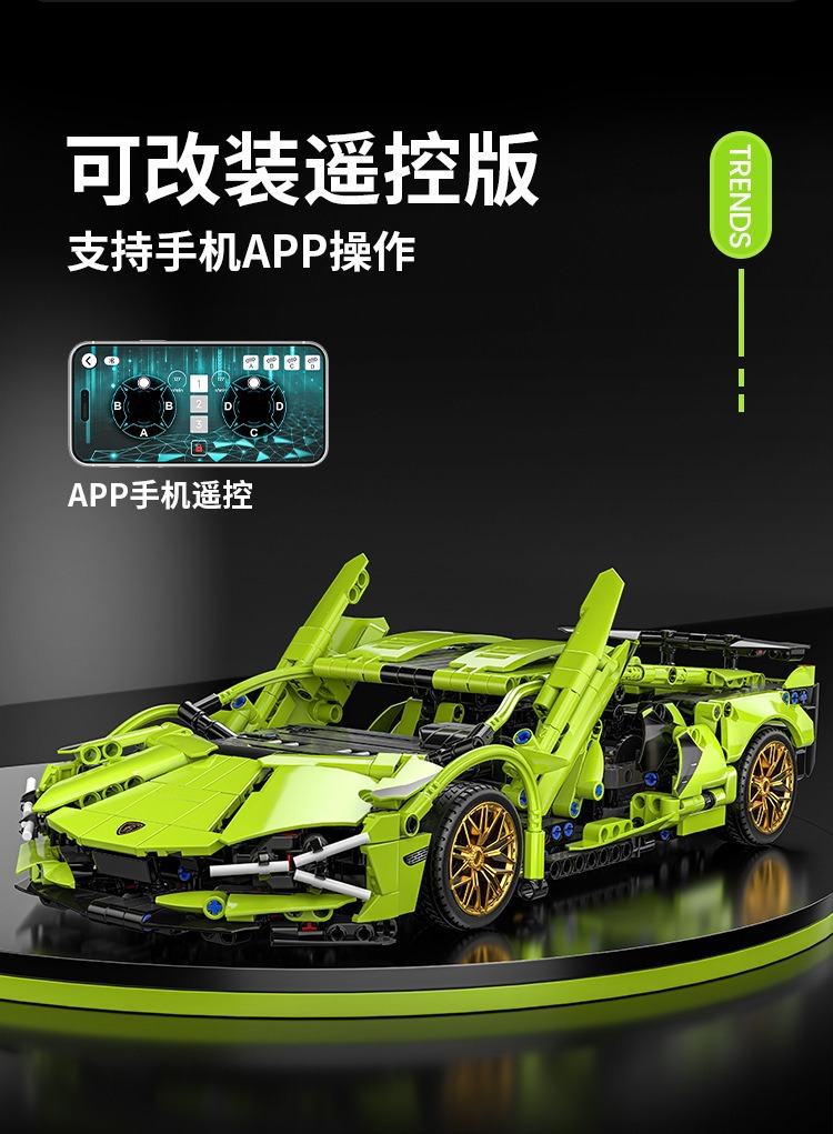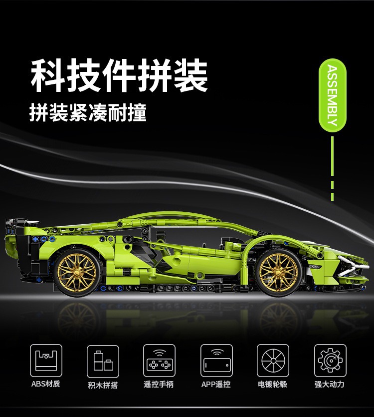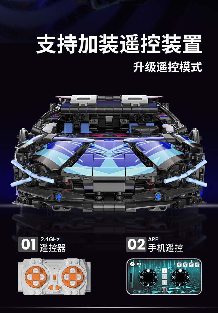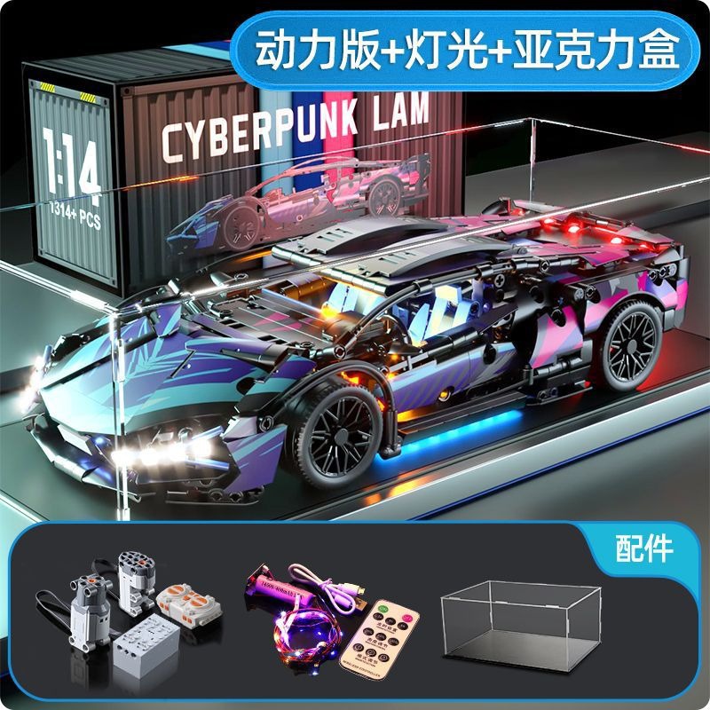 레고 사이버 펑크 스타 람보 럭셔리카 로고 빌딩 블록 조립 시리즈 장난감 원격 제어 소년 생일 선물