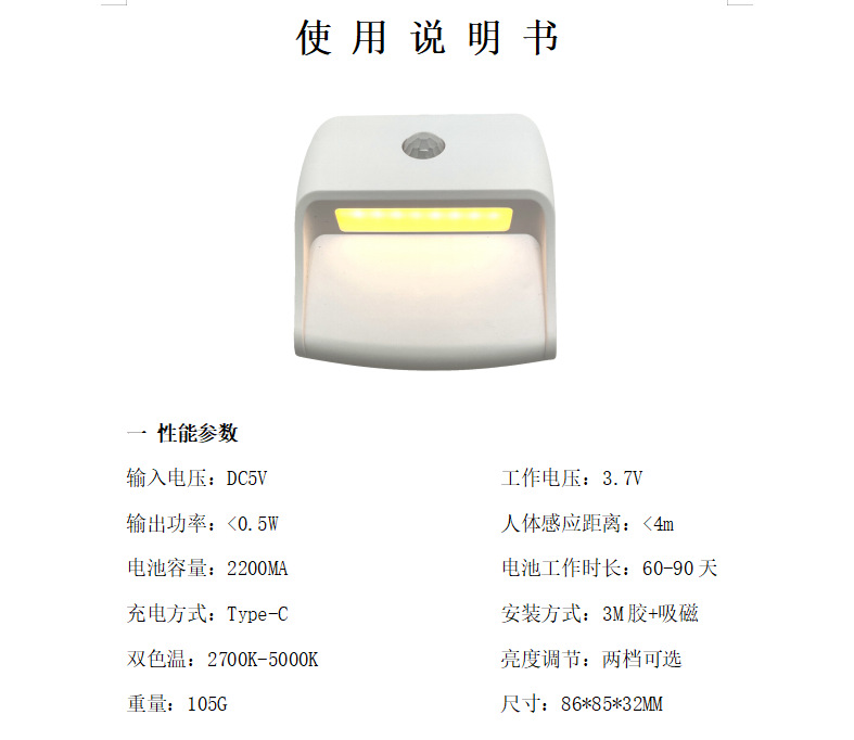 • 트루 화이트 & 웜 화이트 & 2색 온도 야간 조명 - 싱글