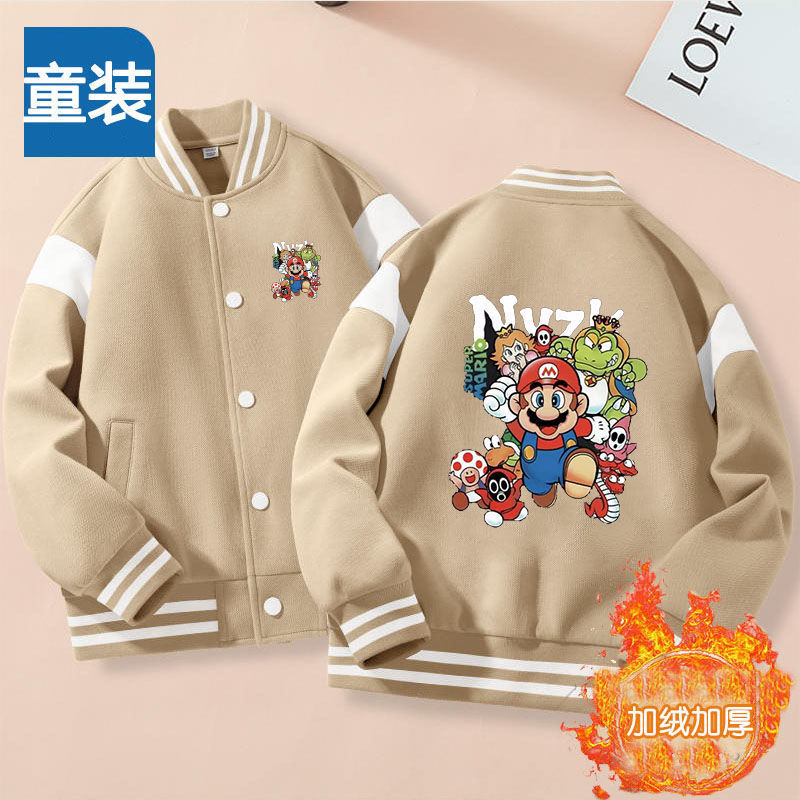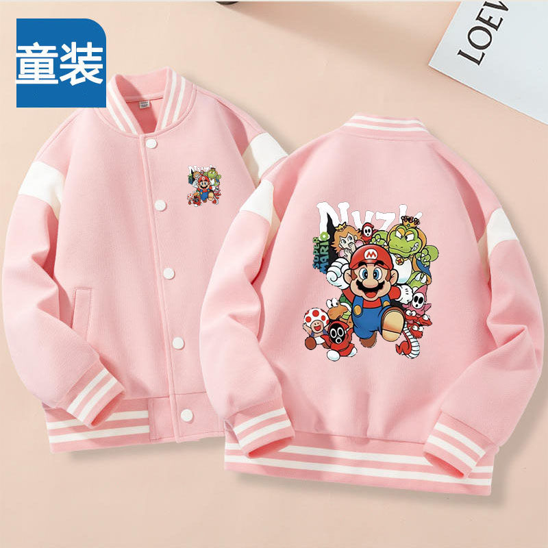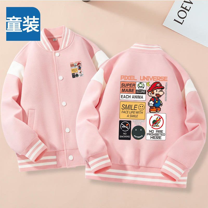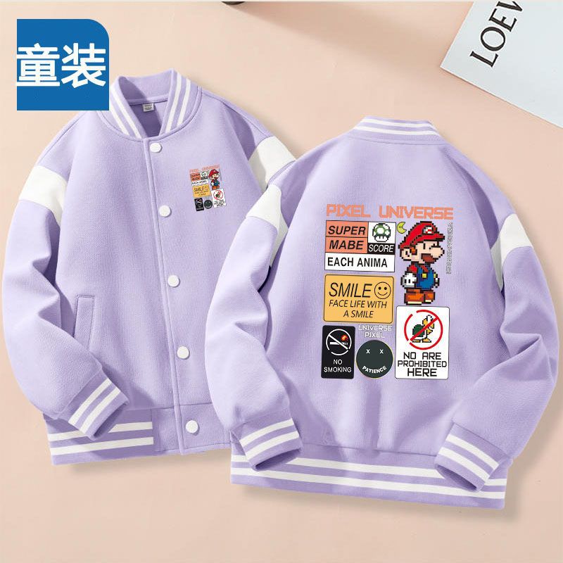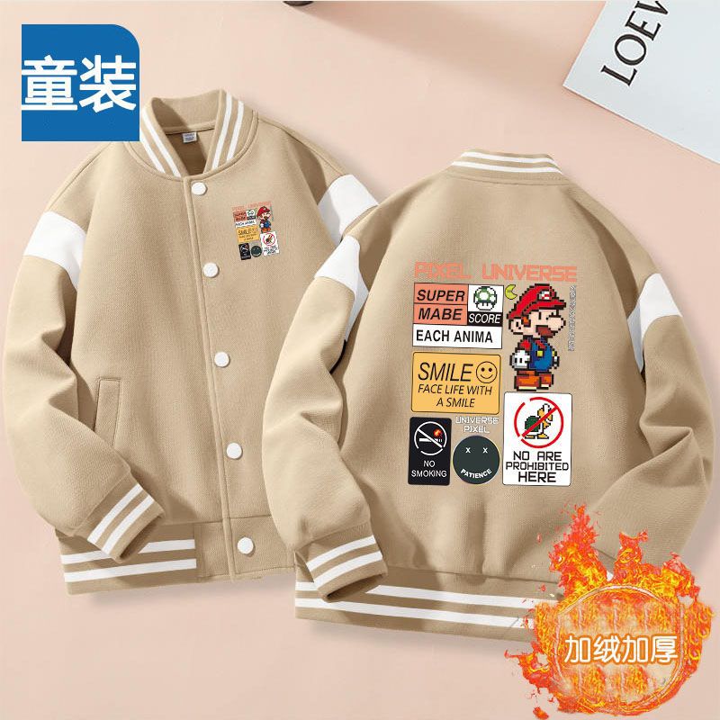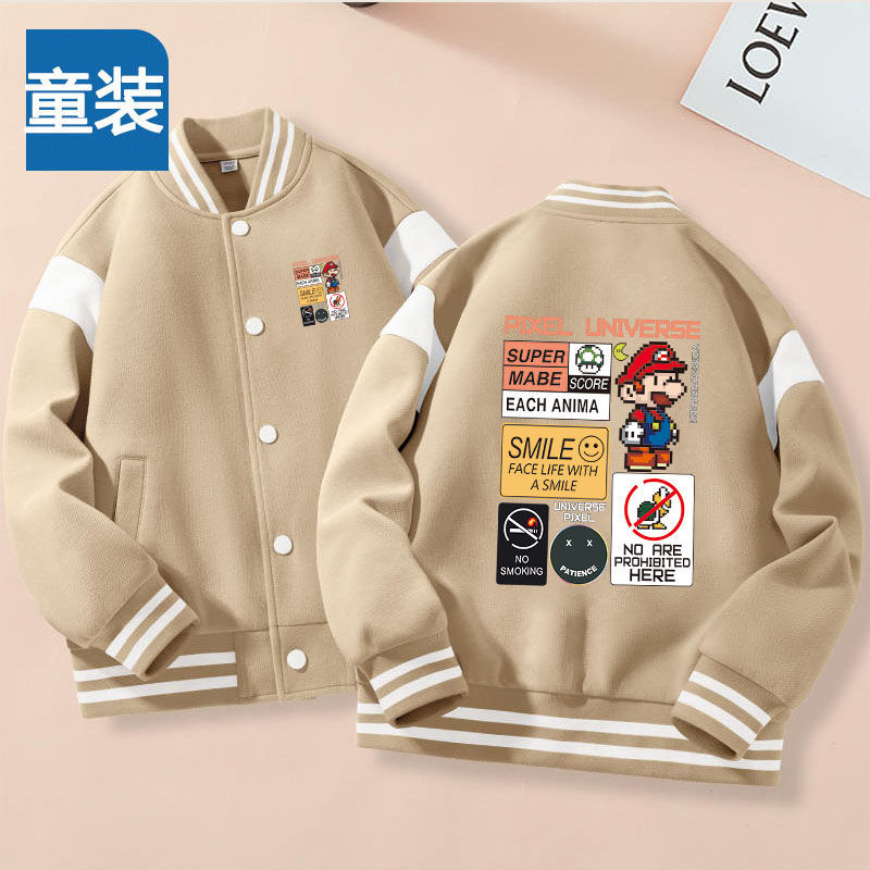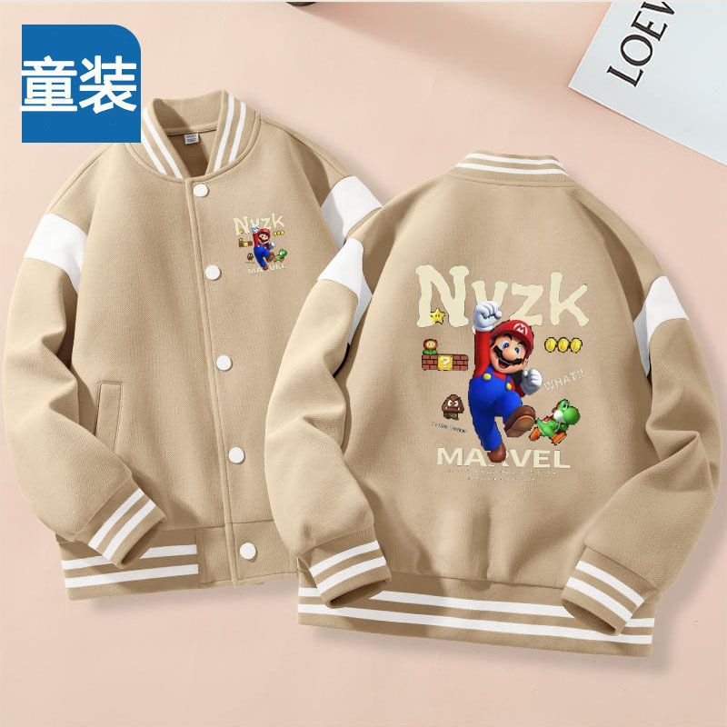 가을과 겨울 소년 크루 넥 재킷 코트 마리오 버튼 카디건 캐주얼 코트 어린이 봄과 가을 야구 세트 트렌디