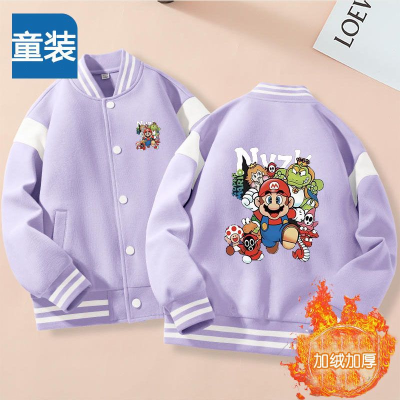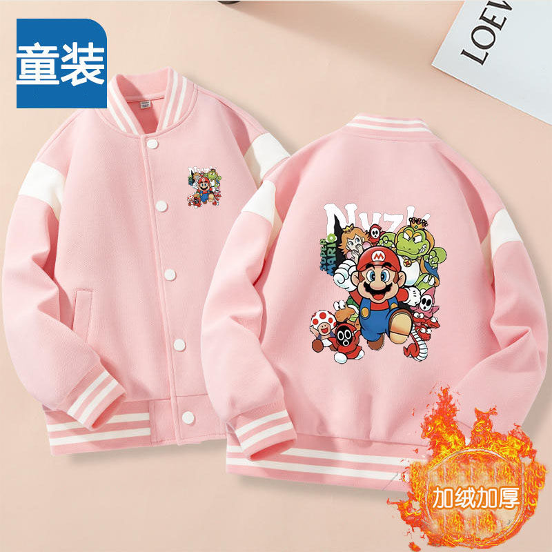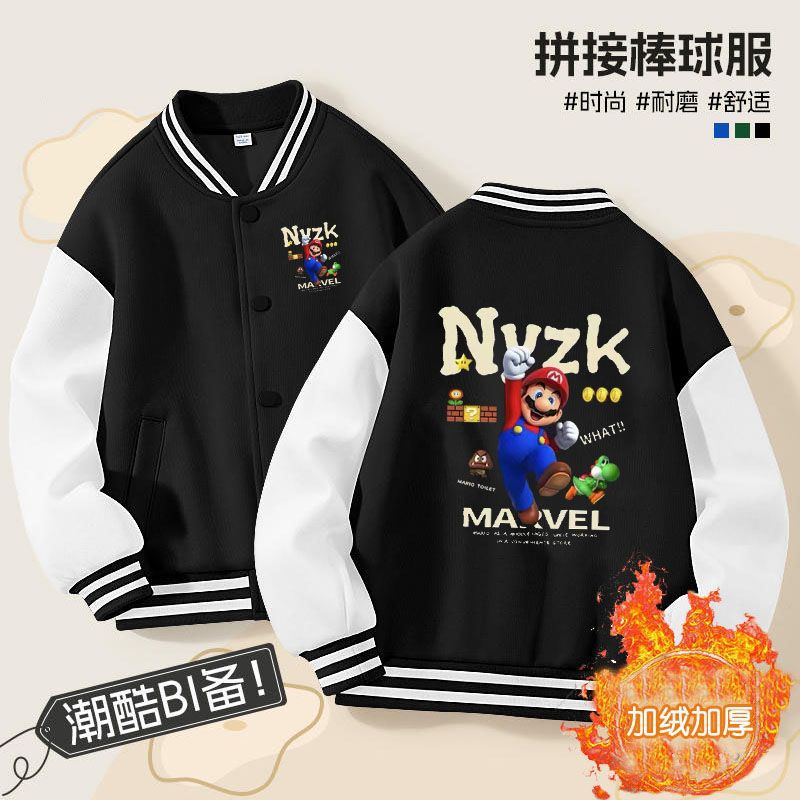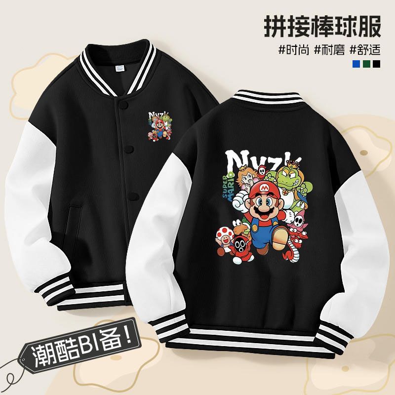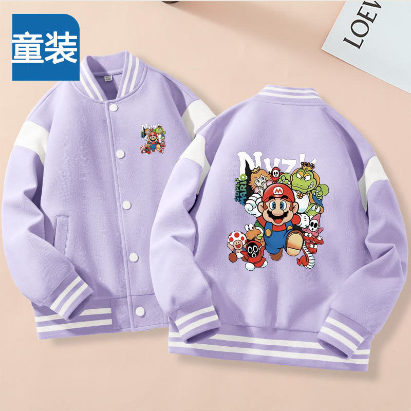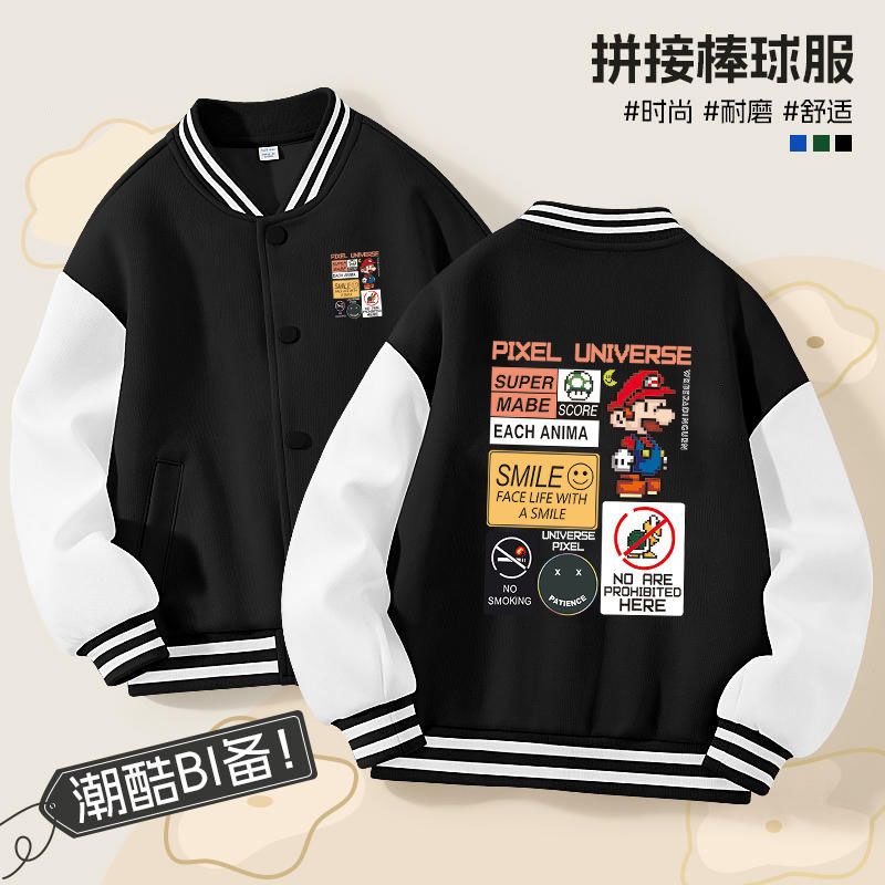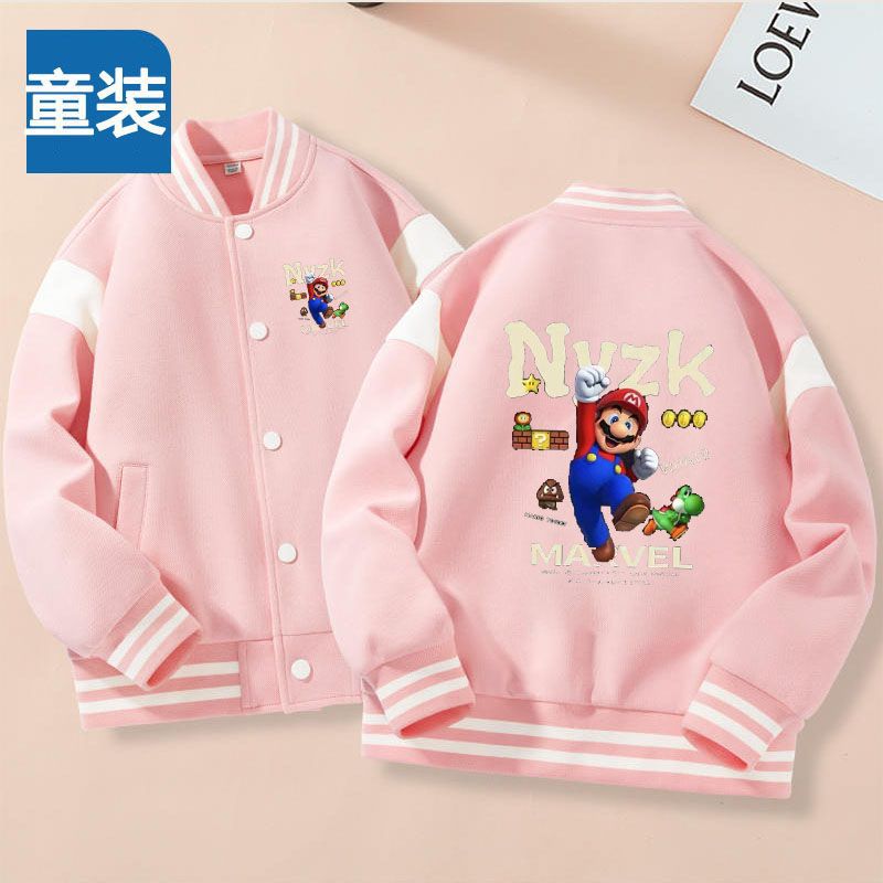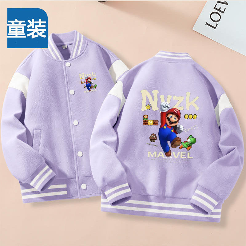 가을과 겨울 소년 크루 넥 재킷 코트 마리오 버튼 카디건 캐주얼 코트 어린이 봄과 가을 야구 세트 트렌디