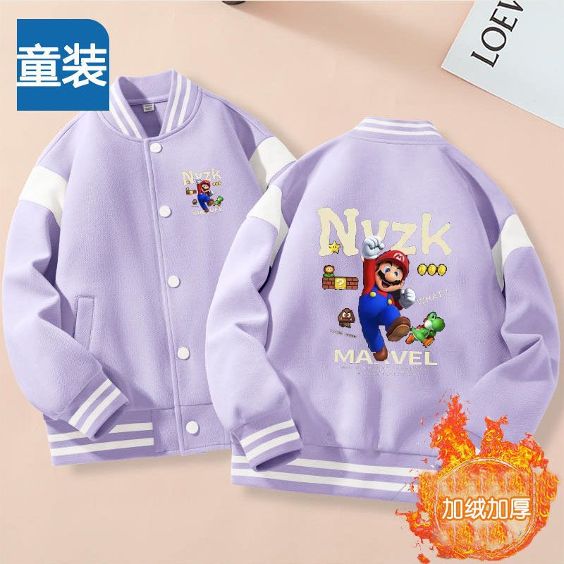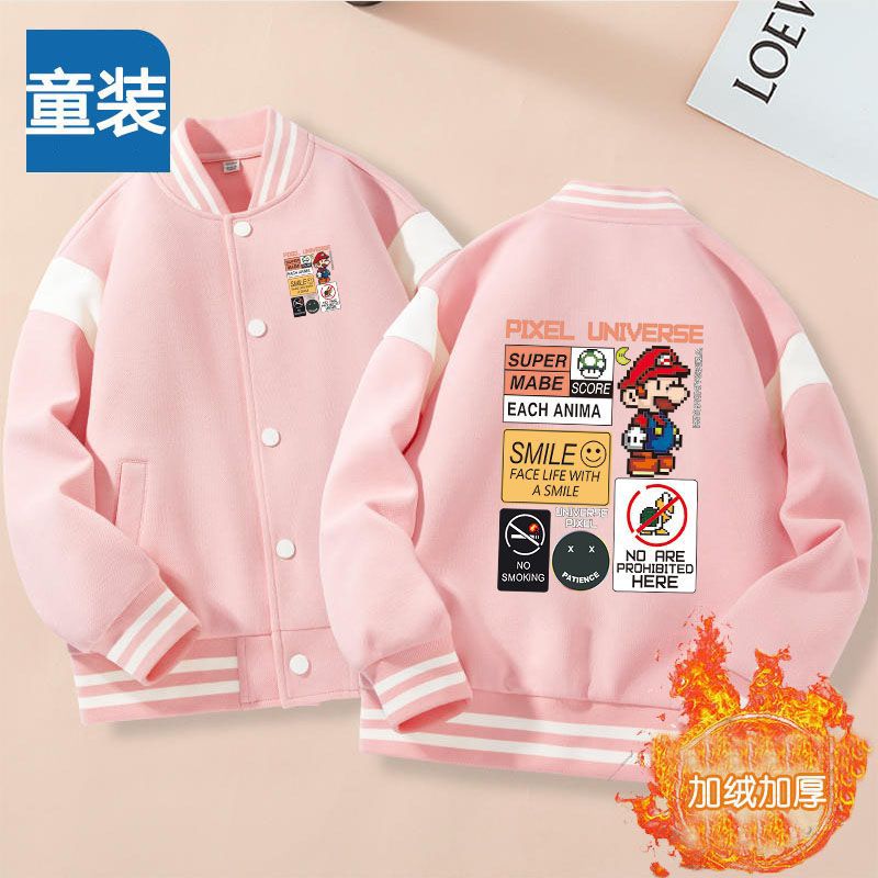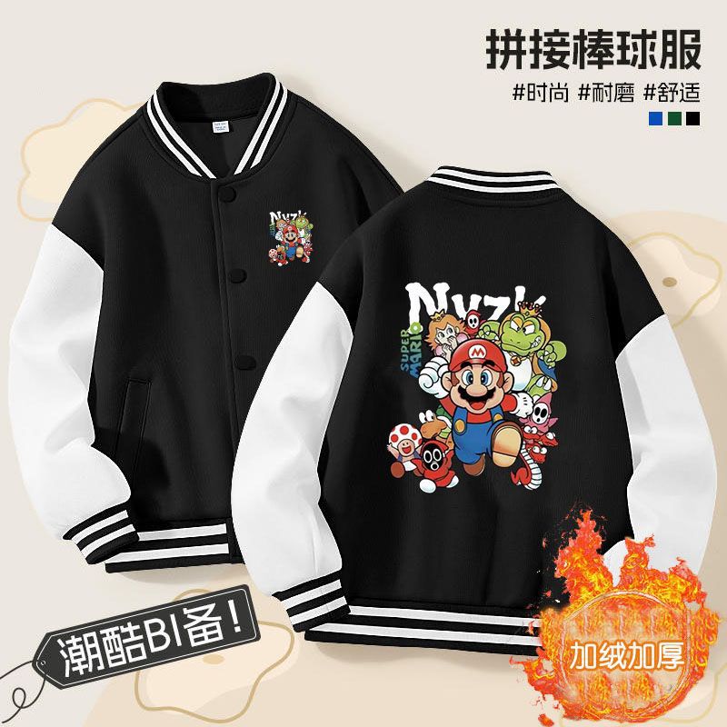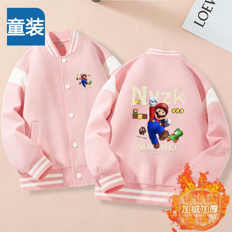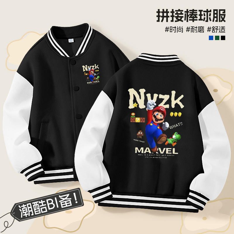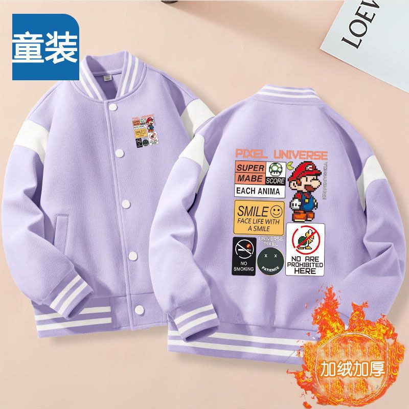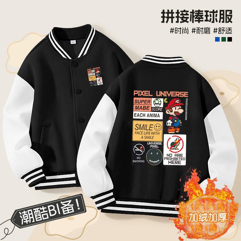 가을과 겨울 소년 크루 넥 재킷 코트 마리오 버튼 카디건 캐주얼 코트 어린이 봄과 가을 야구 세트 트렌디