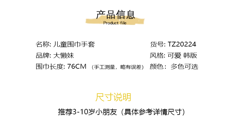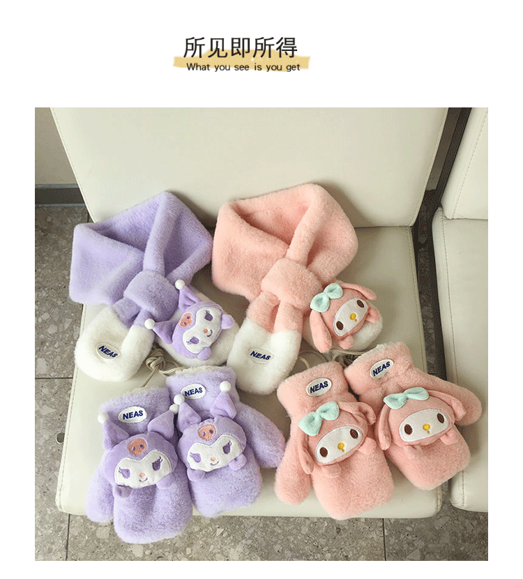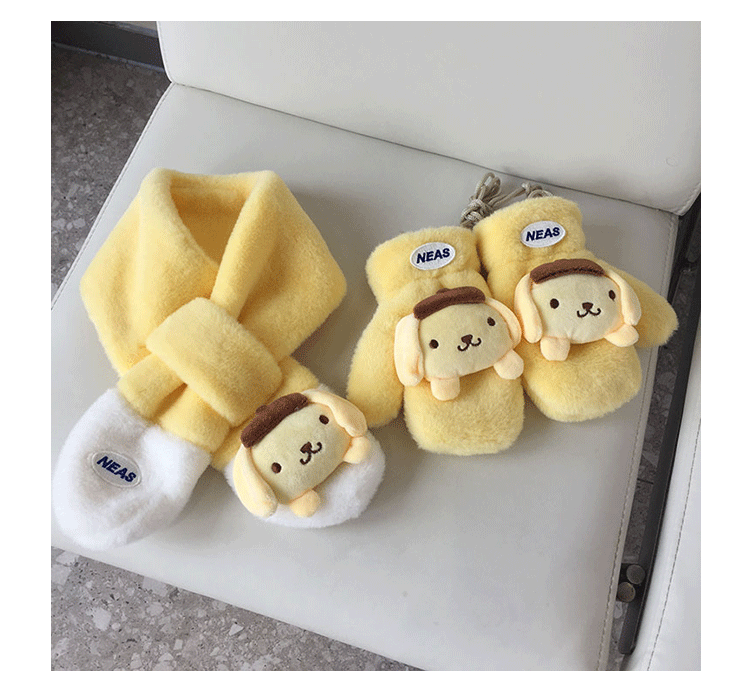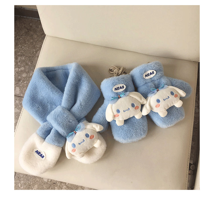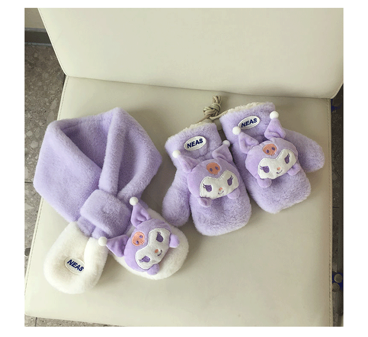 가을과 겨울 새로운 한국 작은 라벨 귀여운 만화 자수 어린이 스카프 두꺼운 따뜻한 봉제 장갑 아기 스카프