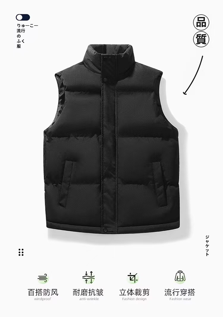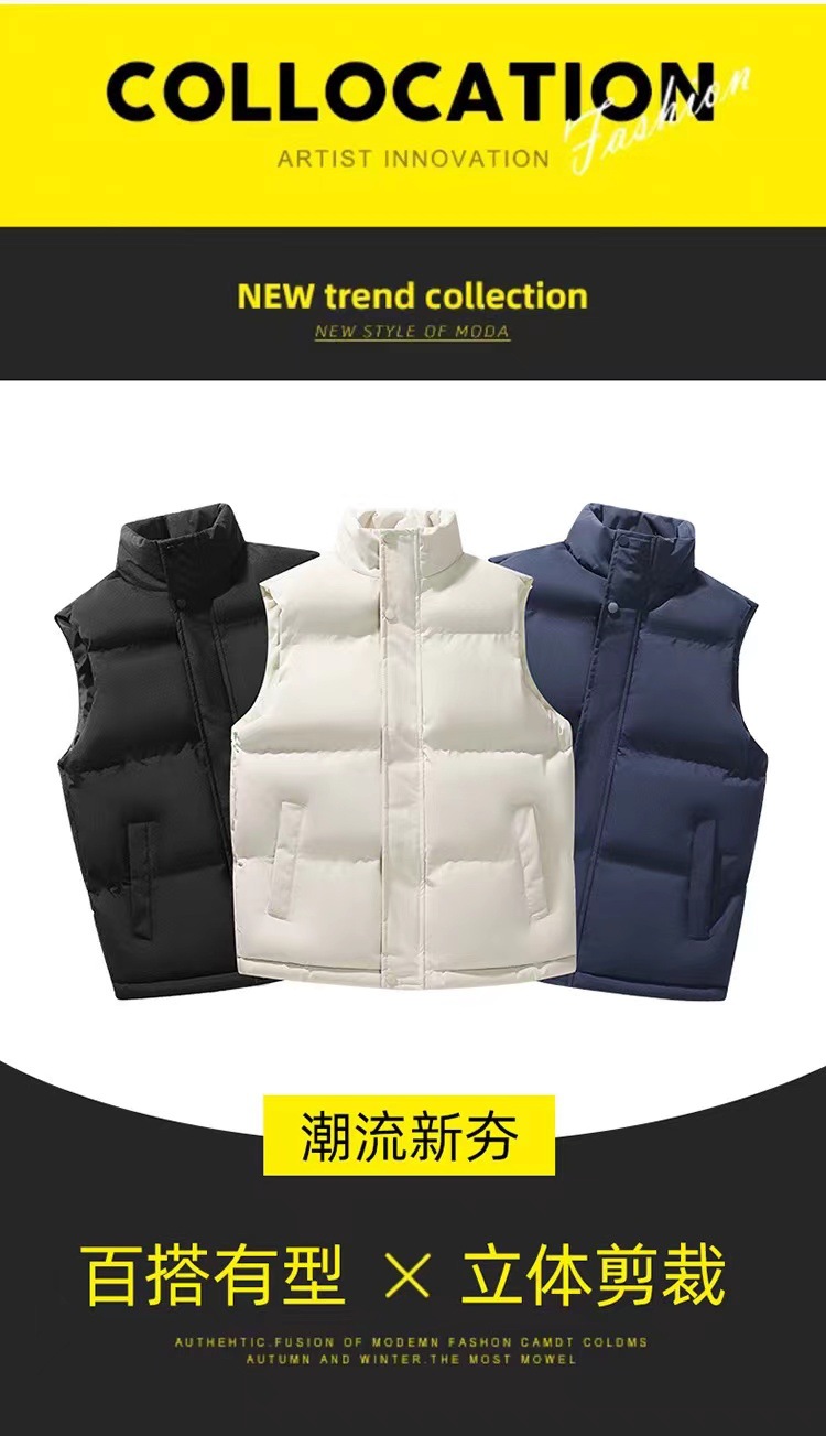 오니 량핀 크로스 보더 조끼 남자 가을과 겨울 유행 스탠드 칼라 허리 코트 단색 간단한 캐주얼 재킷스토어 가기