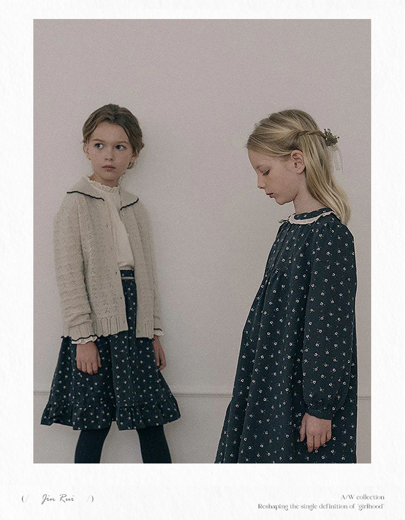 스팟 2025 가을, 겨울 소녀 정장 양모 인형 칼라 카디건 작은 스탠드 칼라 셔츠 꽃 무늬 하프 스커트