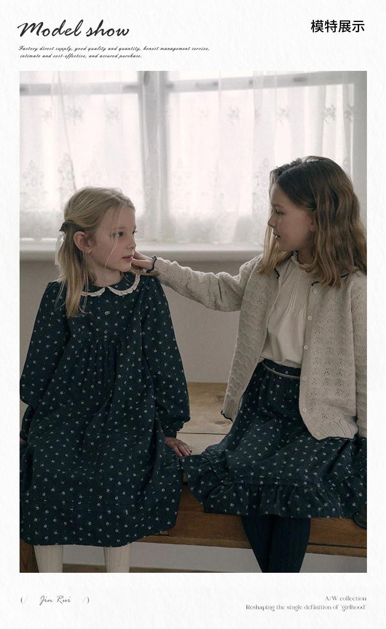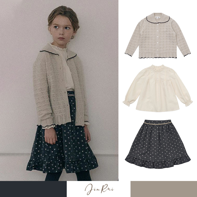 스팟 2025 가을, 겨울 소녀 정장 양모 인형 칼라 카디건 작은 스탠드 칼라 셔츠 꽃 무늬 하프 스커트스토어 가기