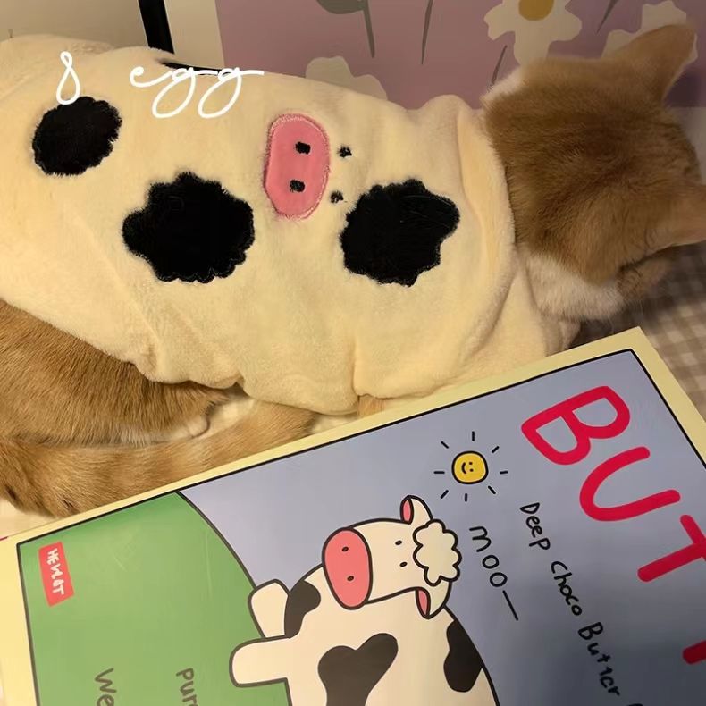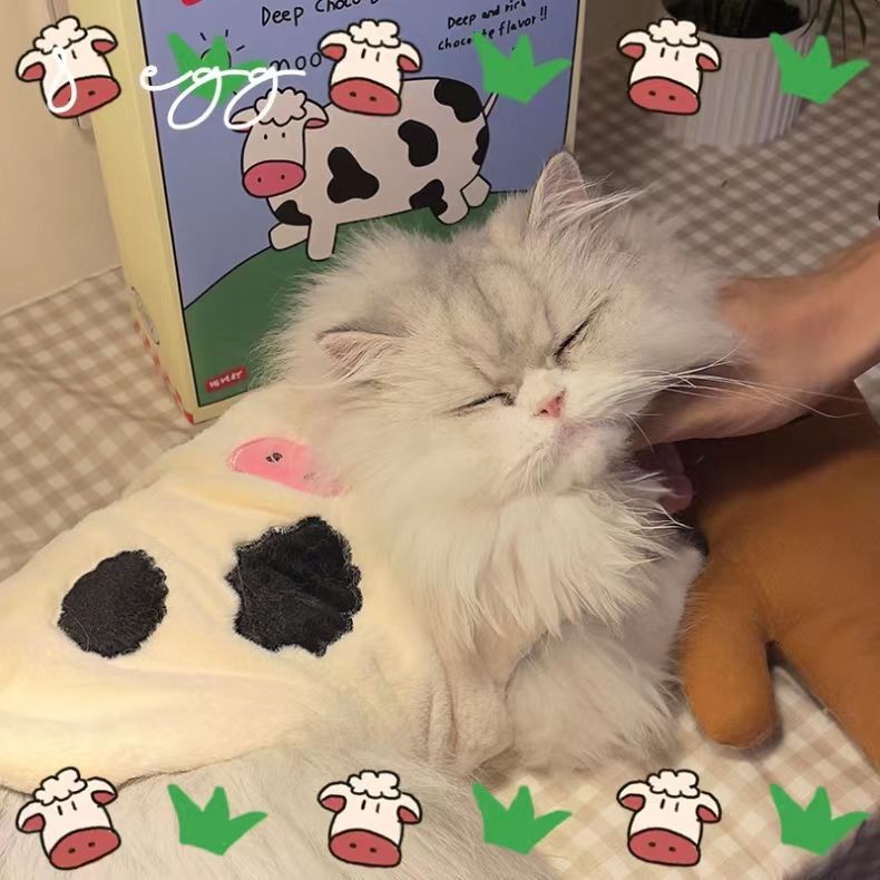 귀여운 암소 목장 ~ 고양이 옷 겨울 기모 따뜻한 조끼 민소매 애완 동물 고양이 조끼 겨울 옷