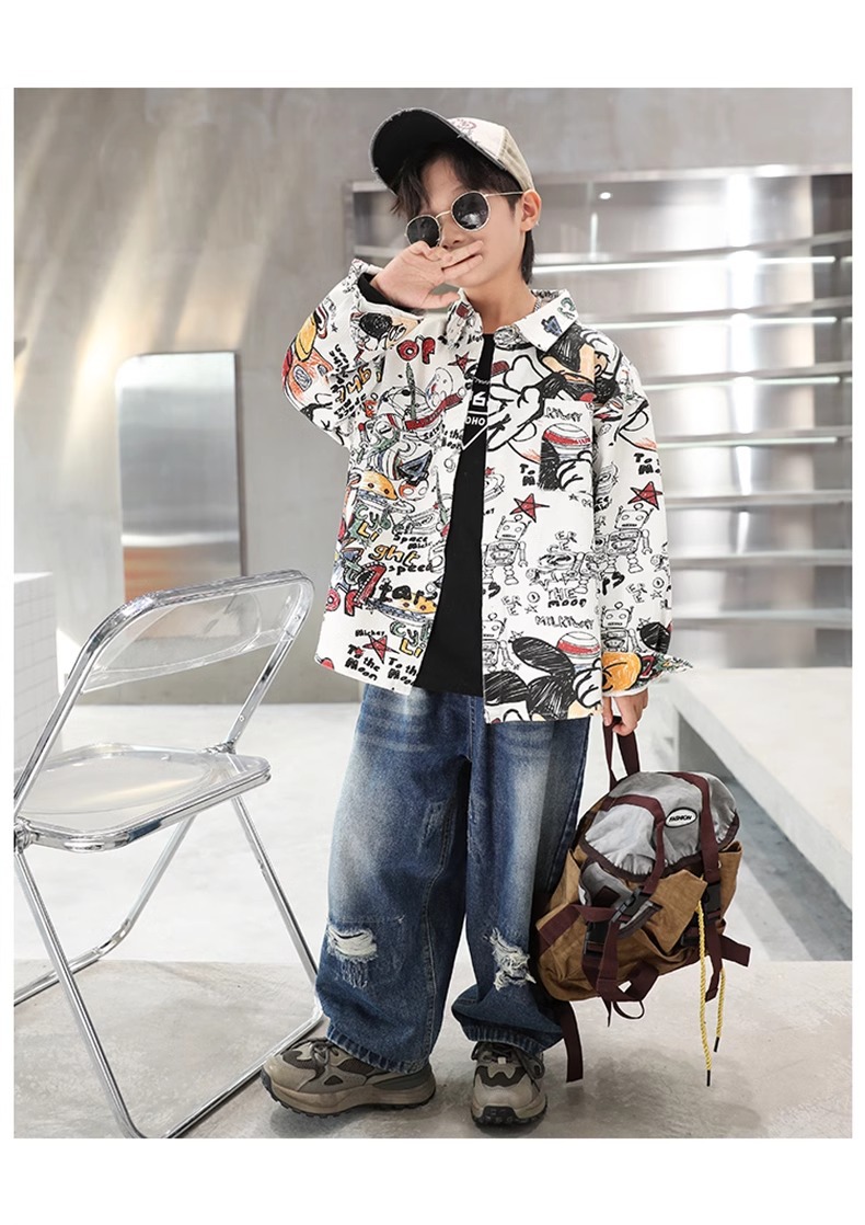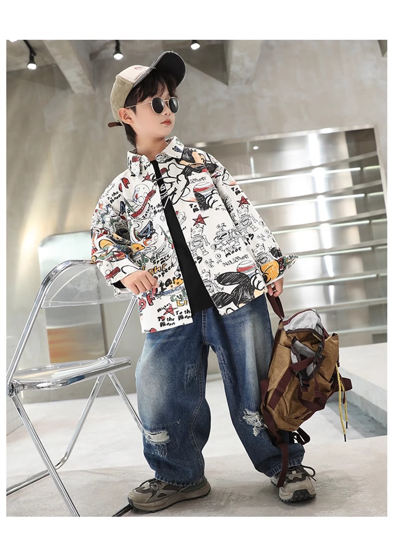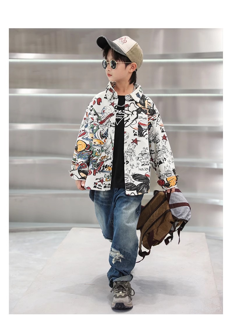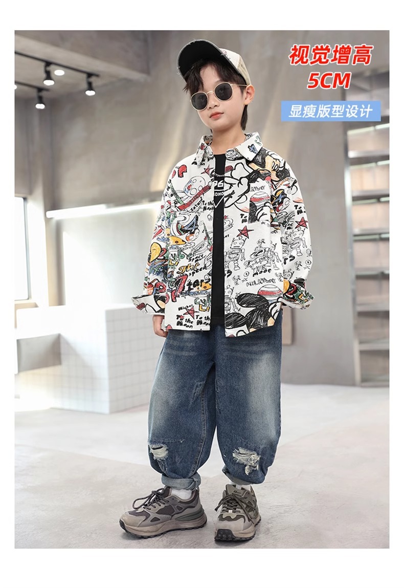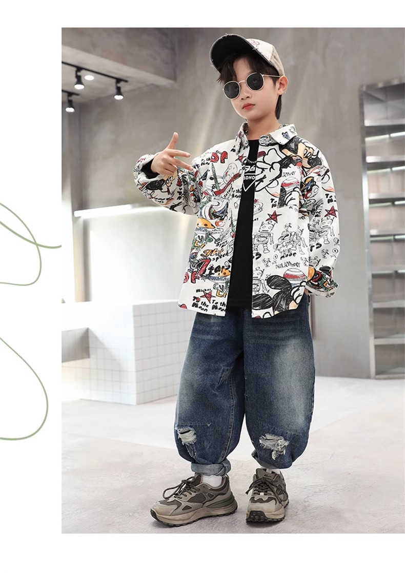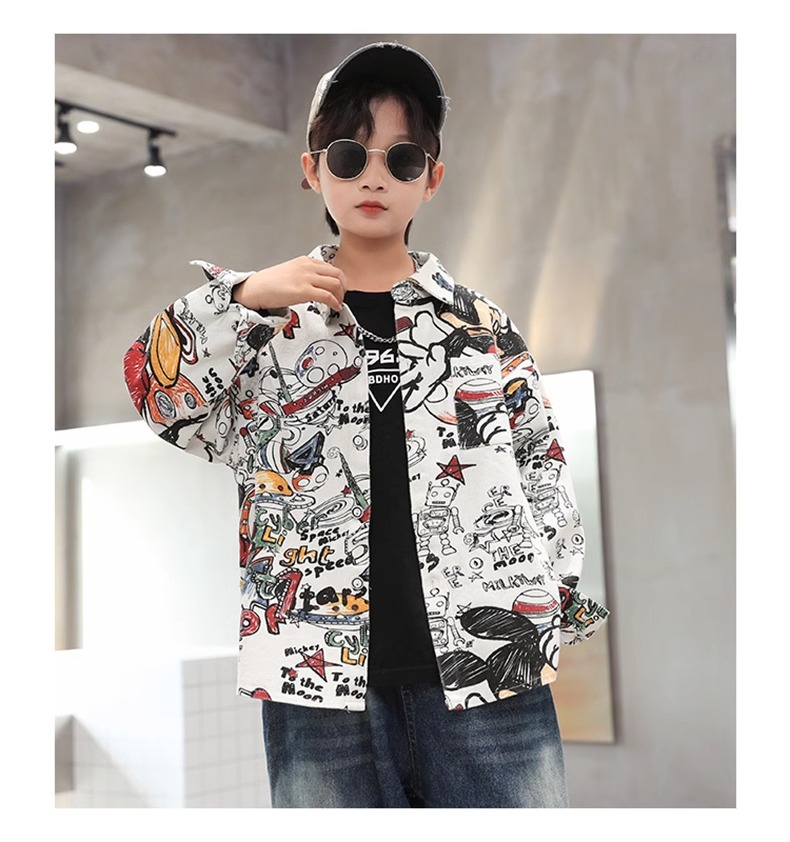 어린이 소년 셔츠 긴 소매 셔츠 봄과 가을 큰 어린이 새 소년 코트 후 저우 질리 세대스토어 가기