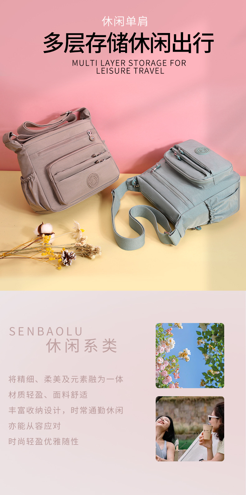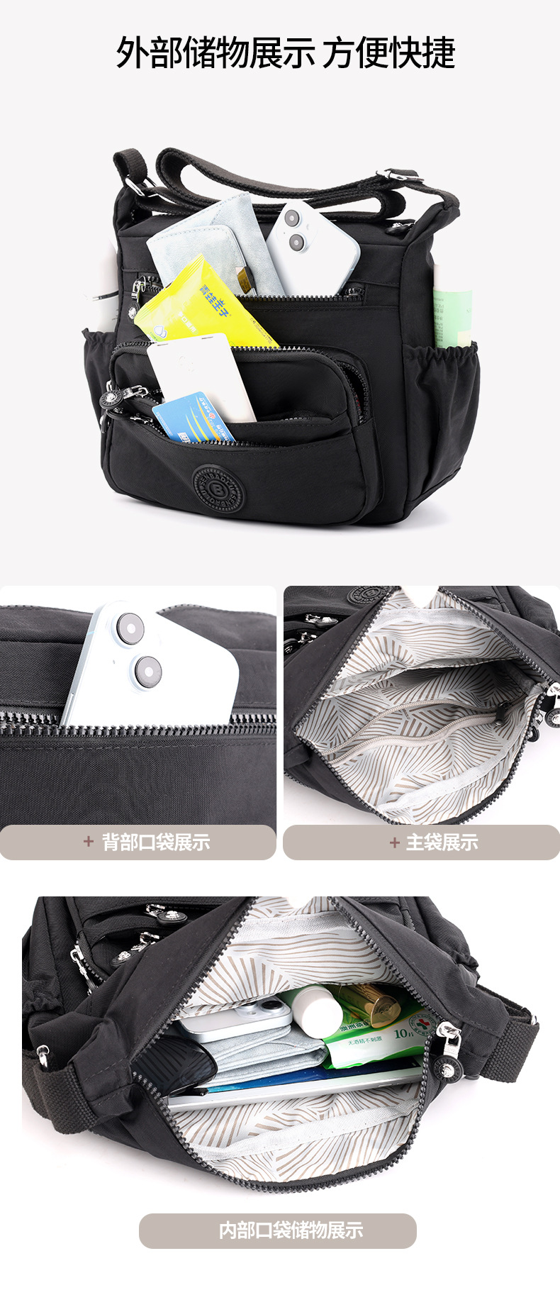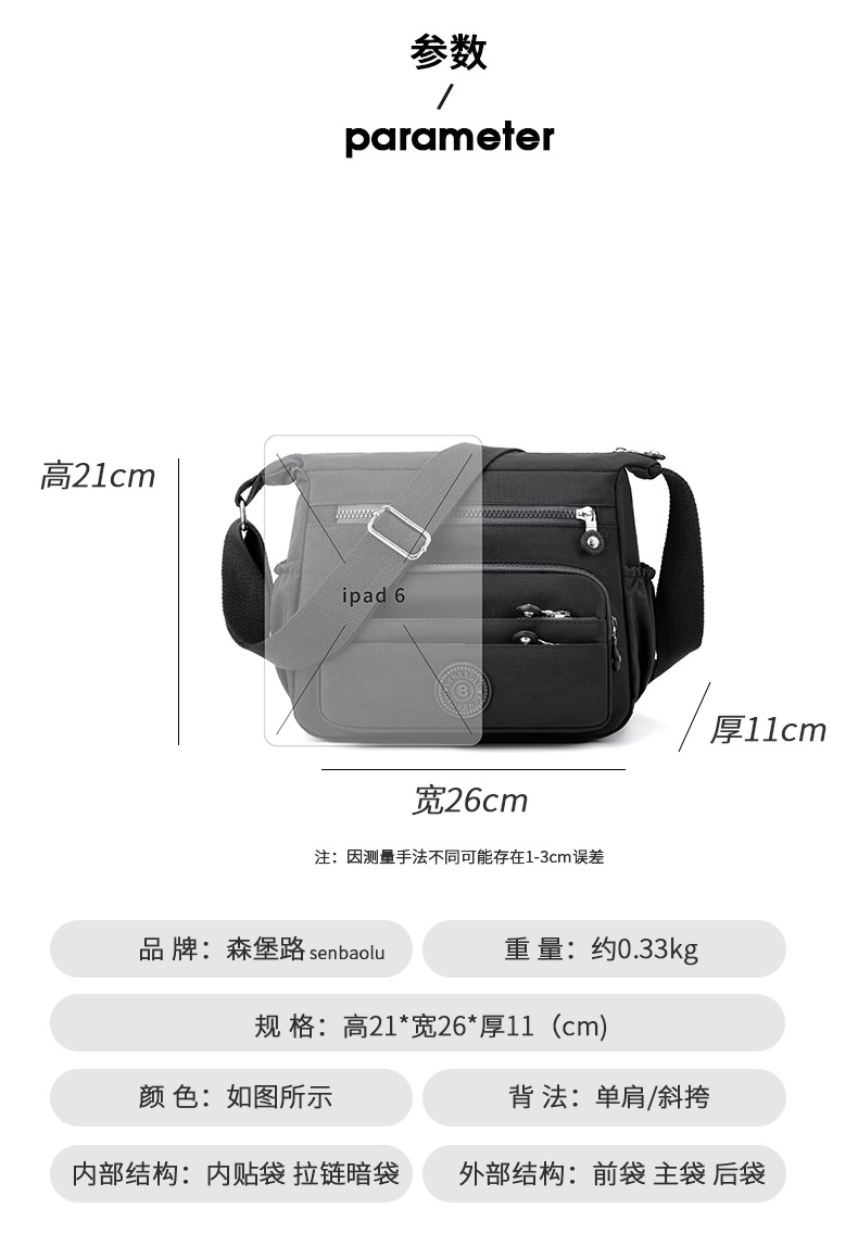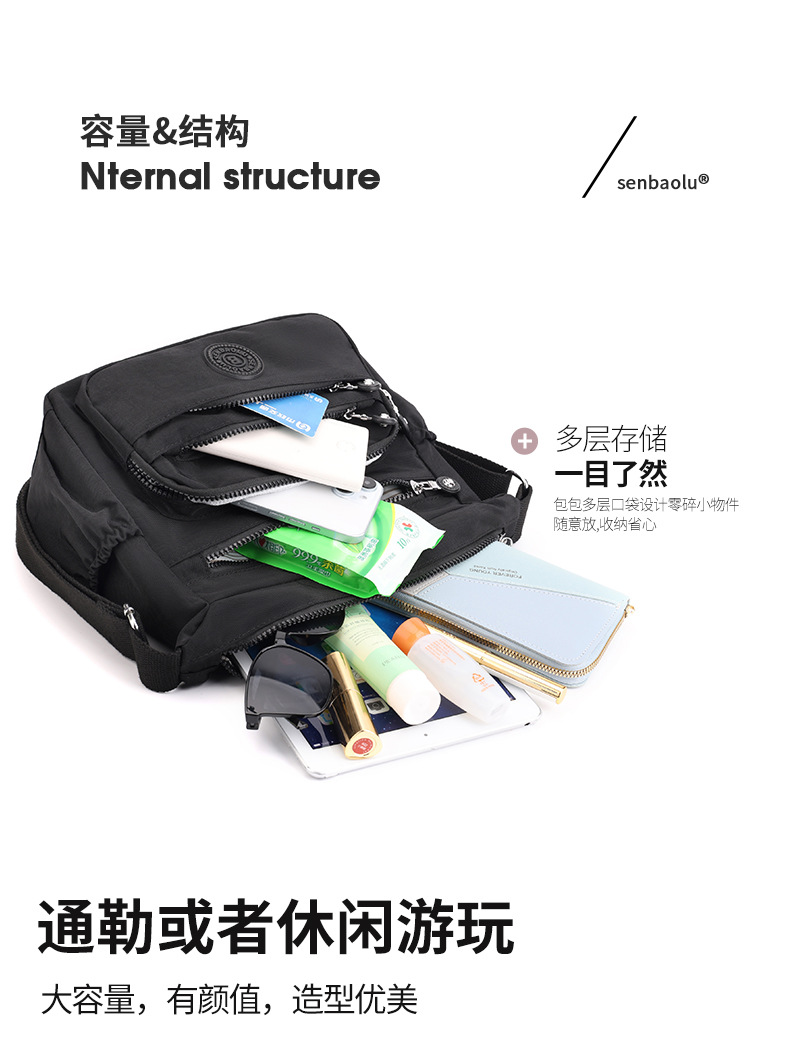 국경 간 여성 일반 가방 대용량 야외 크로스 바디 백 멀티 구획 어깨 가방 캐주얼 발수 나일론 헝겊 가방스토어 가기