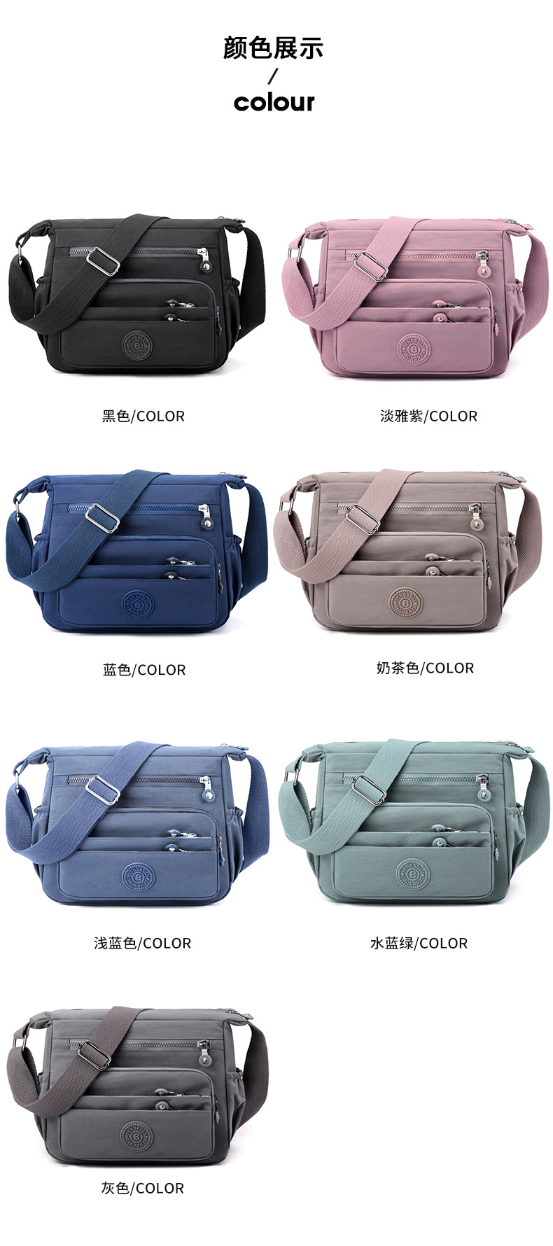 국경 간 여성 일반 가방 대용량 야외 크로스 바디 백 멀티 구획 어깨 가방 캐주얼 발수 나일론 헝겊 가방