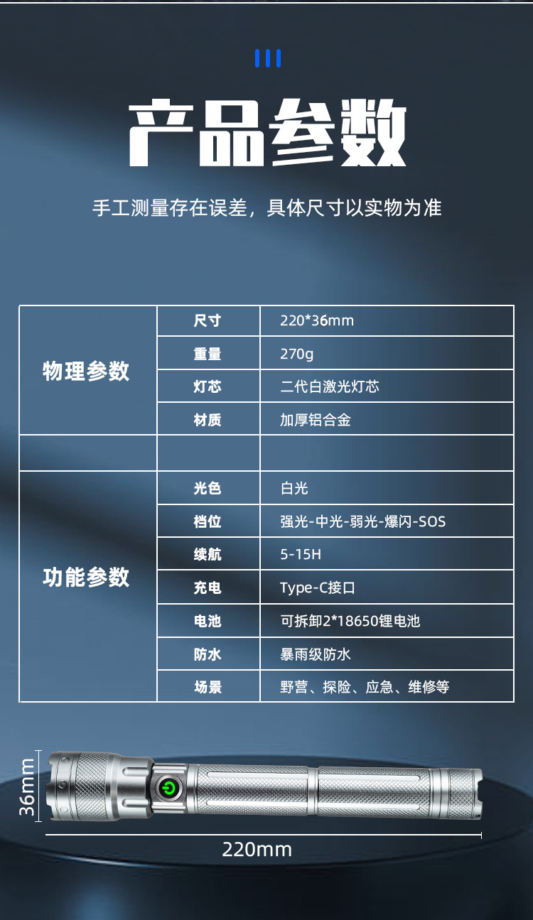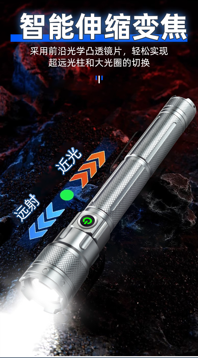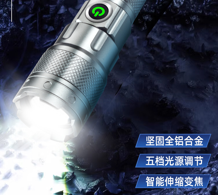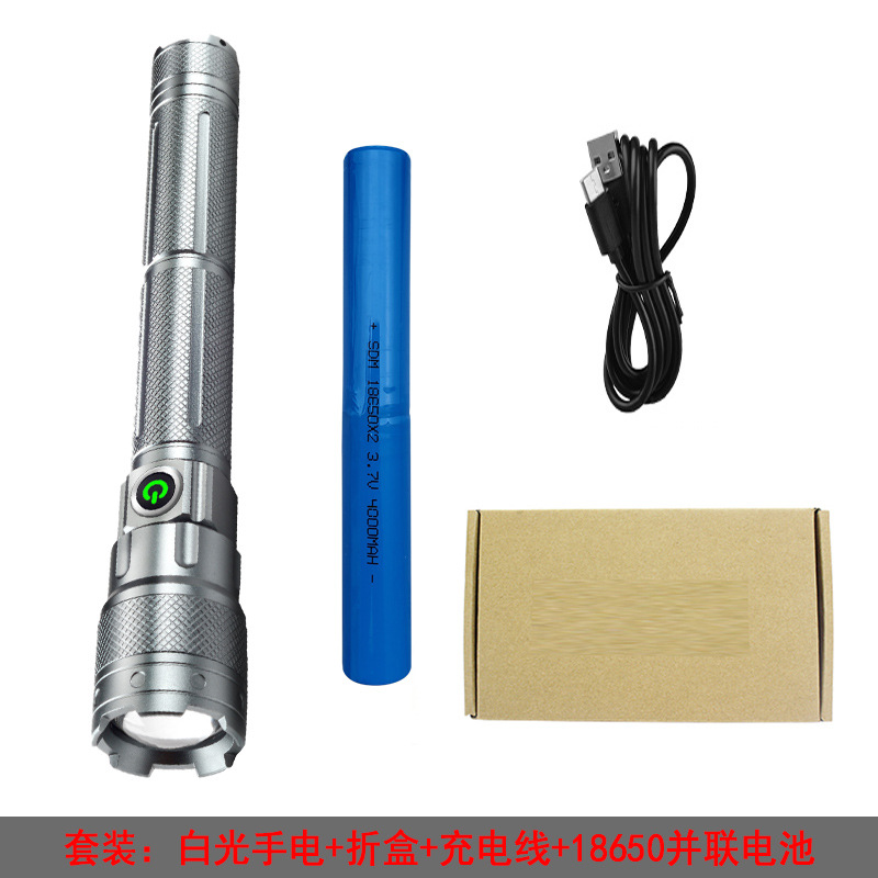 Xuke 교차 국경 새로운 백색 레이저 손전등 망원경 줌 충전식 조명 긴 수명 연장스토어 가기