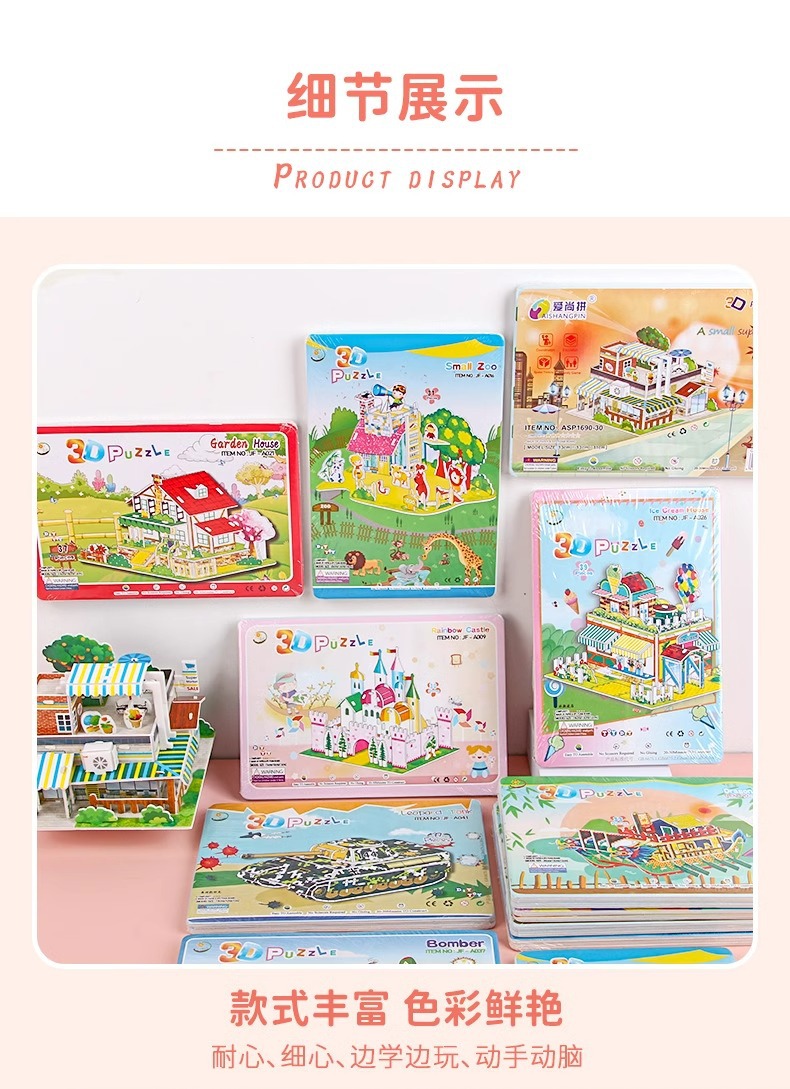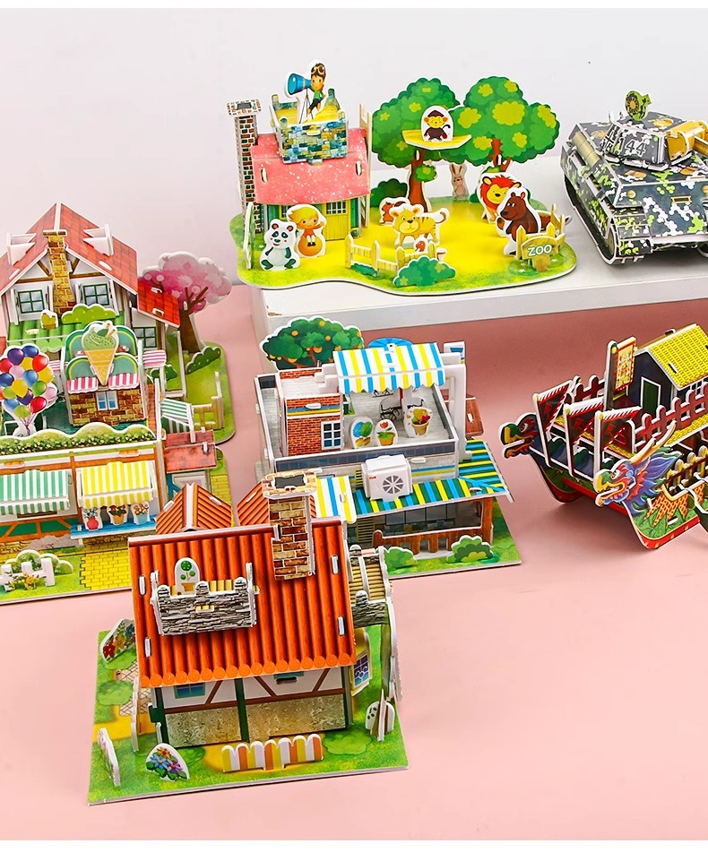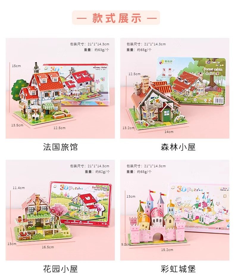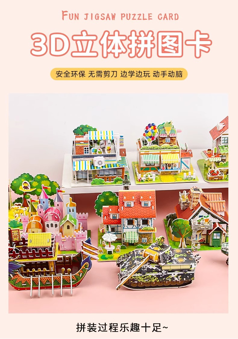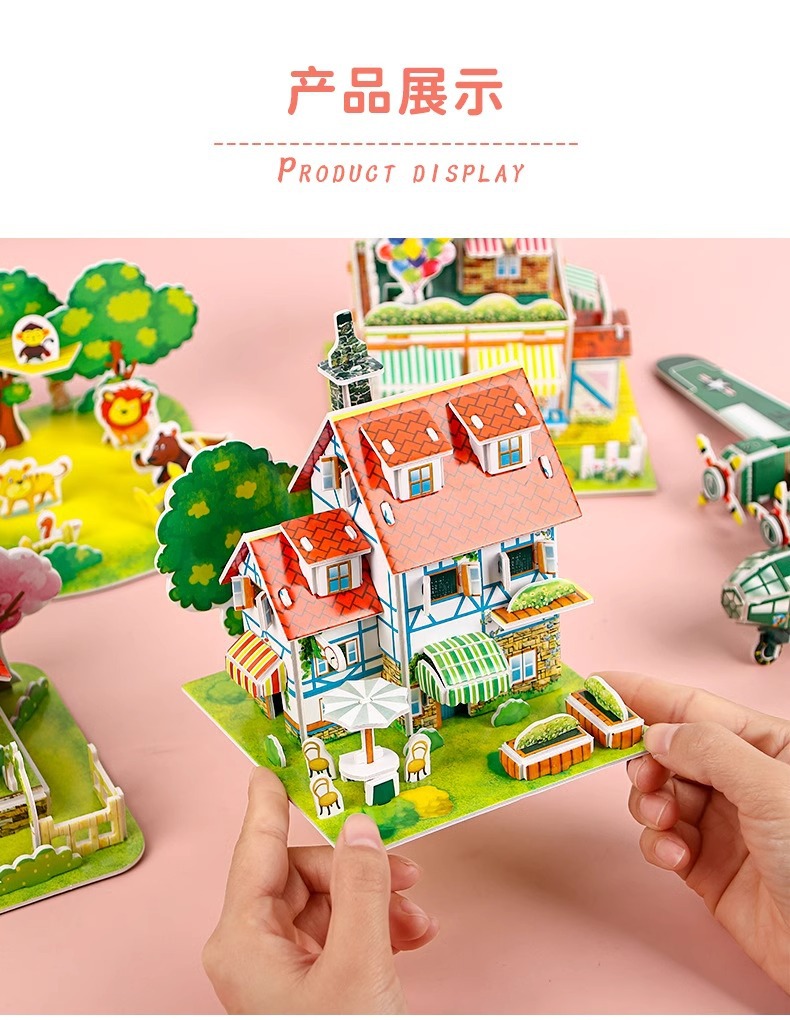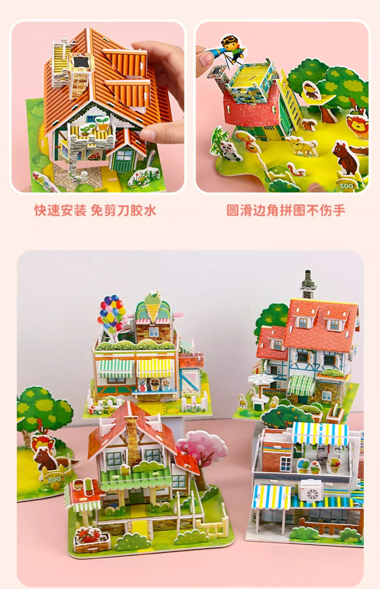 어린이 3D 직소 퍼즐 모델 조립 하우스 빌딩 블록 직소 퍼즐 소녀 DIY 수제 하우스 교육 장난감스토어 가기