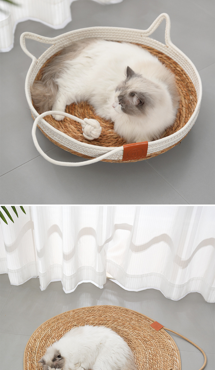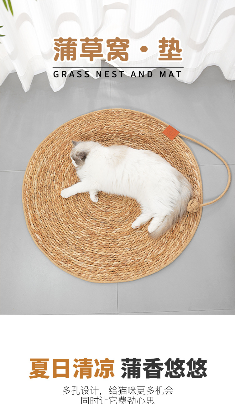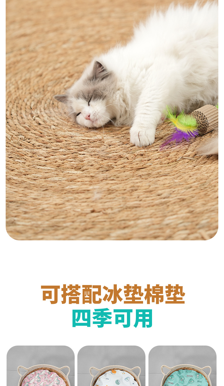 고양이 둥지 사계절 유니버설 등나무 고양이 침대 고양이 스크래치 보드 통합 슬리핑 네스트 짠 여름 내마모성 매트 고양이 둥지