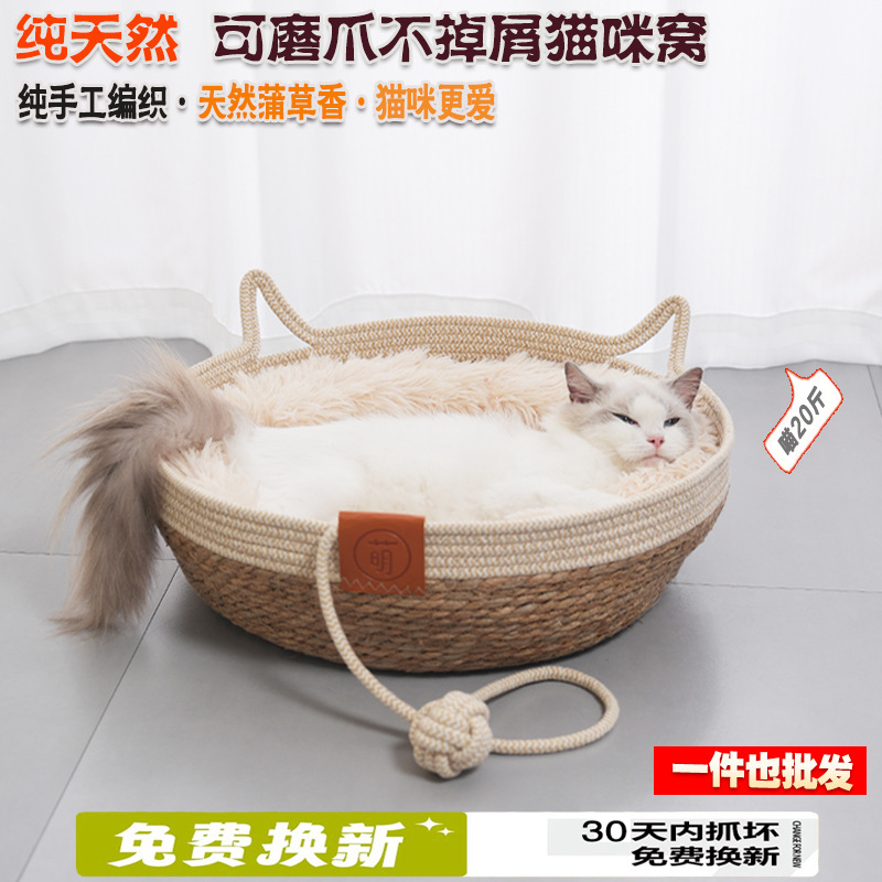 고양이 둥지 사계절 유니버설 등나무 고양이 침대 고양이 스크래치 보드 통합 슬리핑 네스트 짠 여름 내마모성 매트 고양이 둥지스토어 가기