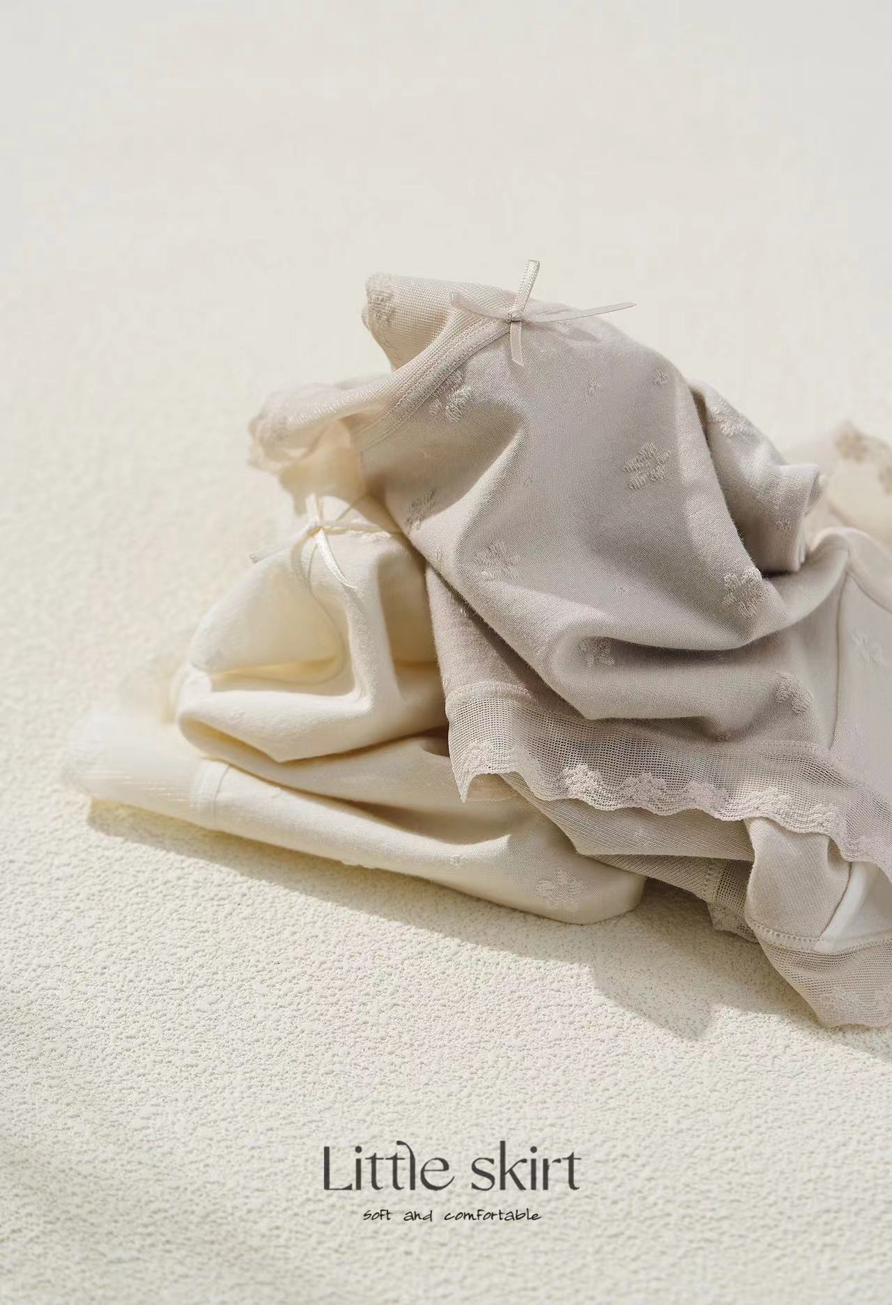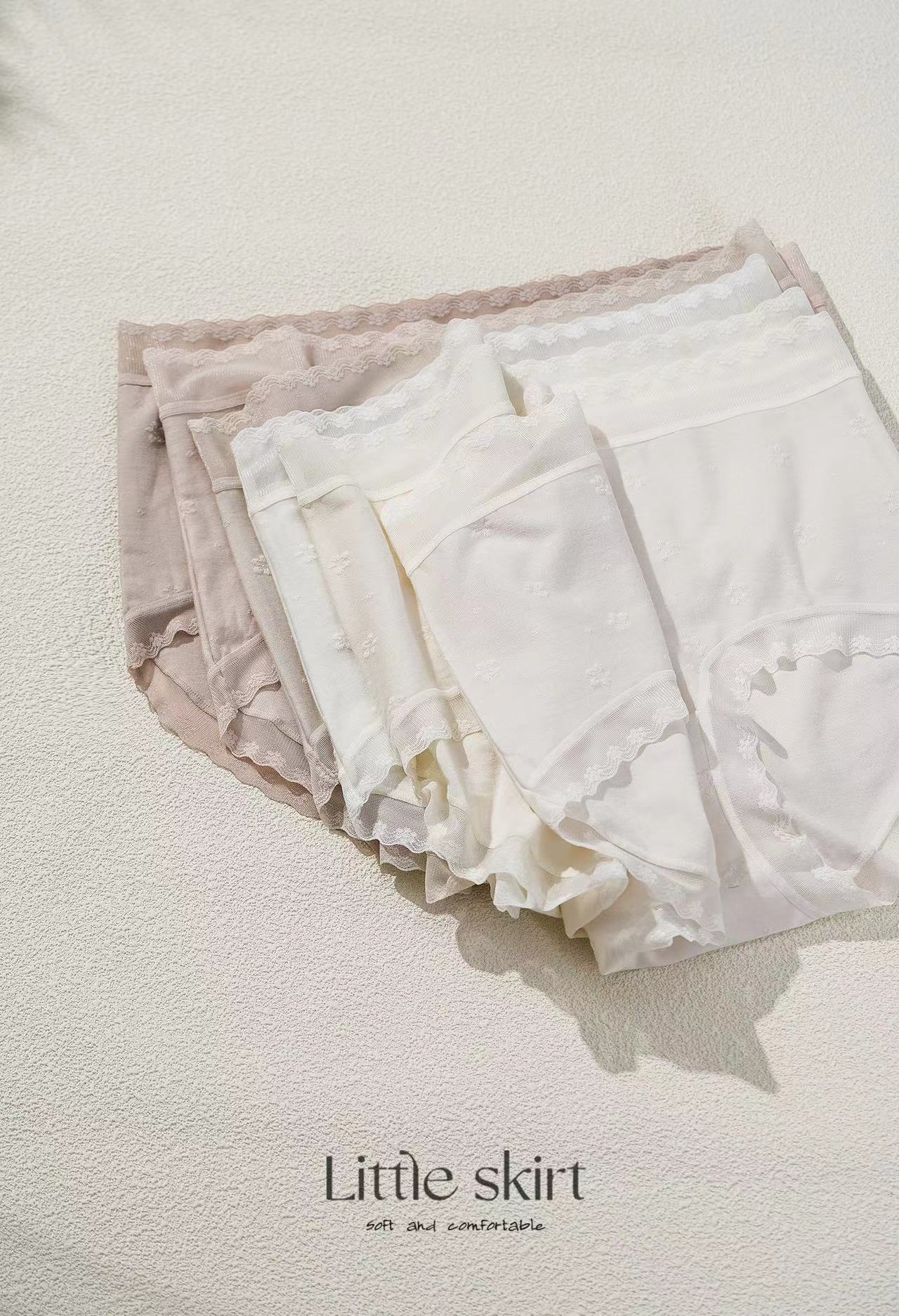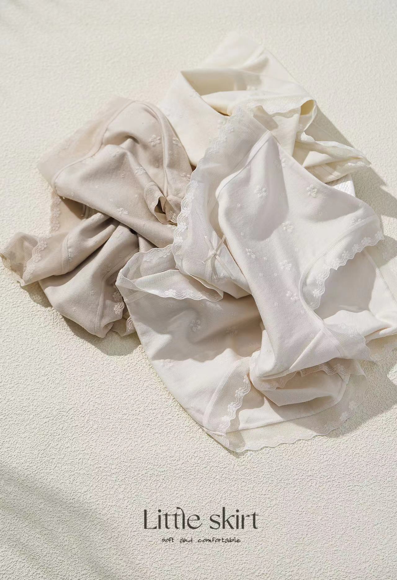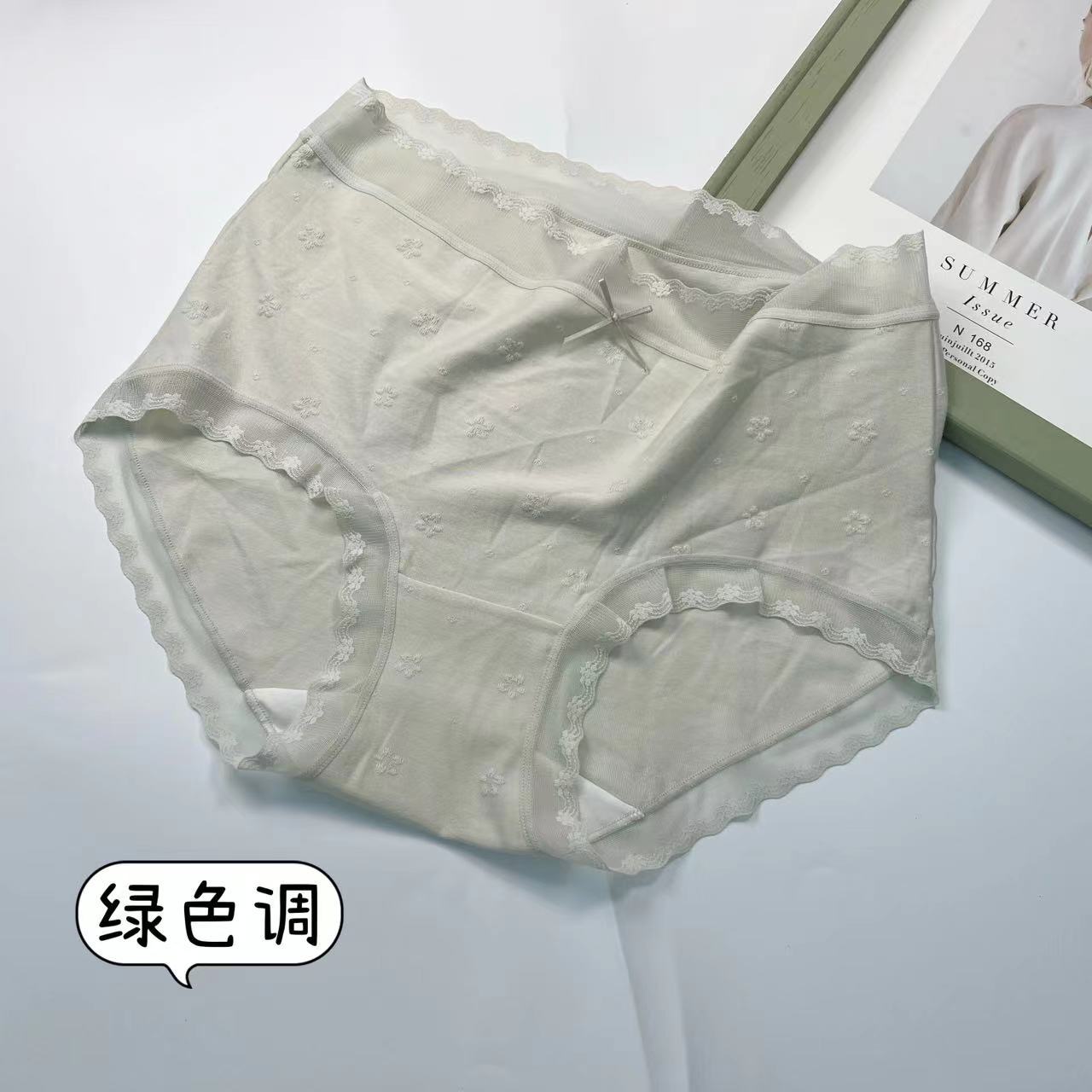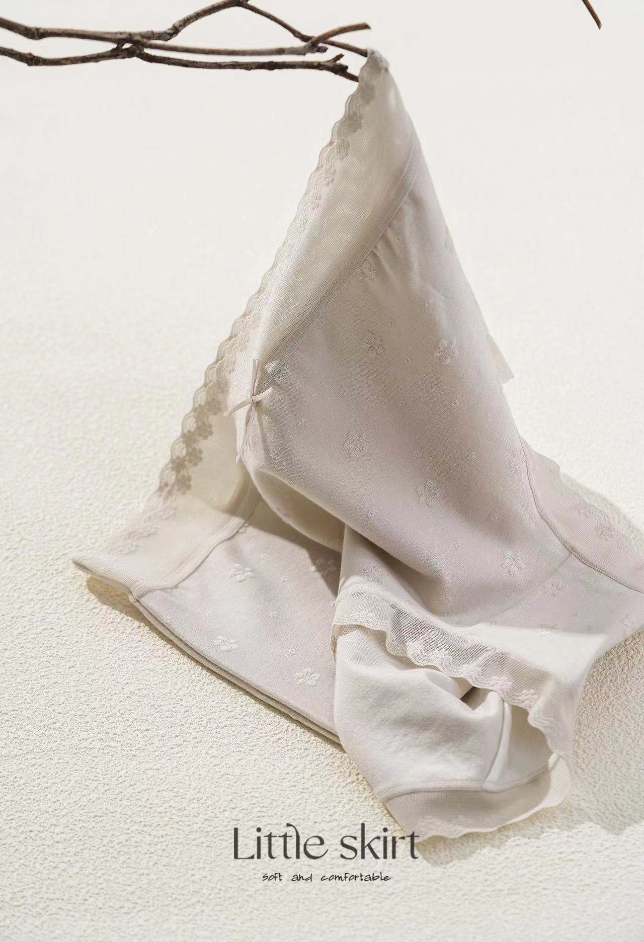 샤오란 스커트 F006 면 자카드 여성 속옷 중간 허리 달콤한 레이스 테두리 피부 친화적이고 통기성이 좋은 힙을 조이지 않는 삼각 팬티