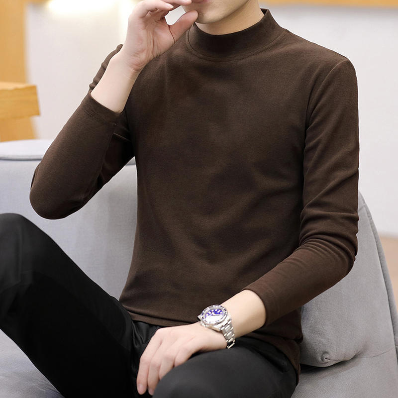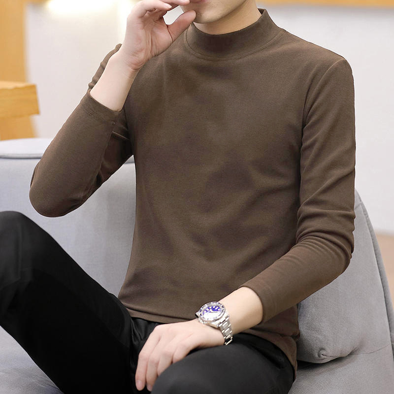 양면 벨벳 가을과 겨울 조커 따뜻한 옷을 입은 공장 도매 남성 긴팔 티셔츠 하프 하이 칼라 바닥 셔츠스토어 가기