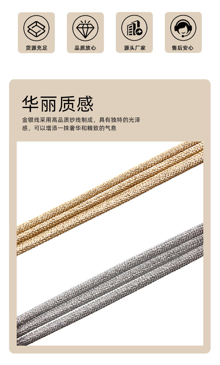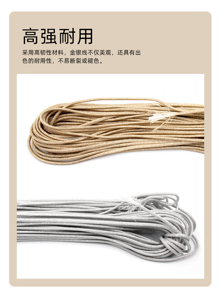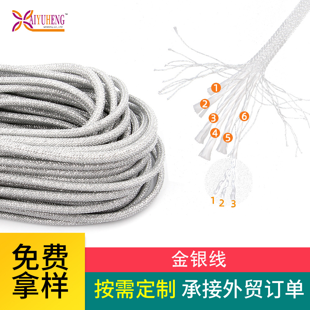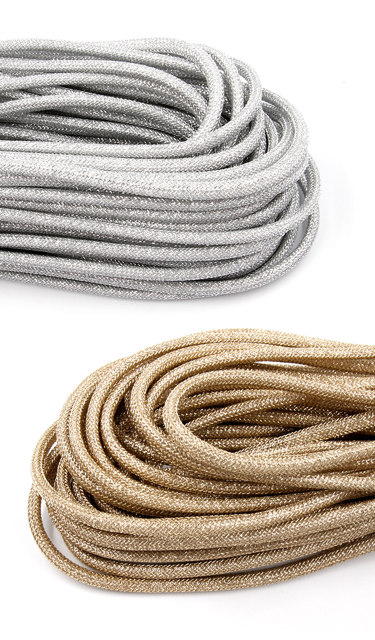 제조 업체 도매 강력하고 내구성이 뛰어난 황금 로프 3mm4mm 라운드 로프 코어 팩 로프 금은 와이어 땋은 로프 폴리 에스터 로프