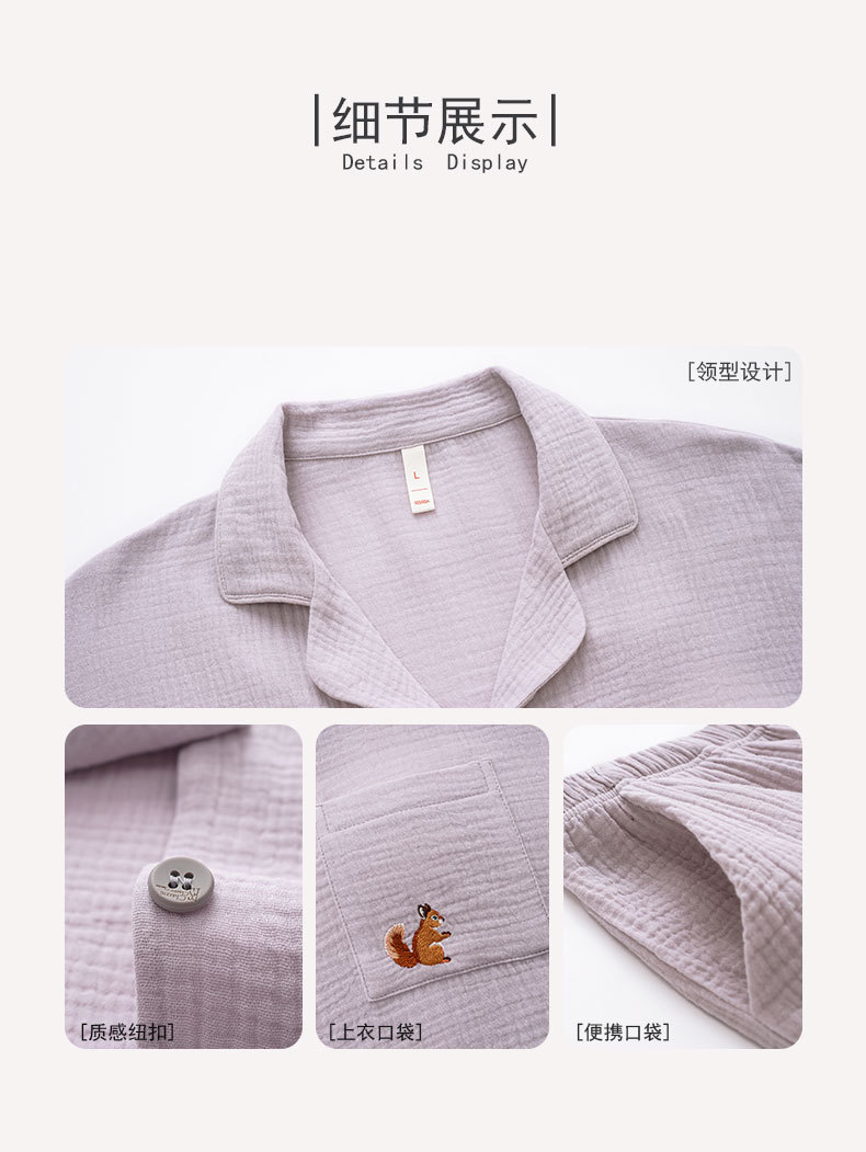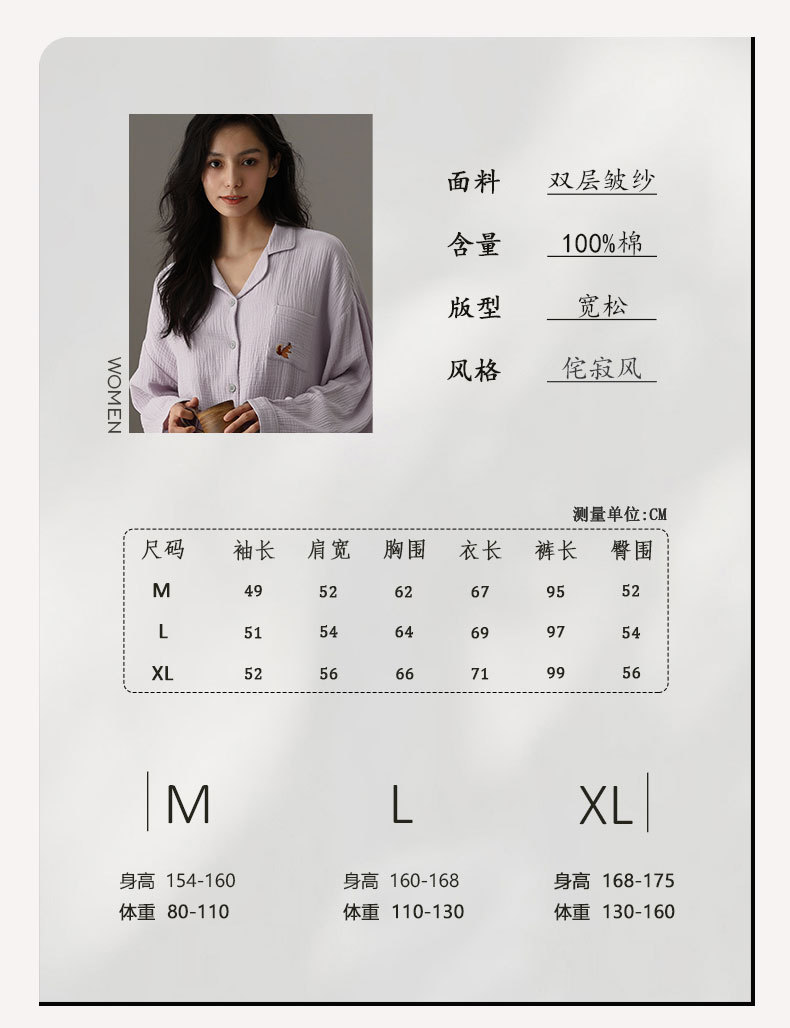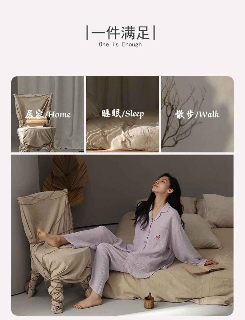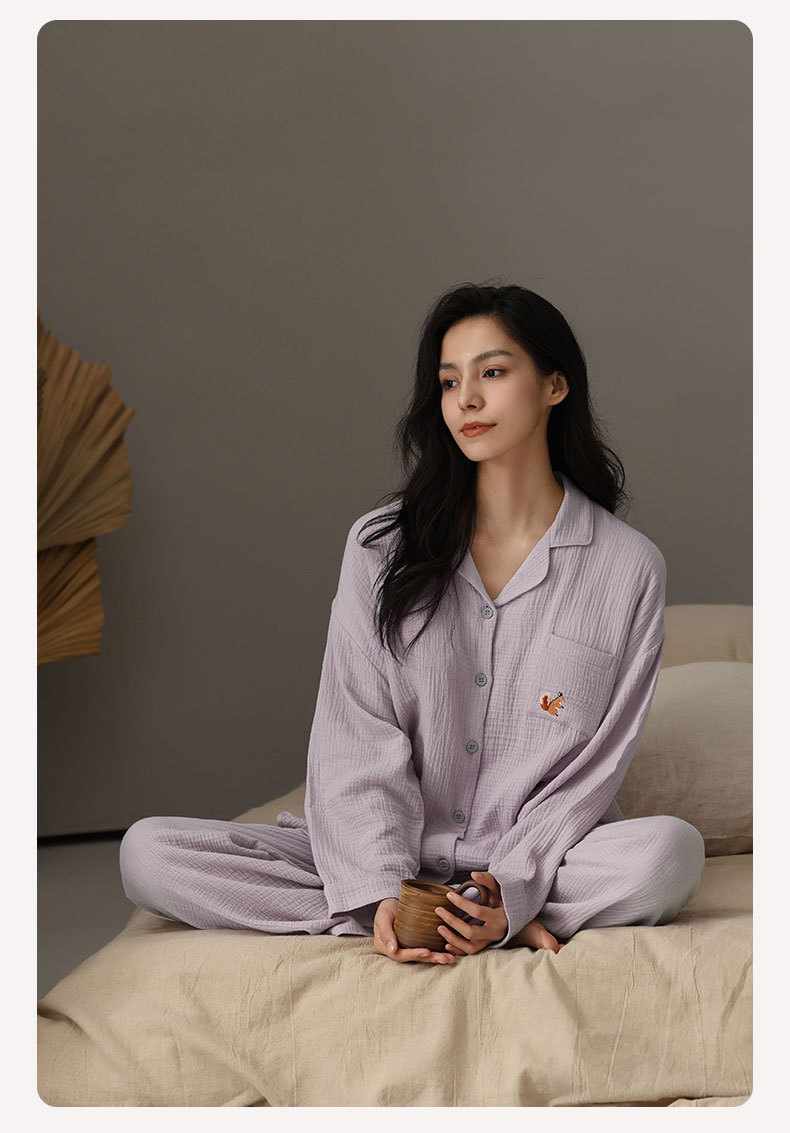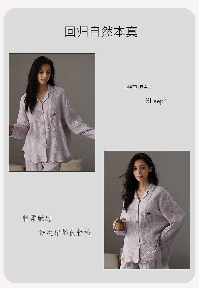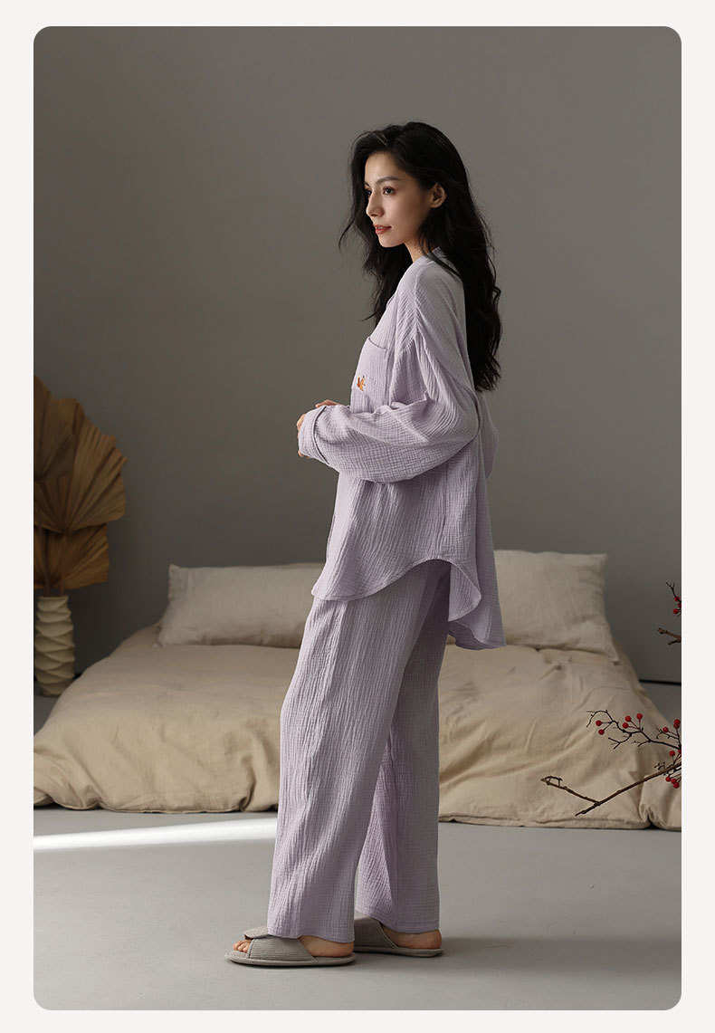 【A급 이중 거즈】여성용 면 100% 거즈 잠옷, 긴팔, 루즈핏, 가슴 패드 포함, 외부 착용 가능, 여성 홈웨어, 봄a스토어 가기