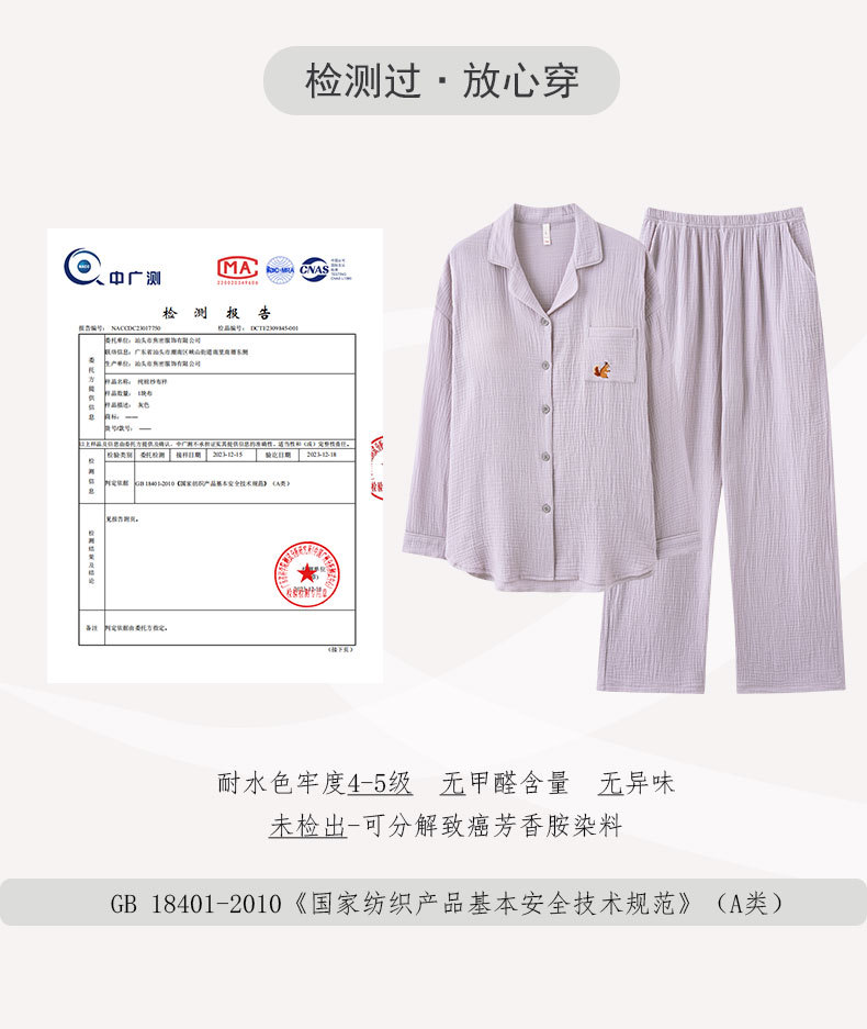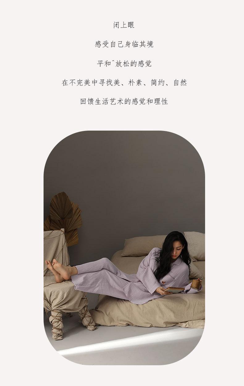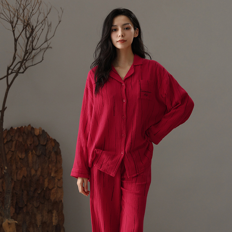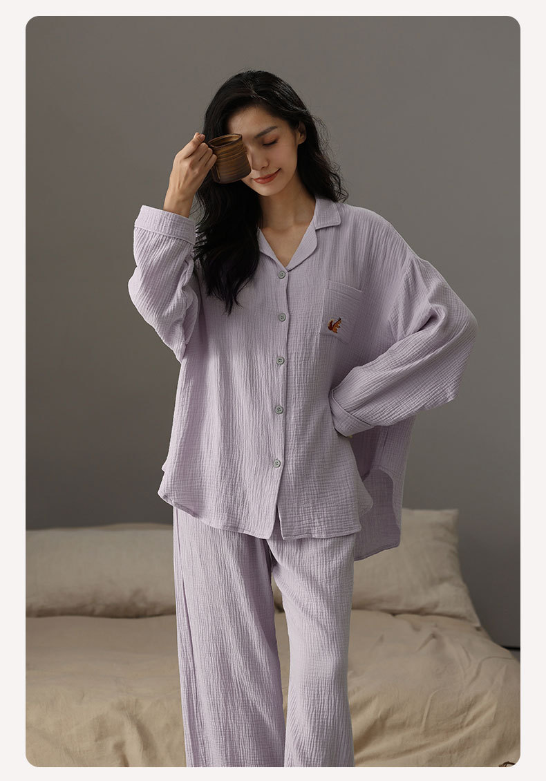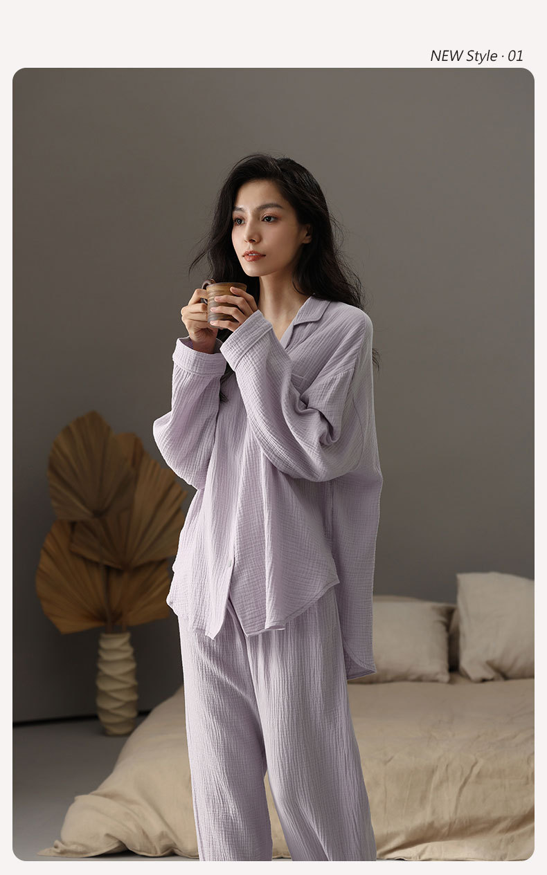 【A급 이중 거즈】여성용 면 100% 거즈 잠옷, 긴팔, 루즈핏, 가슴 패드 포함, 외부 착용 가능, 여성 홈웨어, 봄a