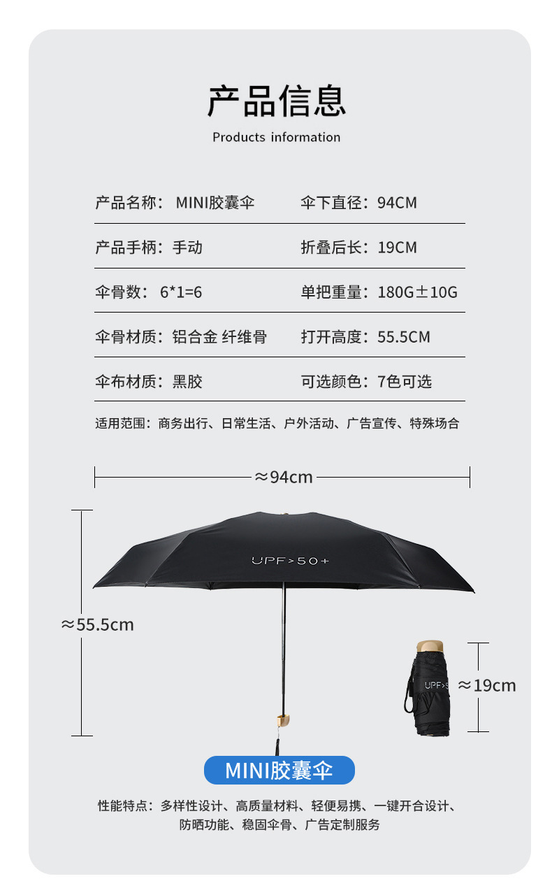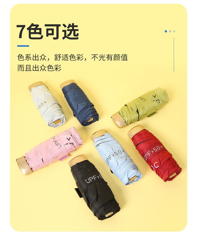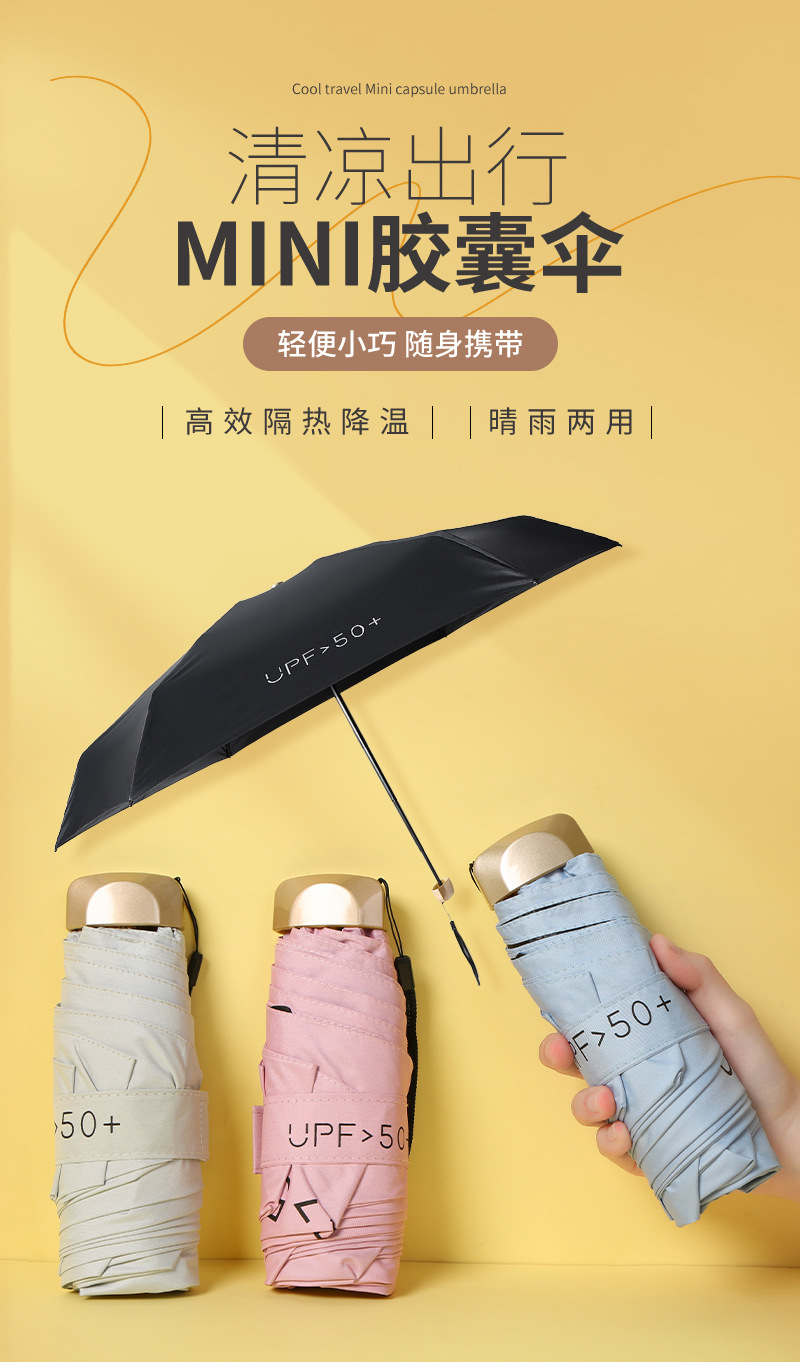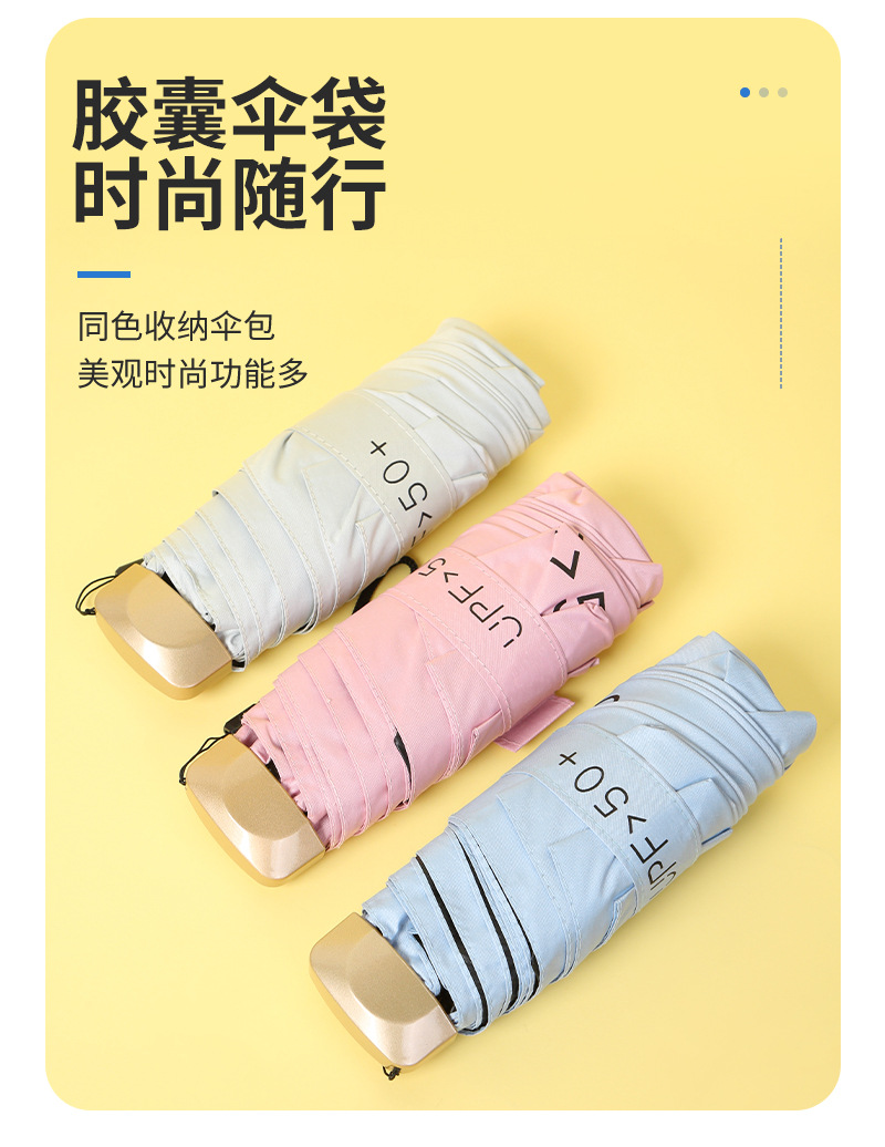 재고 자외선 차단제 미니 캡슐 우산 알루미늄 섬유 뼈 차양 우산 도매 휴대용 비닐 태양 우산 맞춤스토어 가기