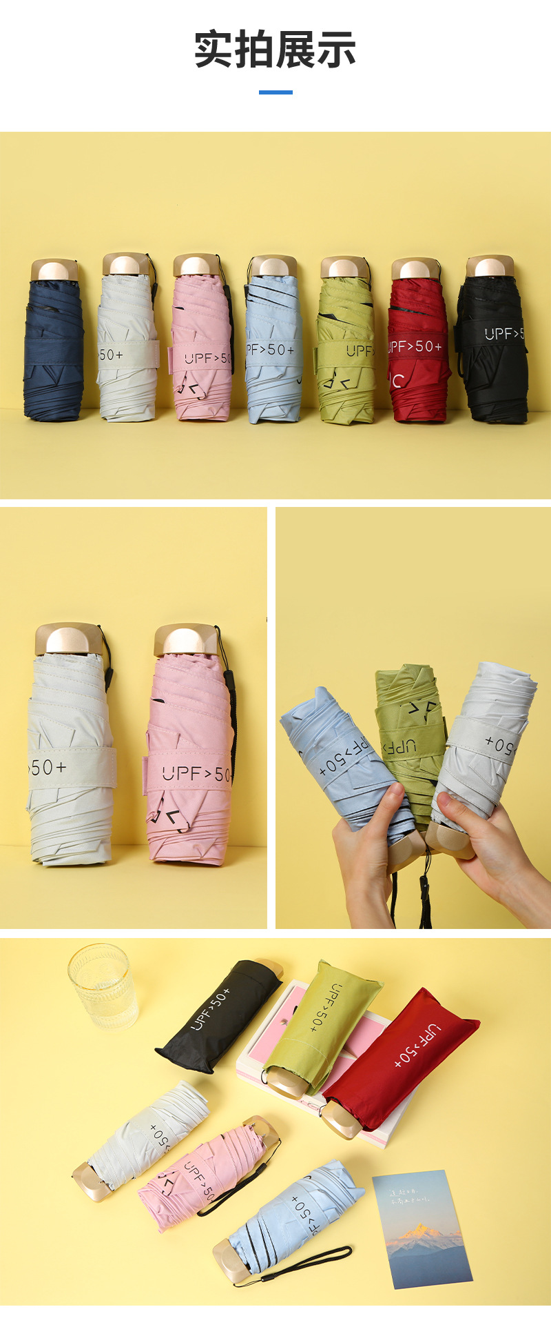 재고 자외선 차단제 미니 캡슐 우산 알루미늄 섬유 뼈 차양 우산 도매 휴대용 비닐 태양 우산 맞춤