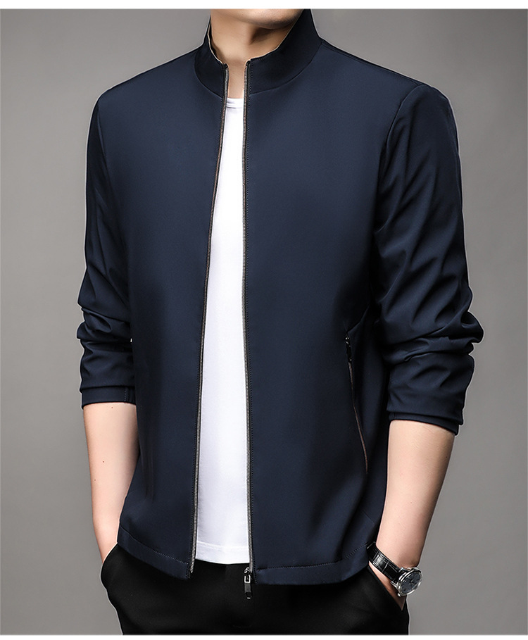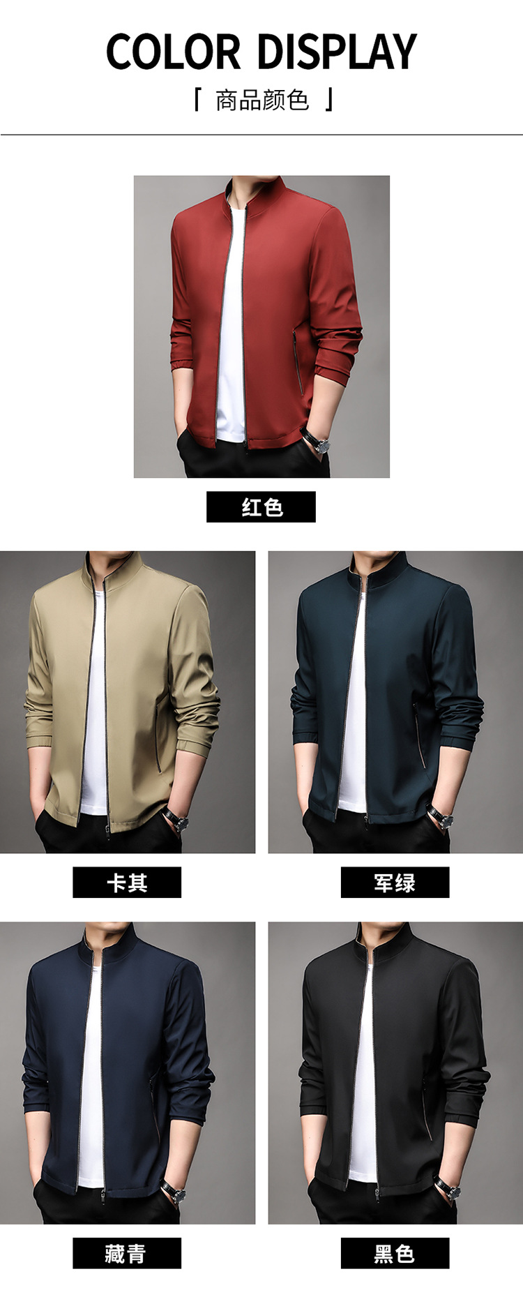 국경 간 대외 무역 재킷 남성 봄과 가을 새로운 하이 엔드 비즈니스 캐주얼 남성 단색 스탠드 칼라 지퍼 재킷 도매스토어 가기