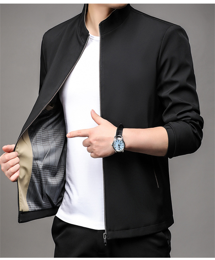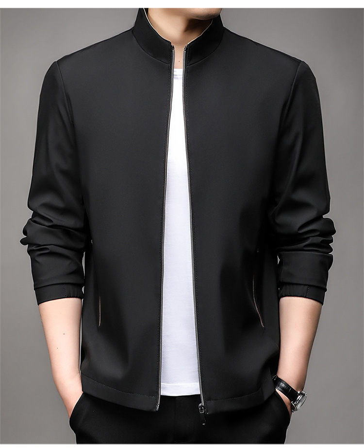 국경 간 대외 무역 재킷 남성 봄과 가을 새로운 하이 엔드 비즈니스 캐주얼 남성 단색 스탠드 칼라 지퍼 재킷 도매