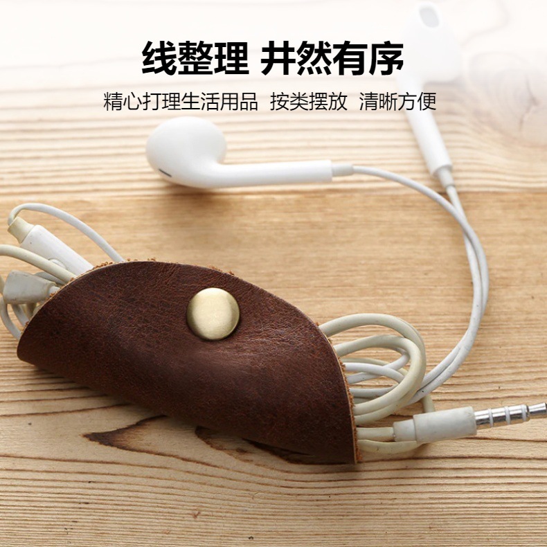 일본과 한국의 창조적 인 라운드 가죽 이어폰 케이블 윈더 휴대용 케이블 주최자 헤드폰 데이터 케이블 저장스토어 가기