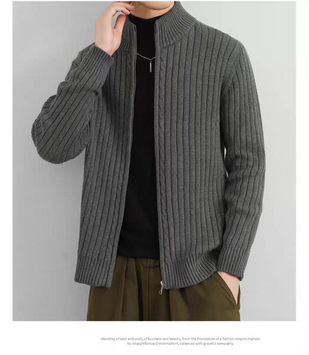봄 가을 겨울 2024 새로운 입장 럭셔리 남성 니트웨어 카디건 외부 착용 느슨한 지퍼 랩 스웨터 재킷 남성용스토어 가기