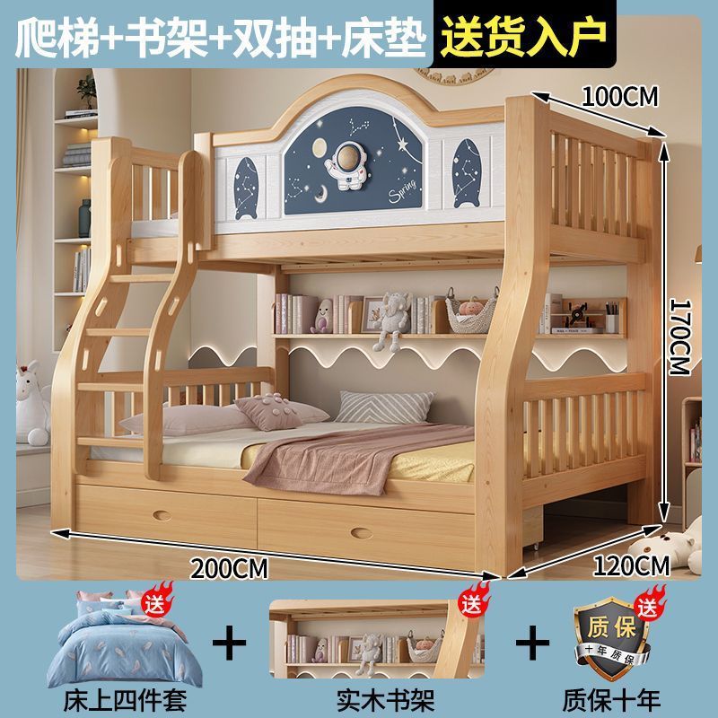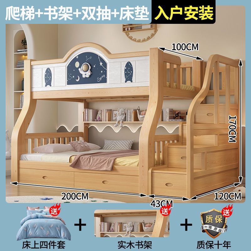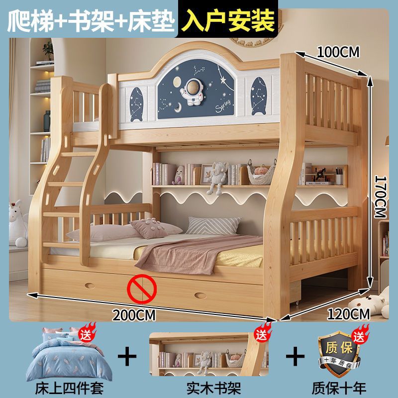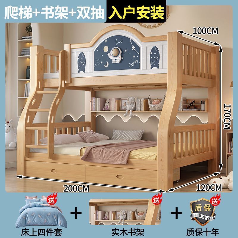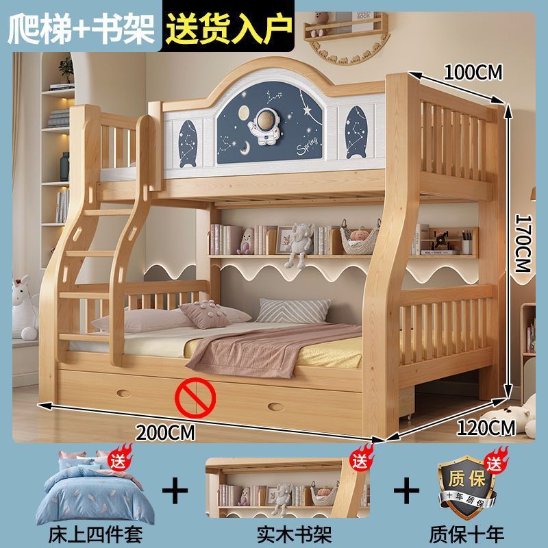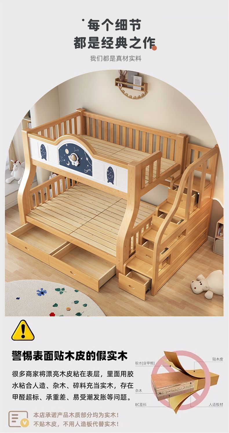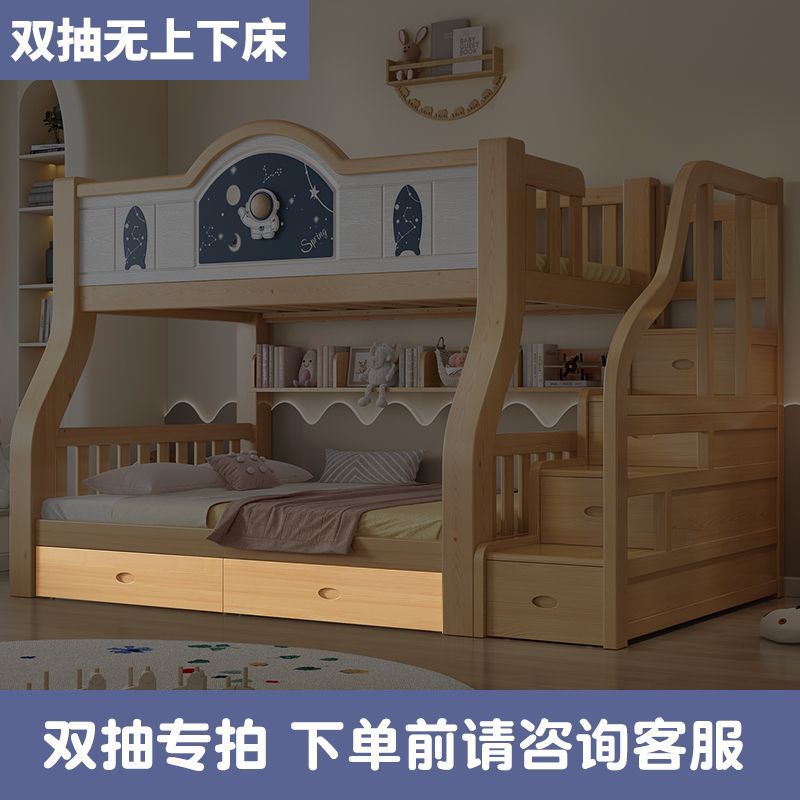 Pinrui 분석 솔리드 우드 어린이 침대와 침대 2 층 높고 낮은 침대 작은 아파트 두꺼운 더블 침대