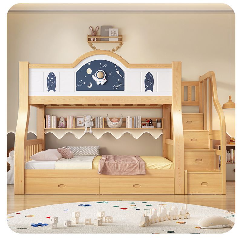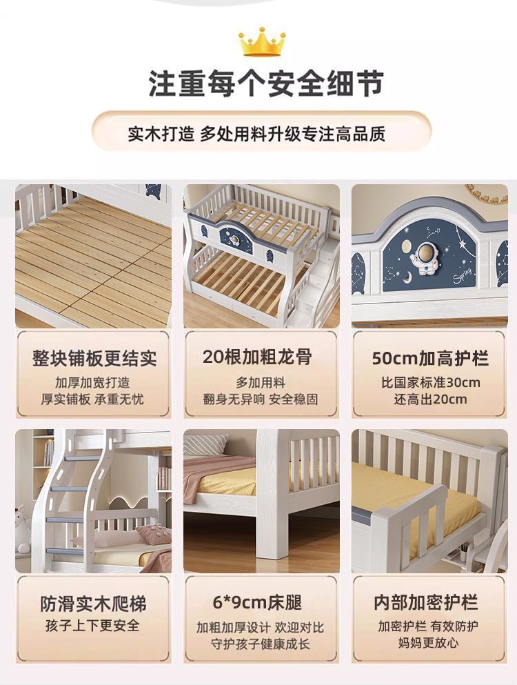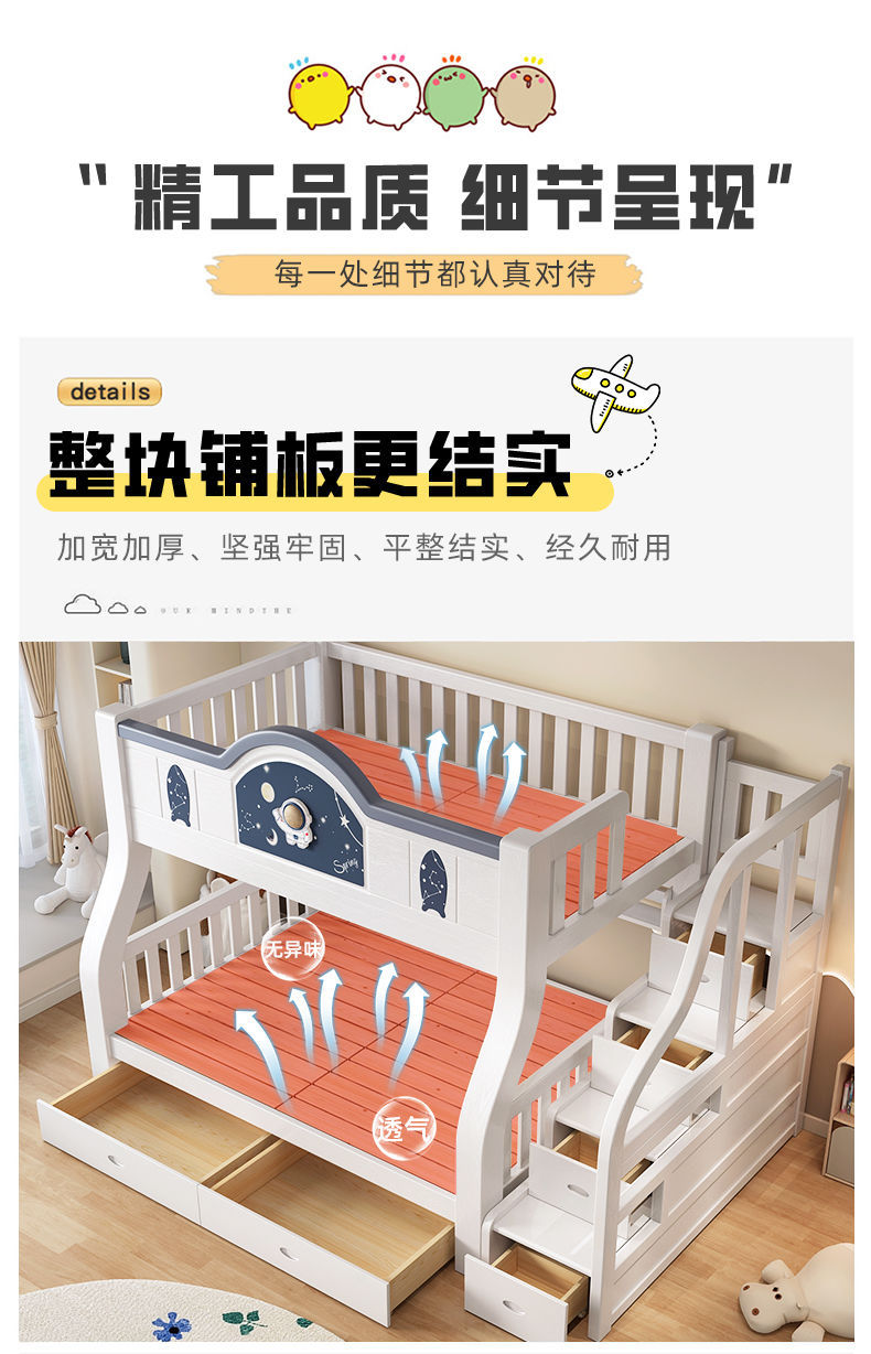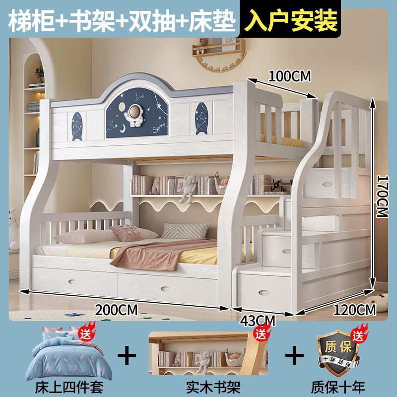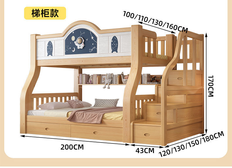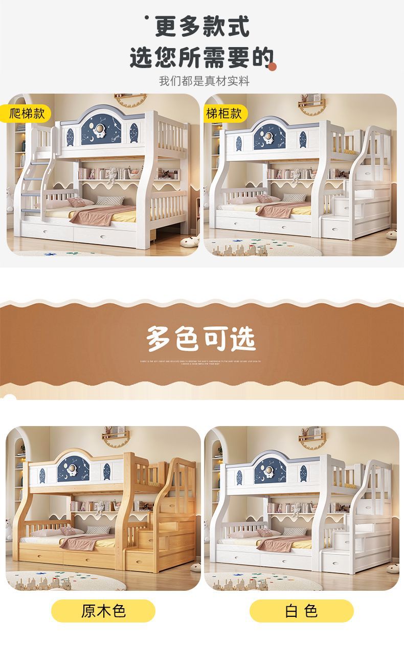 Pinrui 분석 솔리드 우드 어린이 침대와 침대 2 층 높고 낮은 침대 작은 아파트 두꺼운 더블 침대