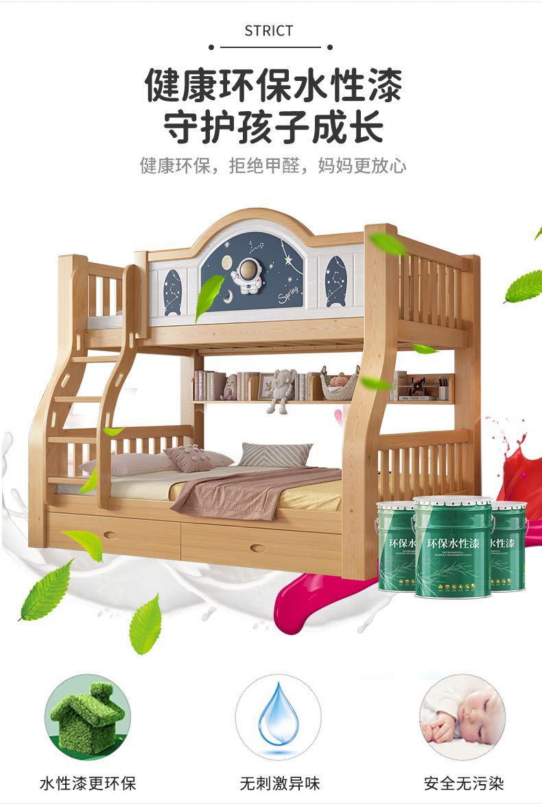 Pinrui 분석 솔리드 우드 어린이 침대와 침대 2 층 높고 낮은 침대 작은 아파트 두꺼운 더블 침대스토어 가기