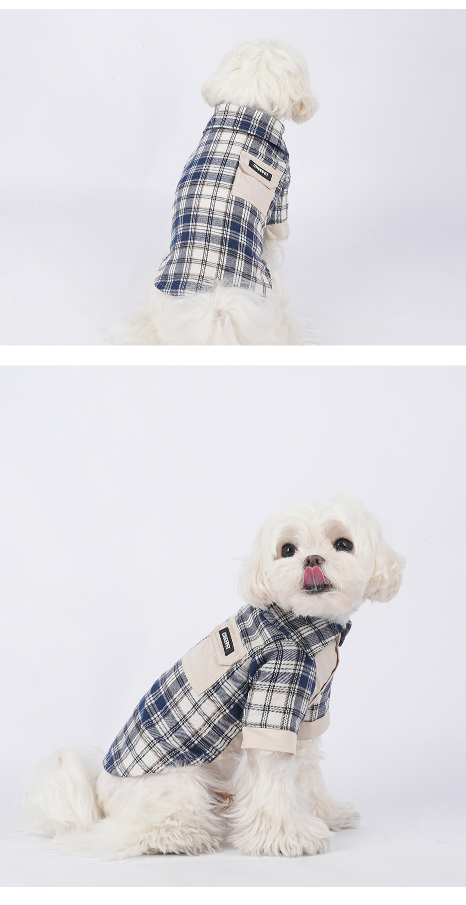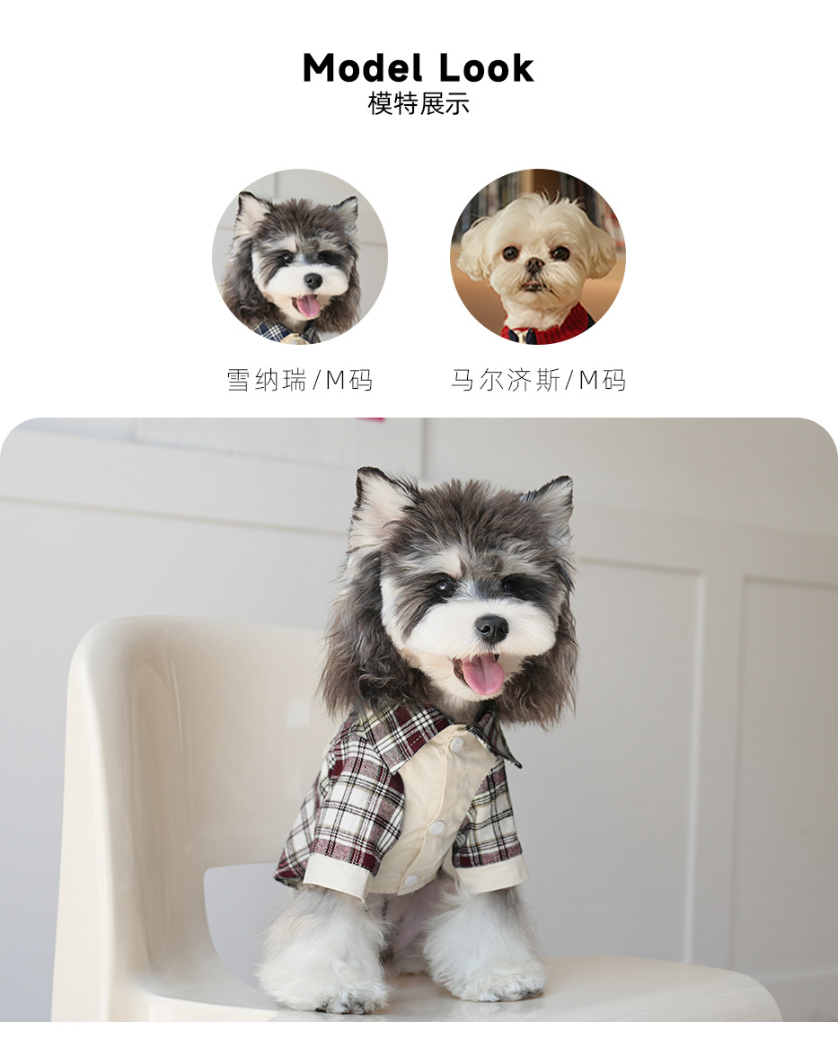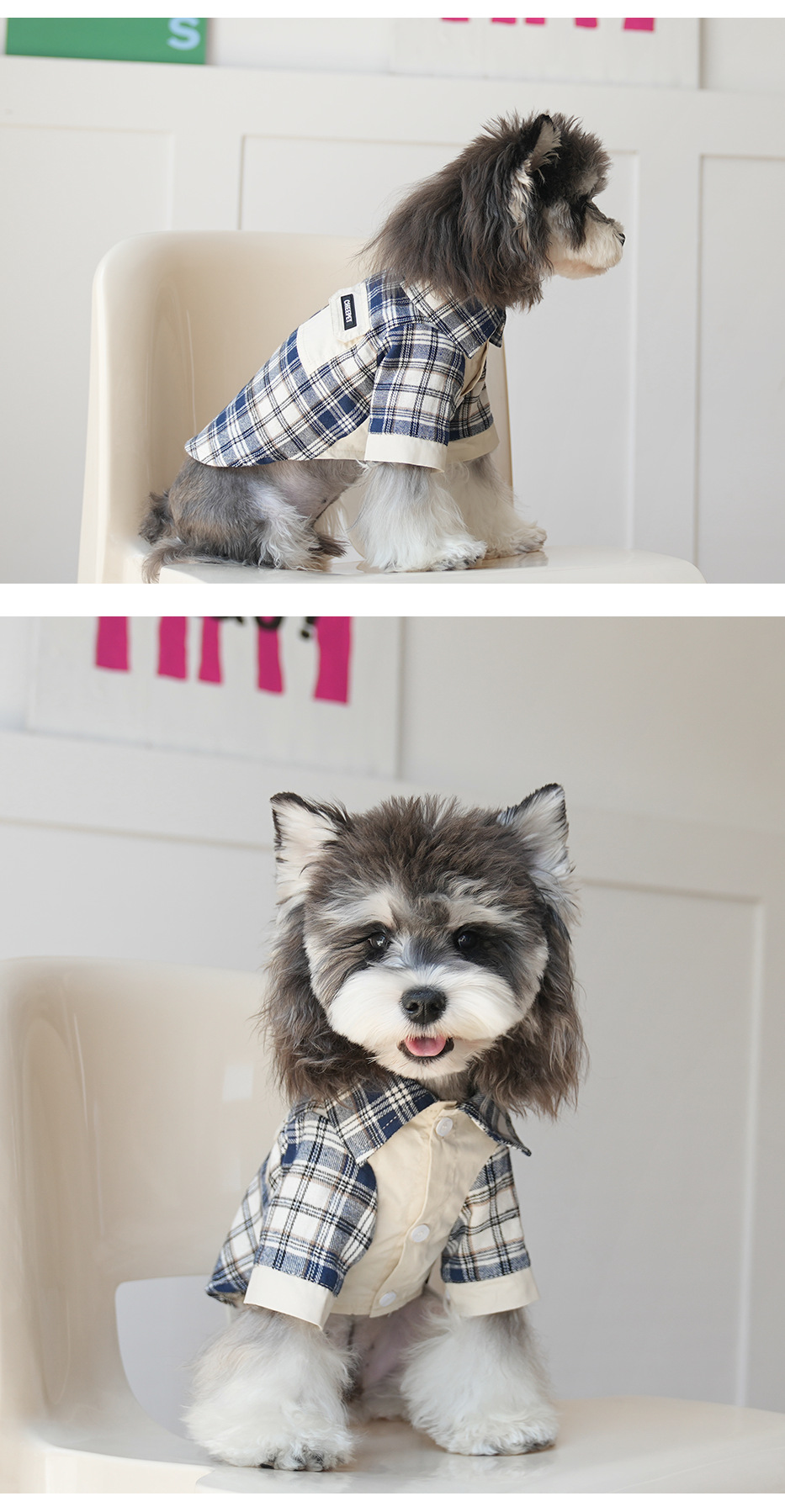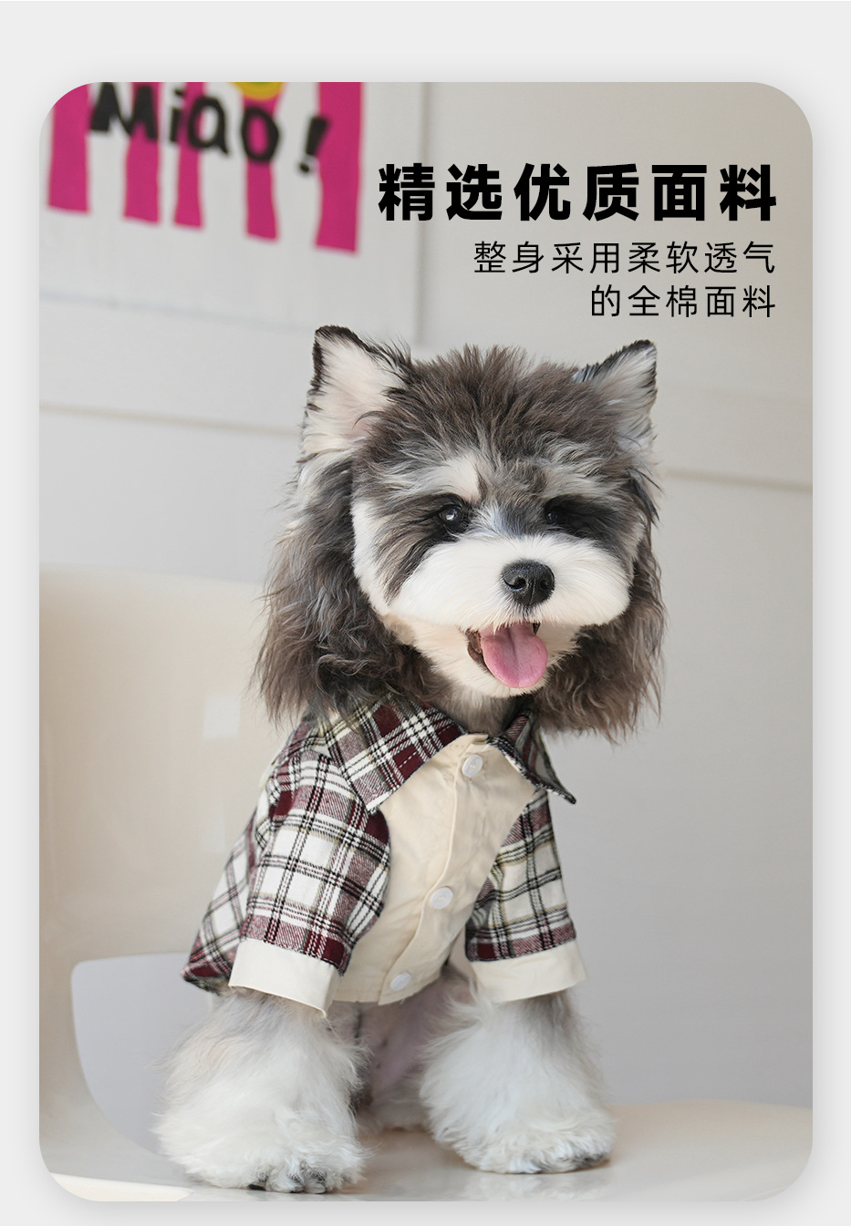 애완 동물 가을과 겨울 두 다리 격자 무늬 셔츠 컬러 블록 옷깃 안티 셰더 코트 Schnery Bixiu 개 걷는 옷스토어 가기