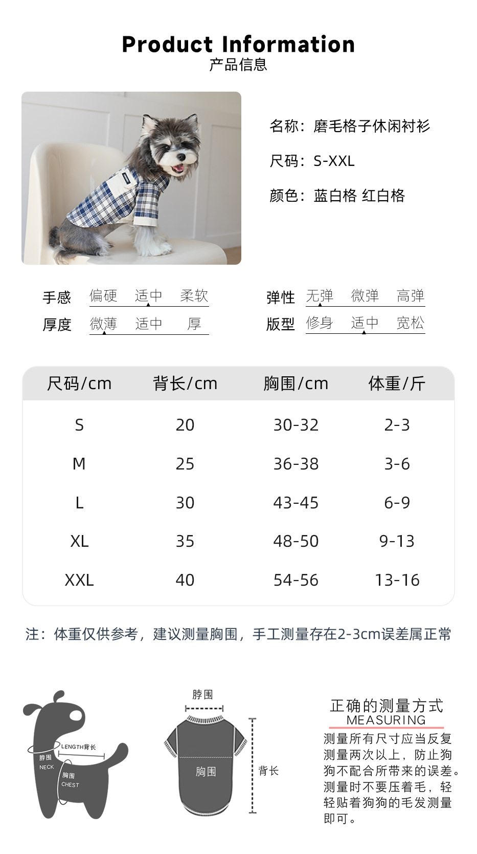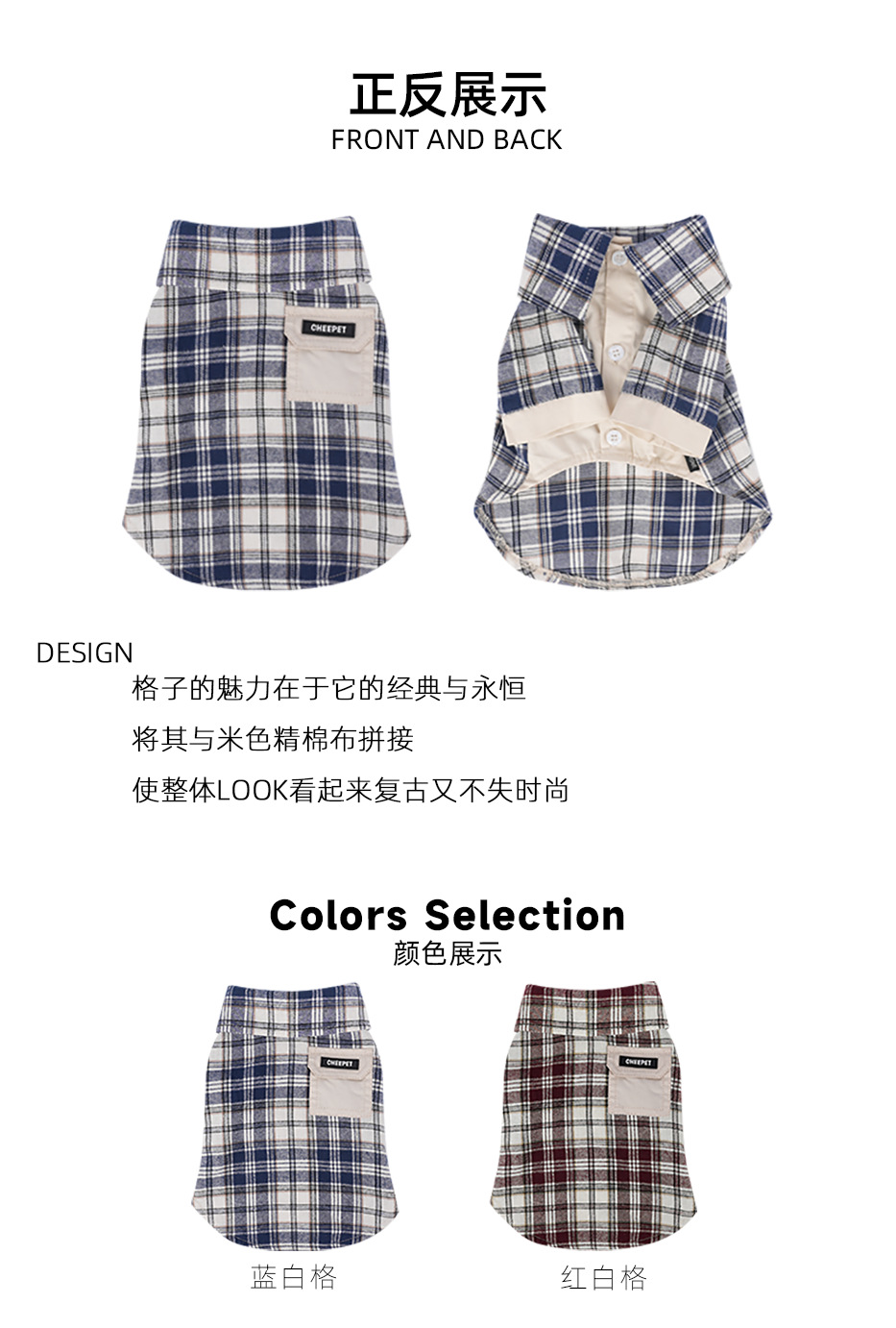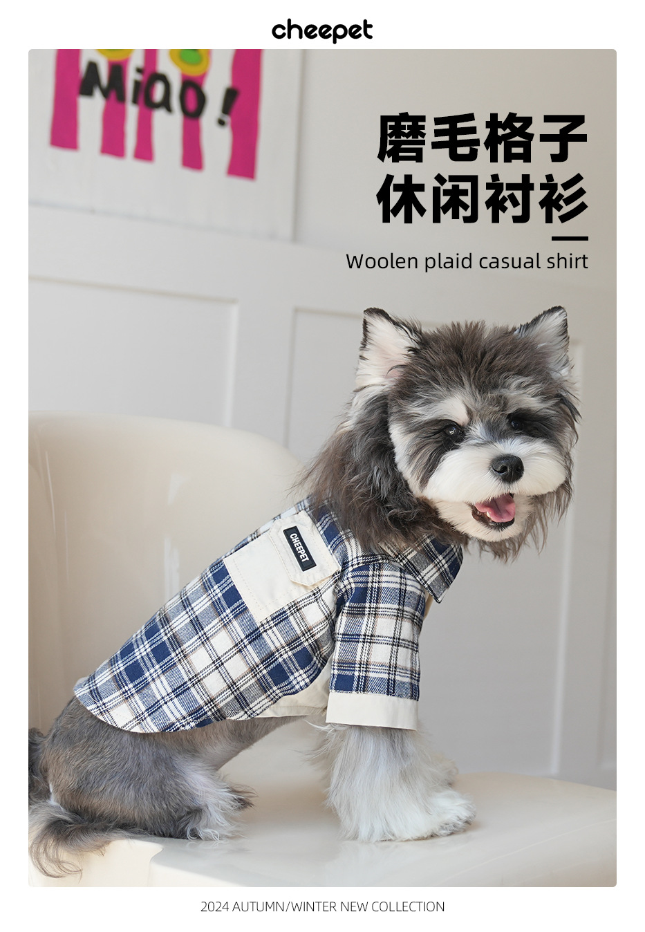 애완 동물 가을과 겨울 두 다리 격자 무늬 셔츠 컬러 블록 옷깃 안티 셰더 코트 Schnery Bixiu 개 걷는 옷스토어 가기