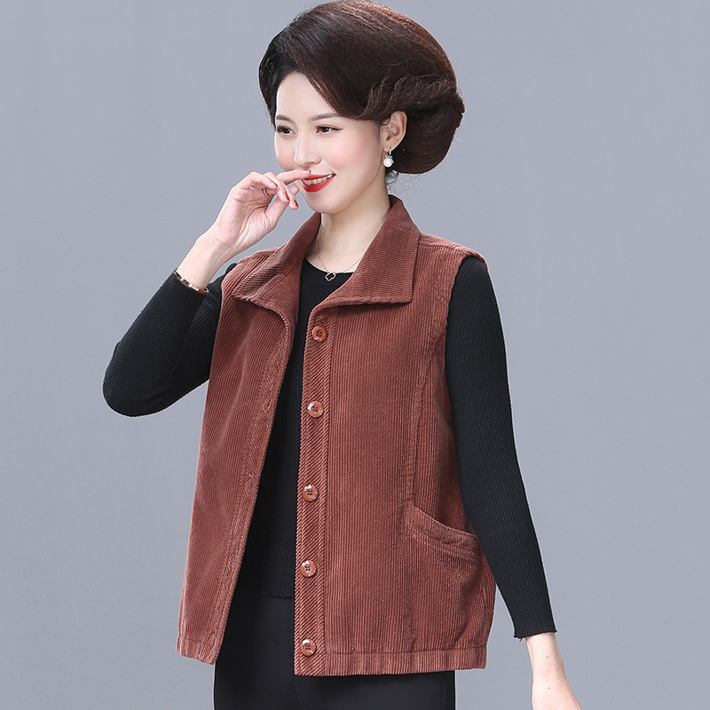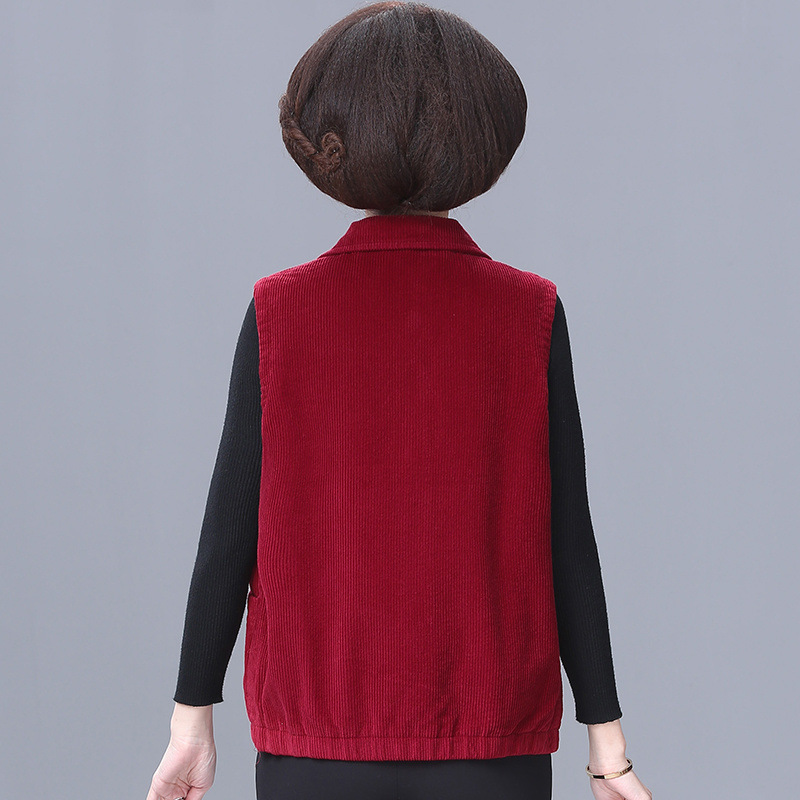 중년 및 노인 여성 조끼 짧은 봄과 가을 최고의 패션 코트 코듀로이 엄마의 외복 조끼