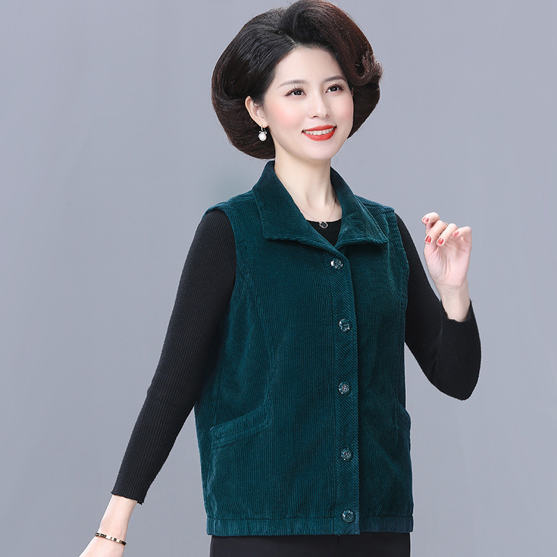 중년 및 노인 여성 조끼 짧은 봄과 가을 최고의 패션 코트 코듀로이 엄마의 외복 조끼스토어 가기