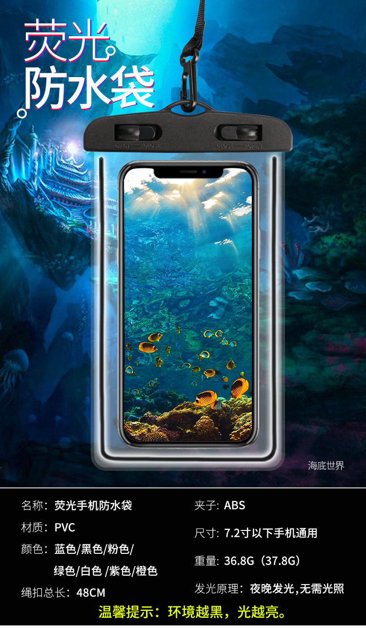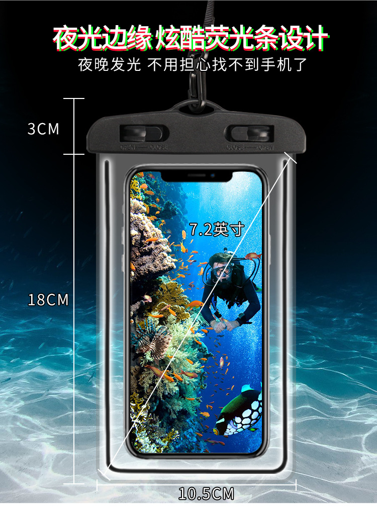 빛나는 휴대 전화 방수 가방 터치 스크린 수영 투명 빛나는 방수 휴대 전화 가방 휴대 전화 방수 케이스스토어 가기
