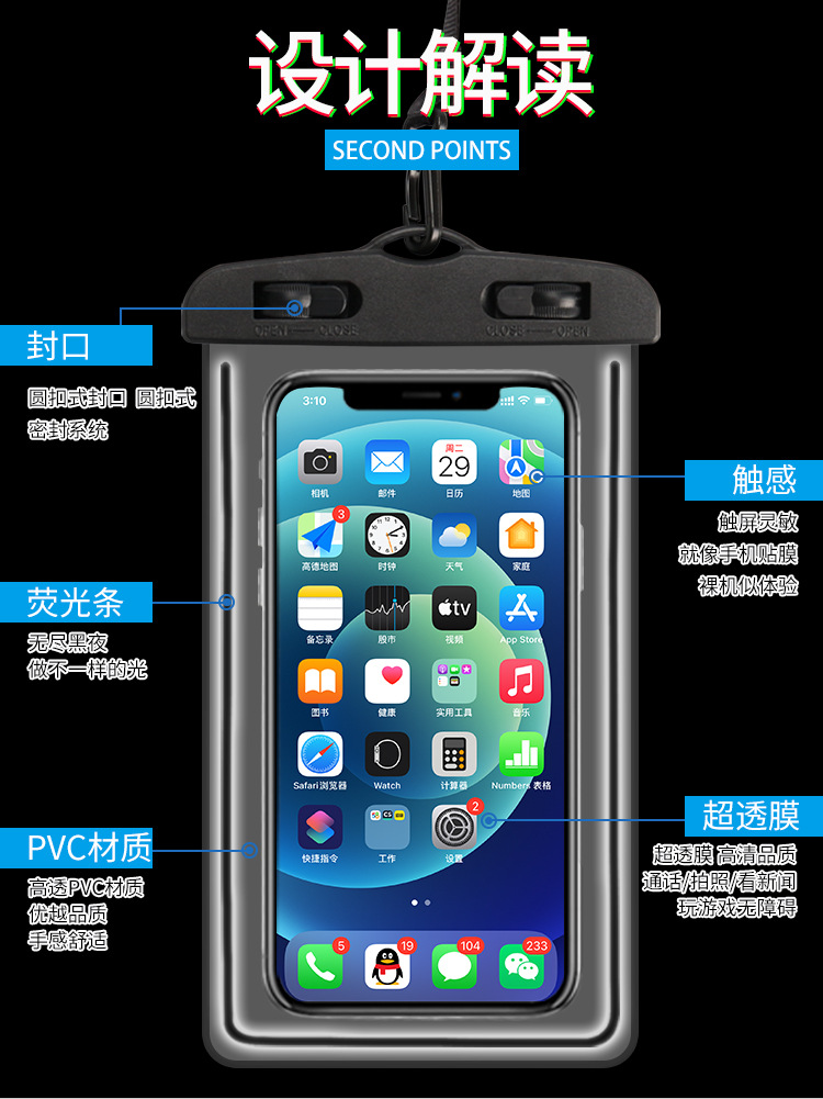 빛나는 휴대 전화 방수 가방 터치 스크린 수영 투명 빛나는 방수 휴대 전화 가방 휴대 전화 방수 케이스
