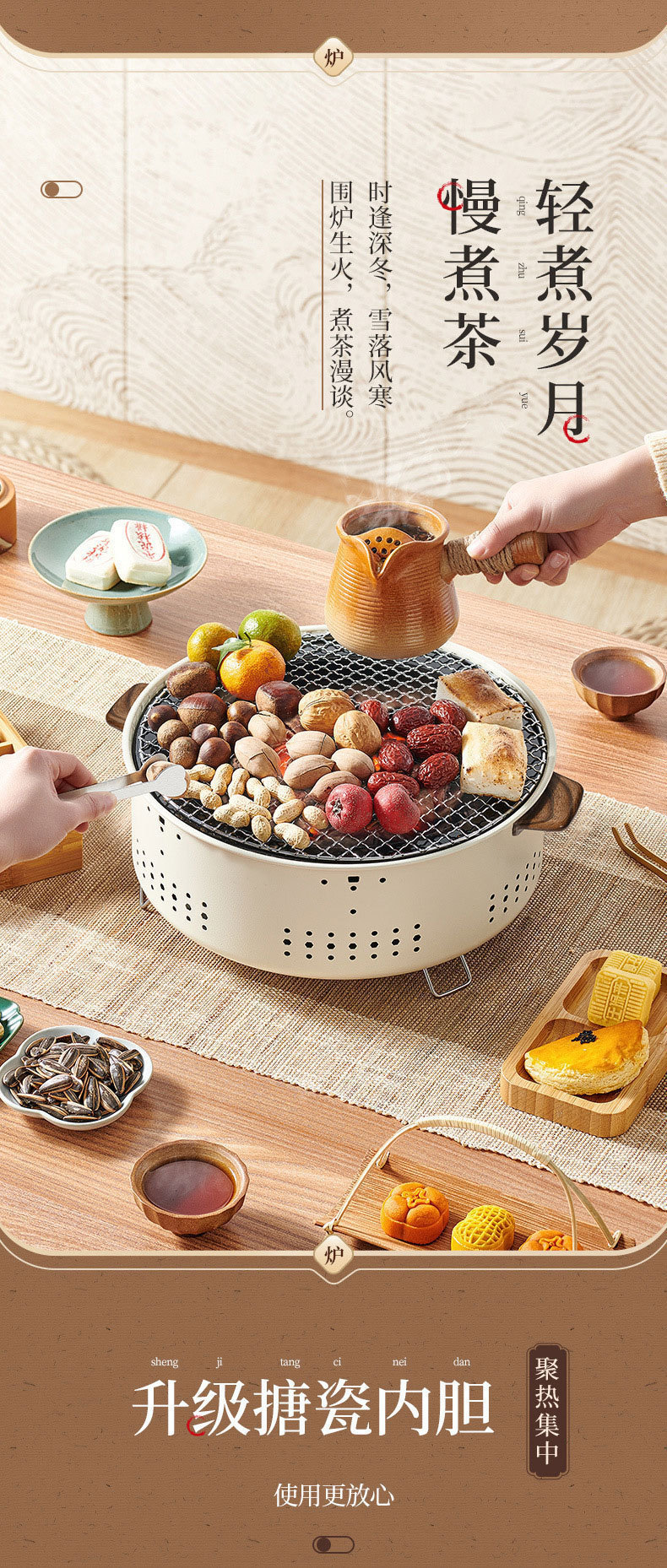 바베큐 스토브 휴대용 라운드 그릴 가정용 무연 과일 숯 오븐 캠핑 스토브
